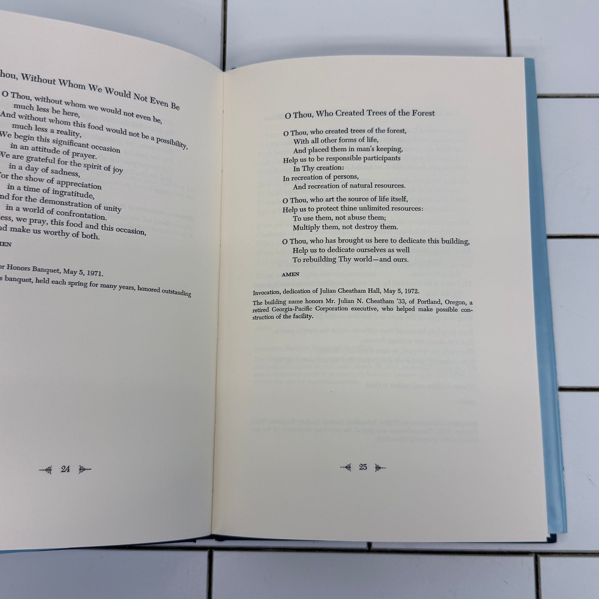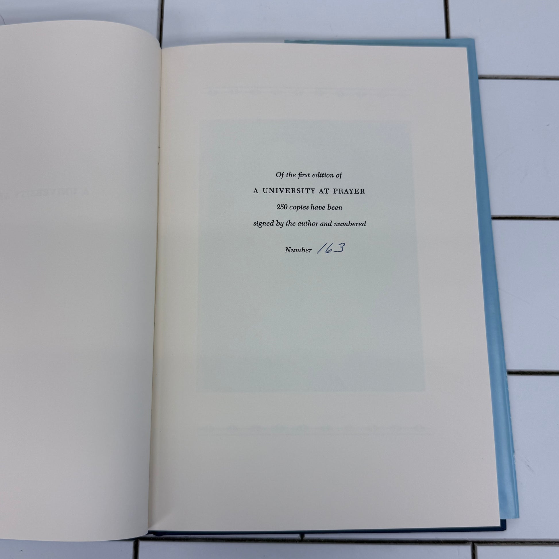 A University at Prayer by Alfred C. Payne, published in 1987, is a scarce signed and numbered first edition, this example being #163 of a limited run of just 250 copies. Featuring a live signature from the author, this collectible volume reflects the tradition of finely produced small-run publications with strong appeal to collectors of signed books, academic history, and religious or institutional works. The book offers both literary and historical interest, with its limited edition status enhancing its rarity and long-term collectibility. Bound in a classic format and well-suited for display or inclusion in a curated library, it remains in good vintage condition with minor wear consistent with age and use.