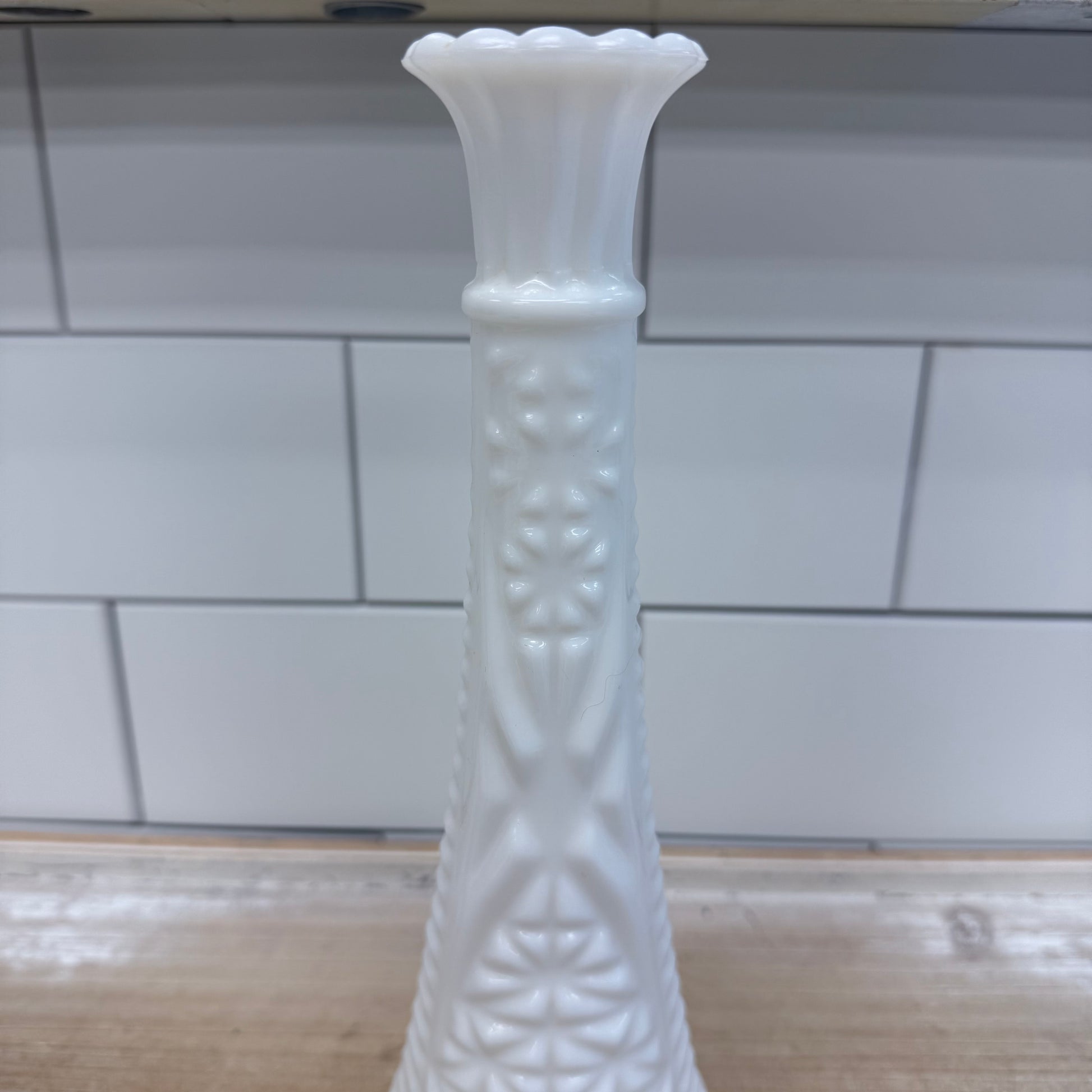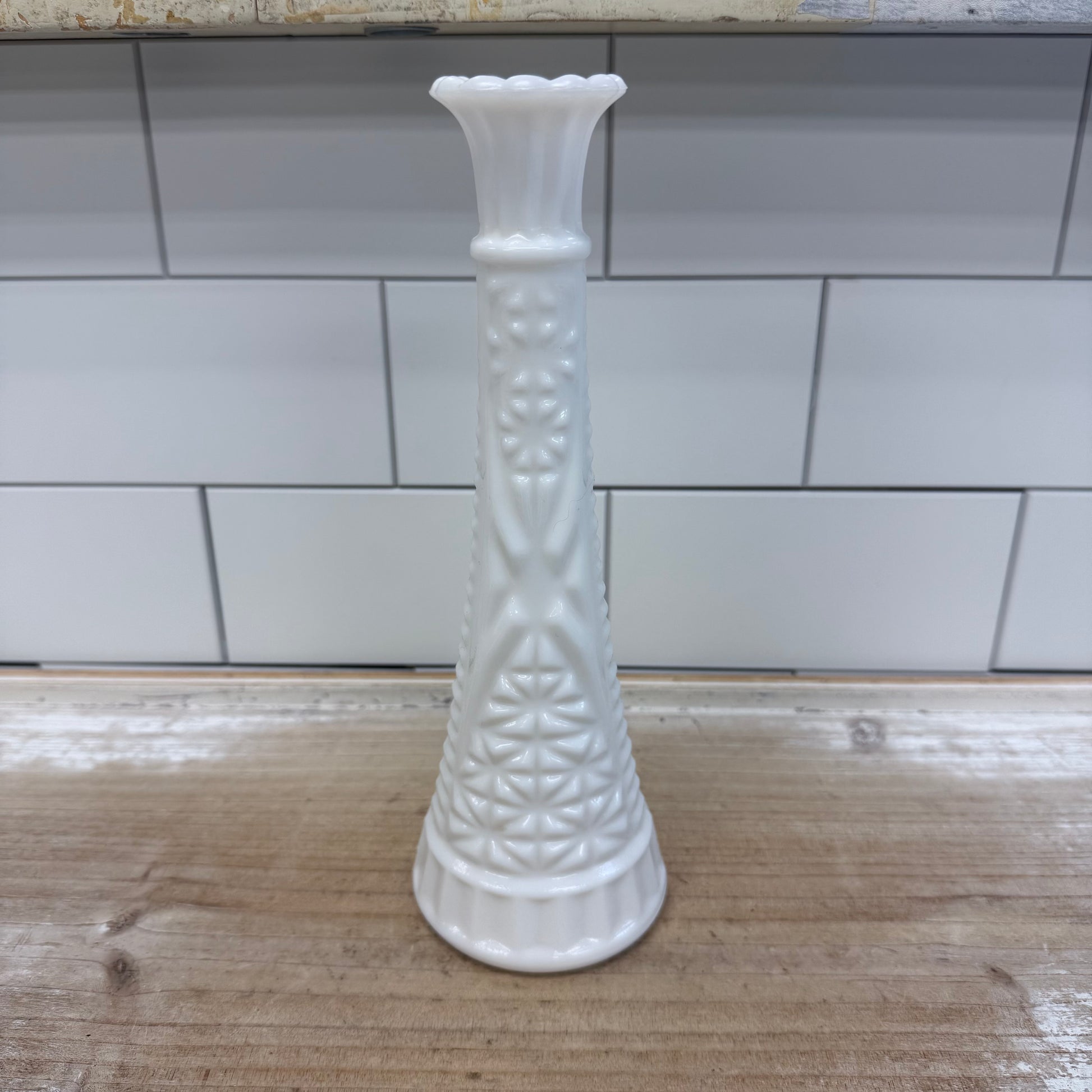 Anchor Hocking Stars and Bars Milk Glass Bud Vase