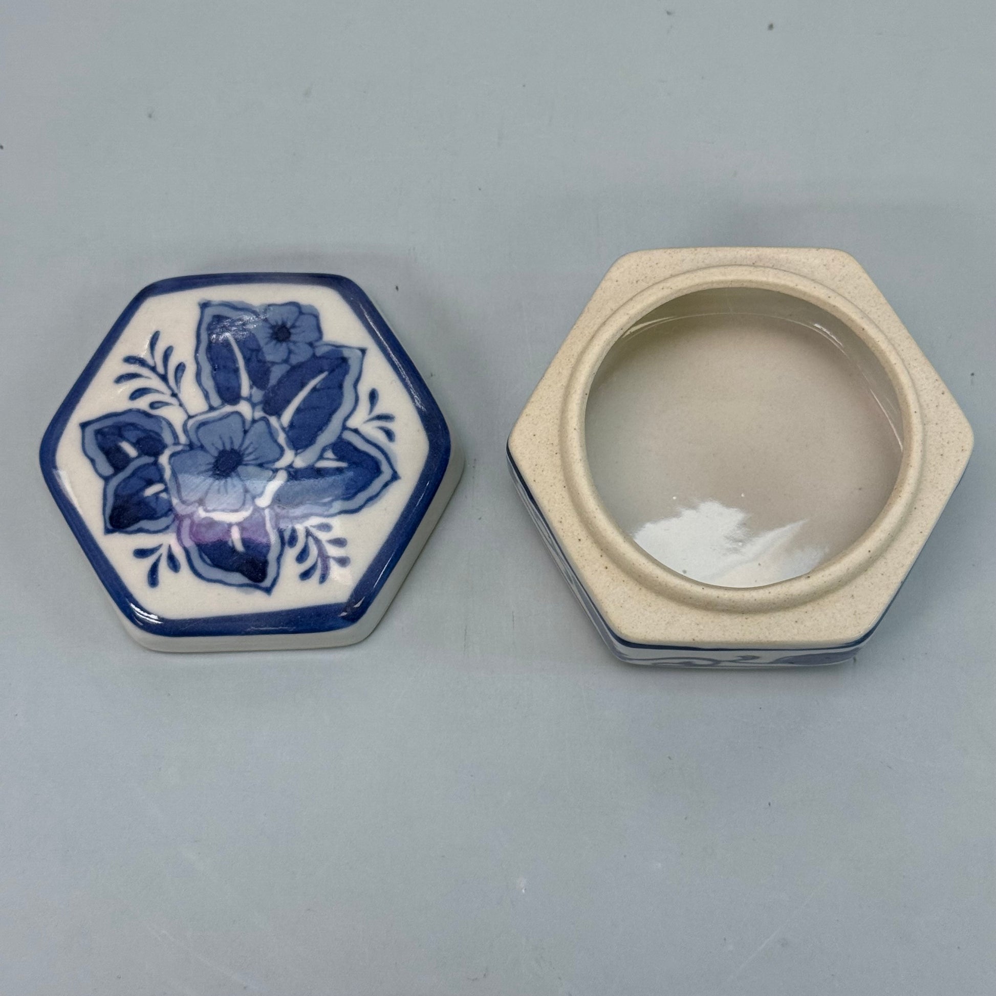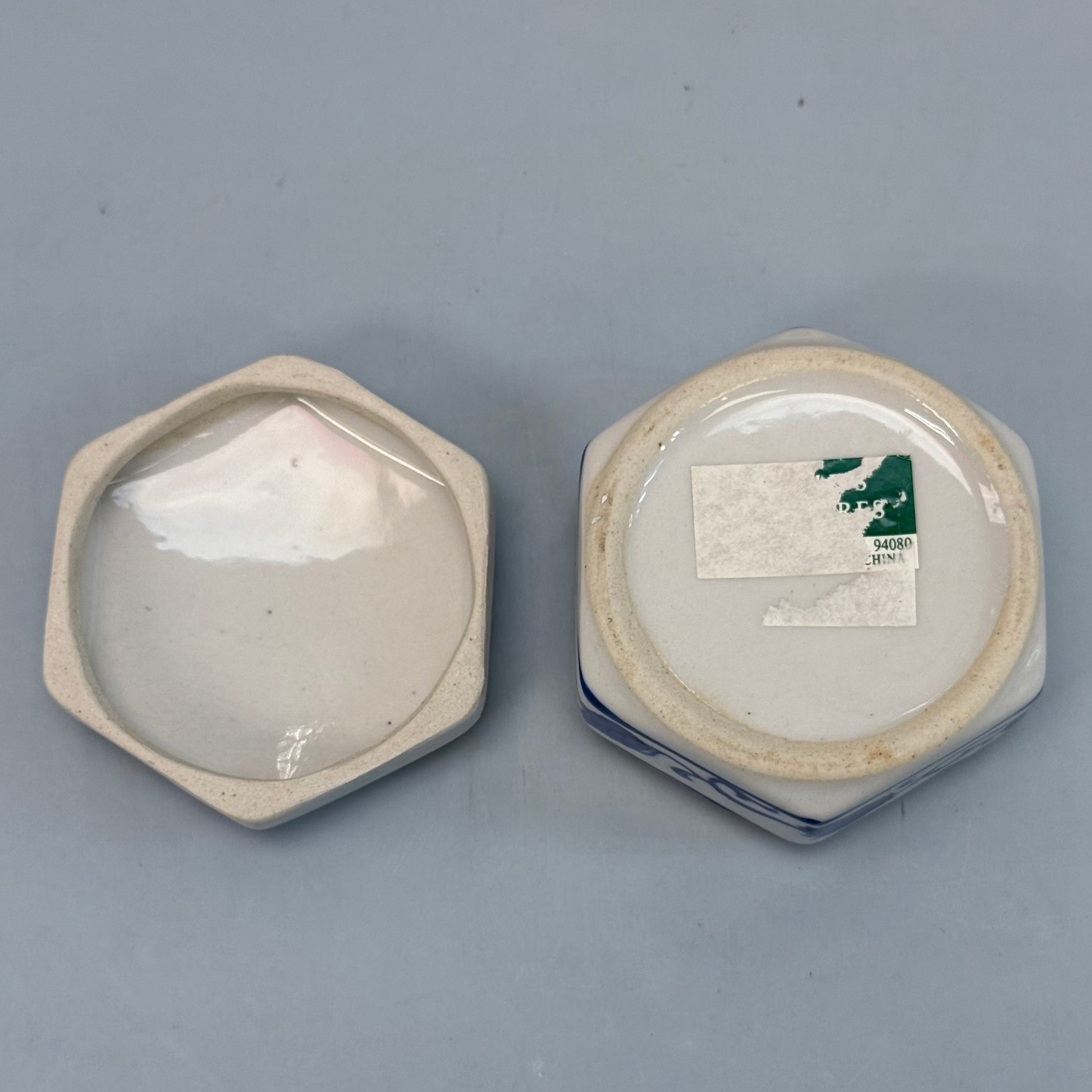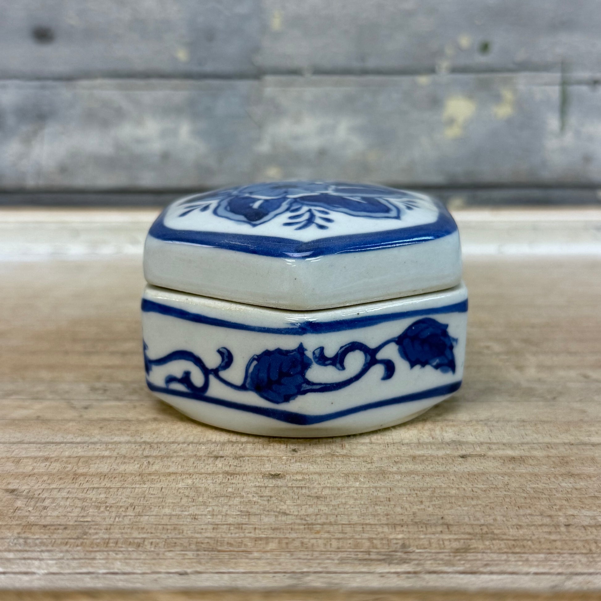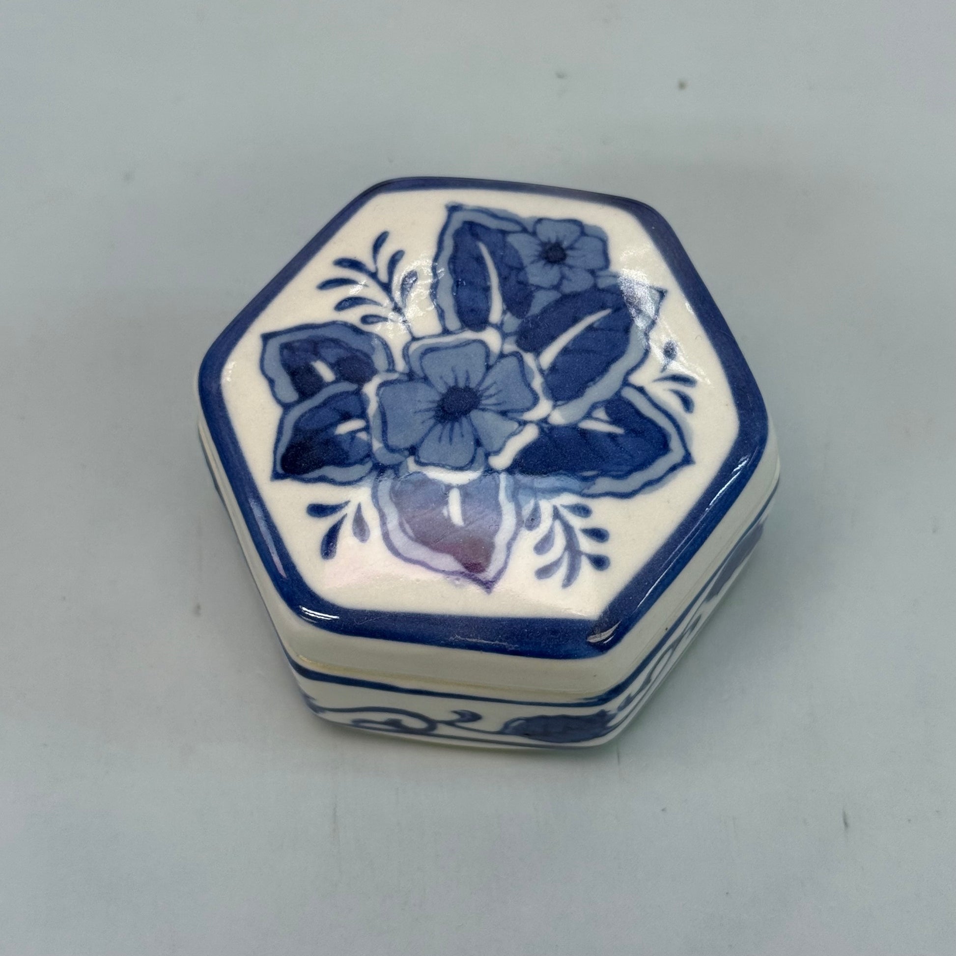 Keywords: chinoiserie, blue and white porcelain, trinket box, Annie’s Treasures, vintage pottery, Asian-inspired decor, collectible box, small keepsake, porcelain decor, marked porcelain