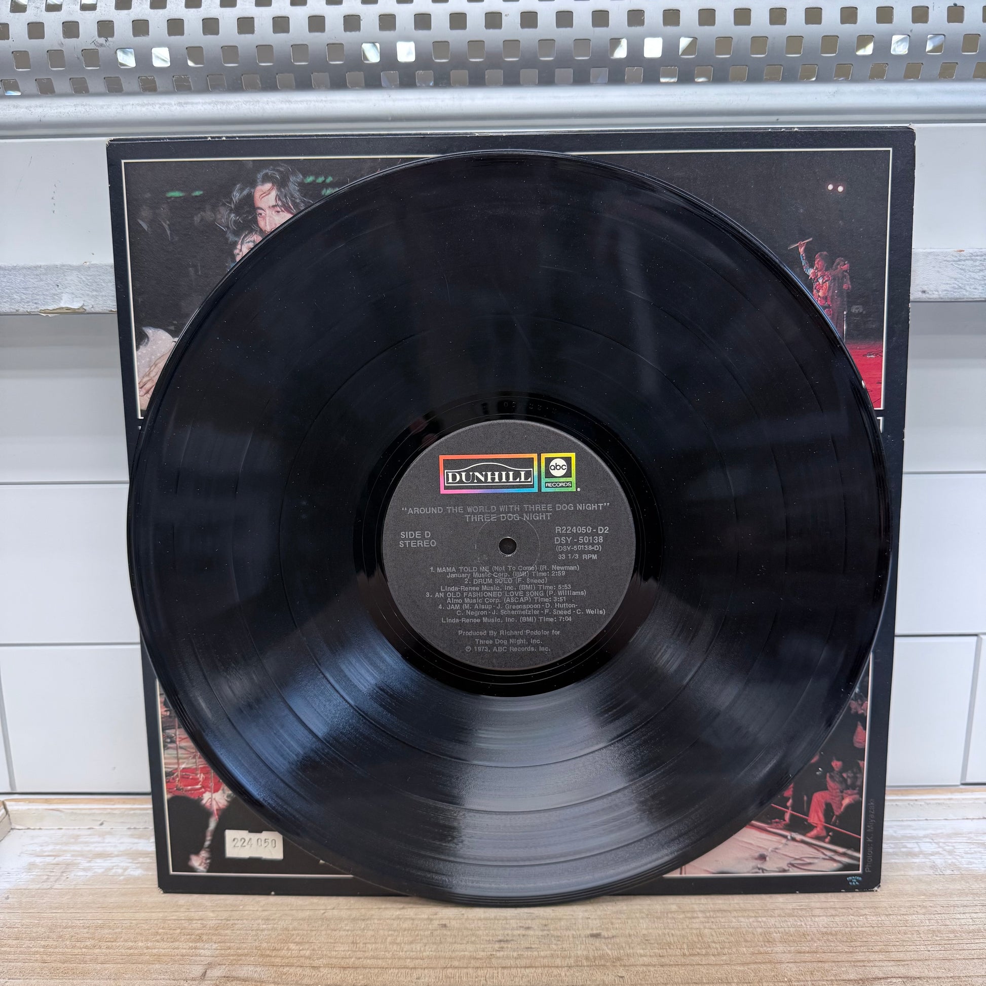 A classic live album from one of the defining rock bands of the early 1970s, Around the World with Three Dog Night is a 1973 double vinyl release on ABC Records (DSY-50138) that captures the group’s dynamic stage presence at the height of their popularity. Featuring powerhouse performances of fan favorites and chart-topping hits, this live LP showcases Three Dog Night’s signature blend of rock, pop, and soul-driven vocals that made them a radio staple of the era. Pressed during the golden age of analog sound, this original double record set offers warm, authentic audio quality prized by collectors and vintage vinyl enthusiasts alike. The cover art reflects classic early-70s concert album design, making it an appealing addition to any retro music collection, classic rock display, or serious record archive. Offered in great vintage condition, with minor wear consistent with age and use, this 1973 ABC Records pressing is an excellent find for fans of classic rock vinyl and 1970s live recordings.