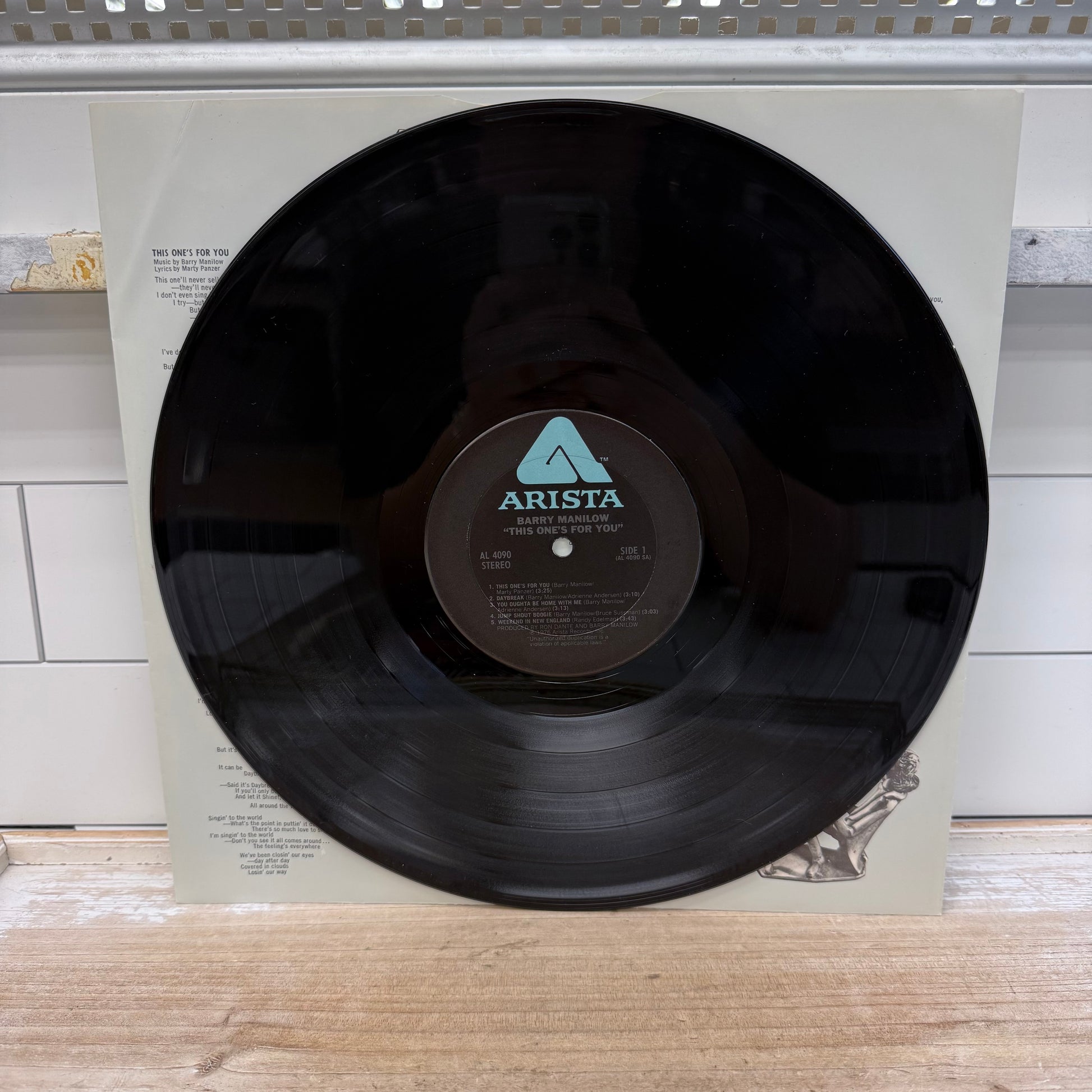 Keywords: Barry Manilow, This One’s For You, vinyl record, 1976, Arista Records, classic pop, vintage LP, collectible vinyl, 1970s music, retro album collection