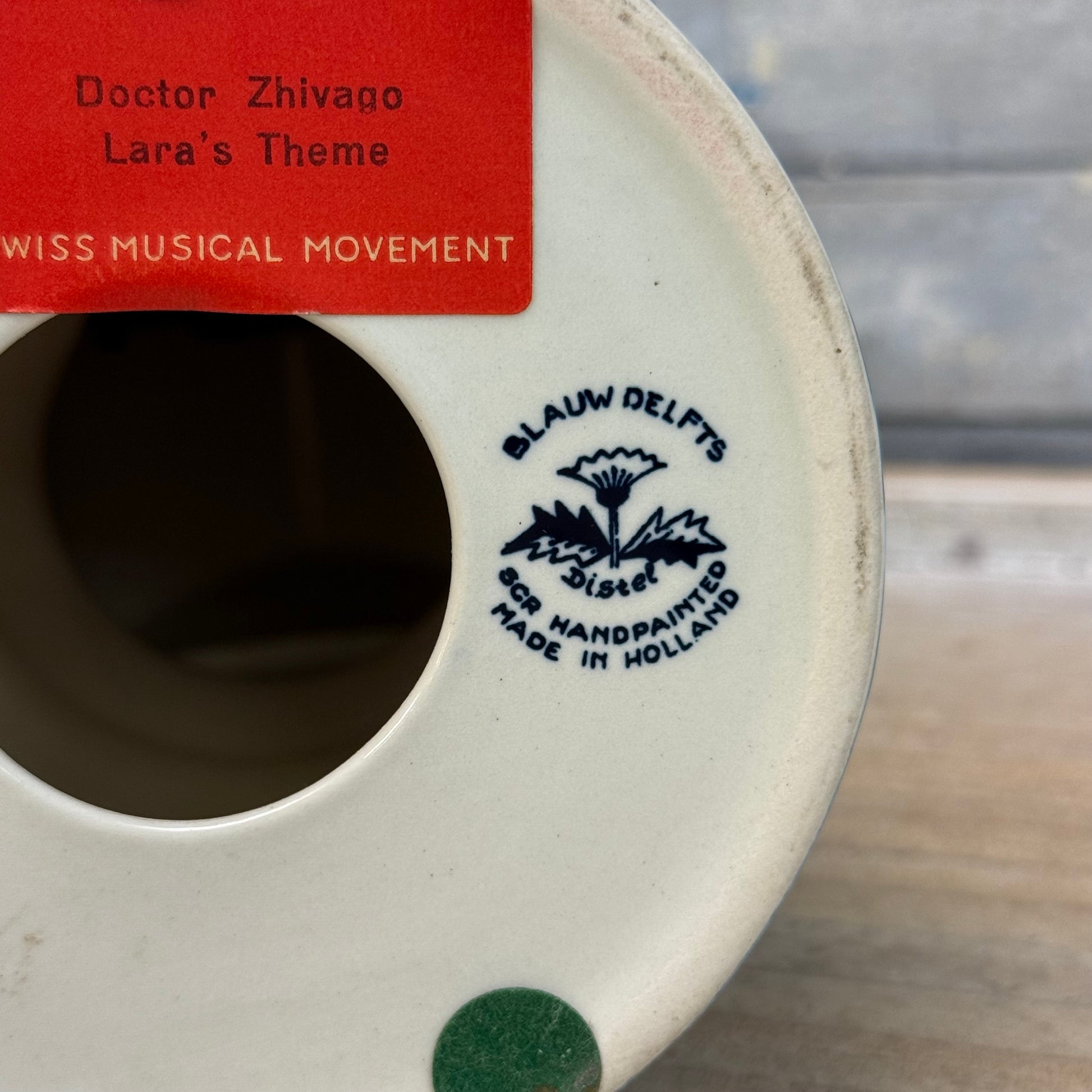 Blauw Delfts Holland, hand painted ceramic, Delft windmill, vintage music box, Lara’s Theme Doctor Zhivago, Dutch collectible, blue and white pottery, Holland souvenir, Delftware decor, functional vintage music box