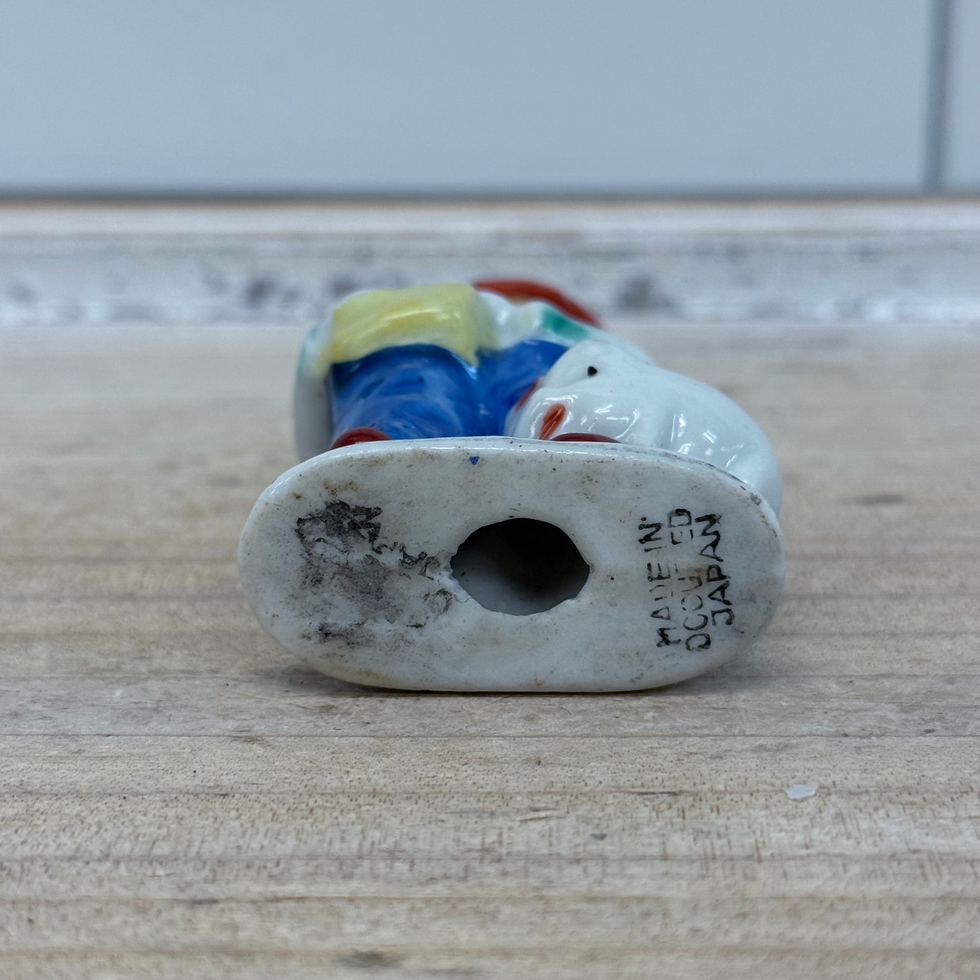 Celebrate a charming slice of postwar craftsmanship with this delightful porcelain Boy with Pig figurine, made in Occupied Japan and carrying all the warmth and whimsy of mid-century decorative art. Standing 3 inches tall with finely painted details and gentle colors, this petite piece (2” x 1” x 3”) brings personality to any shelf or curio cabinet. In good vintage condition with minor wear consistent with age, it’s a wonderful example of collectible Occupied Japan porcelain—both a sweet figurine and a small but meaningful piece of history.