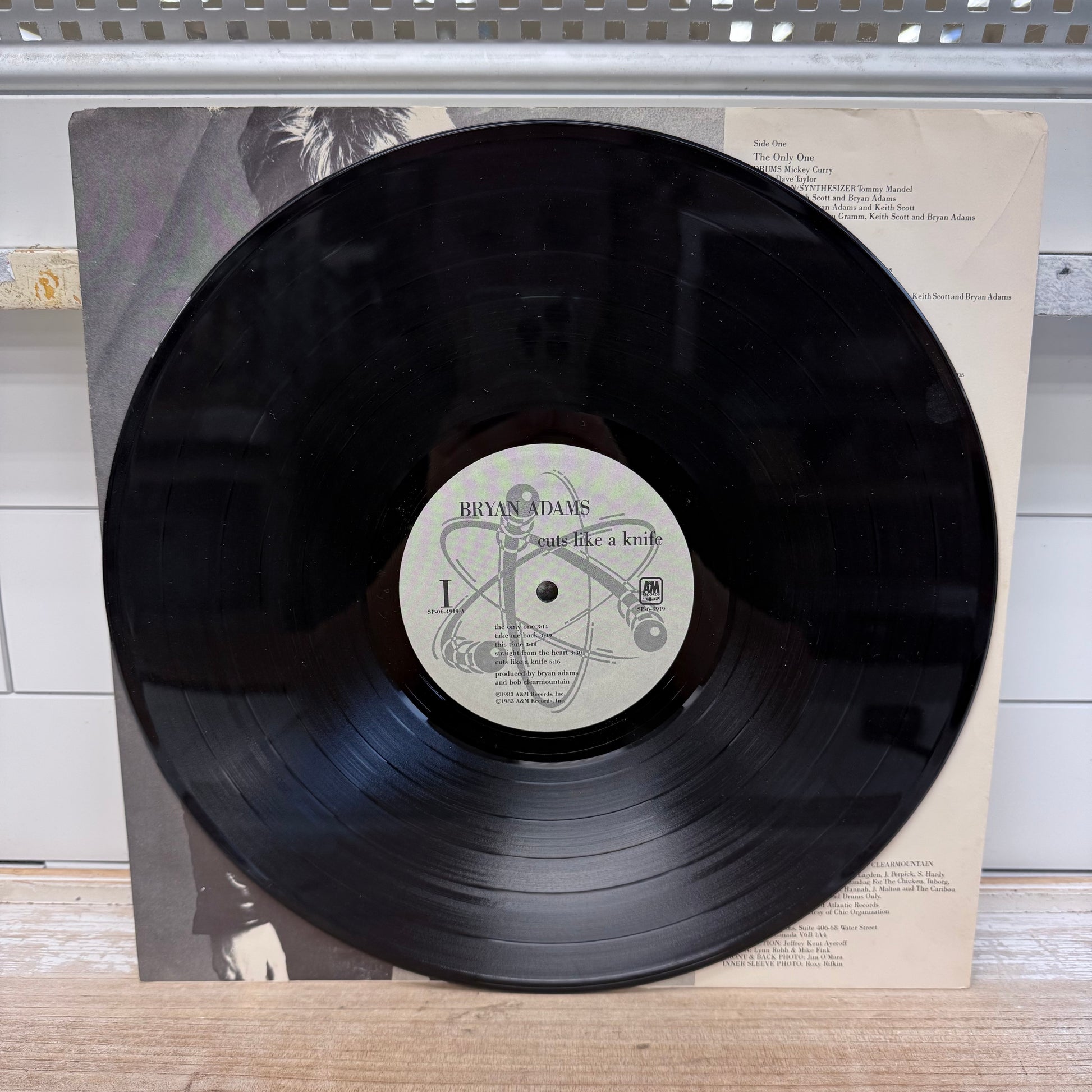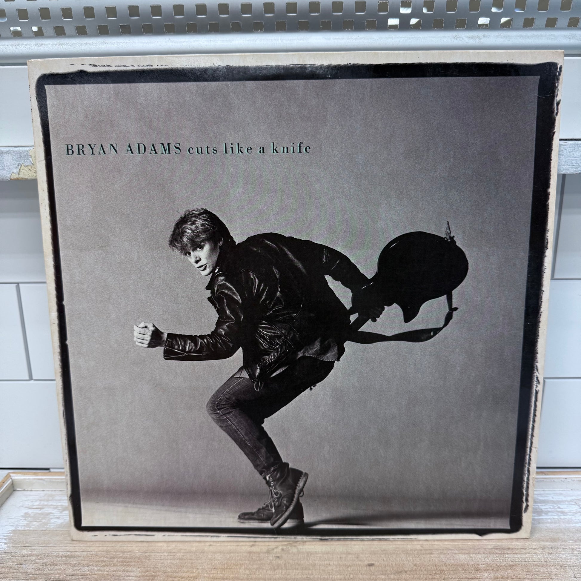 Keywords: Bryan Adams, Cuts Like a Knife, vinyl record, 1983, A&M Records, classic rock album, vintage LP, collectible vinyl, 1980s rock, iconic rock music