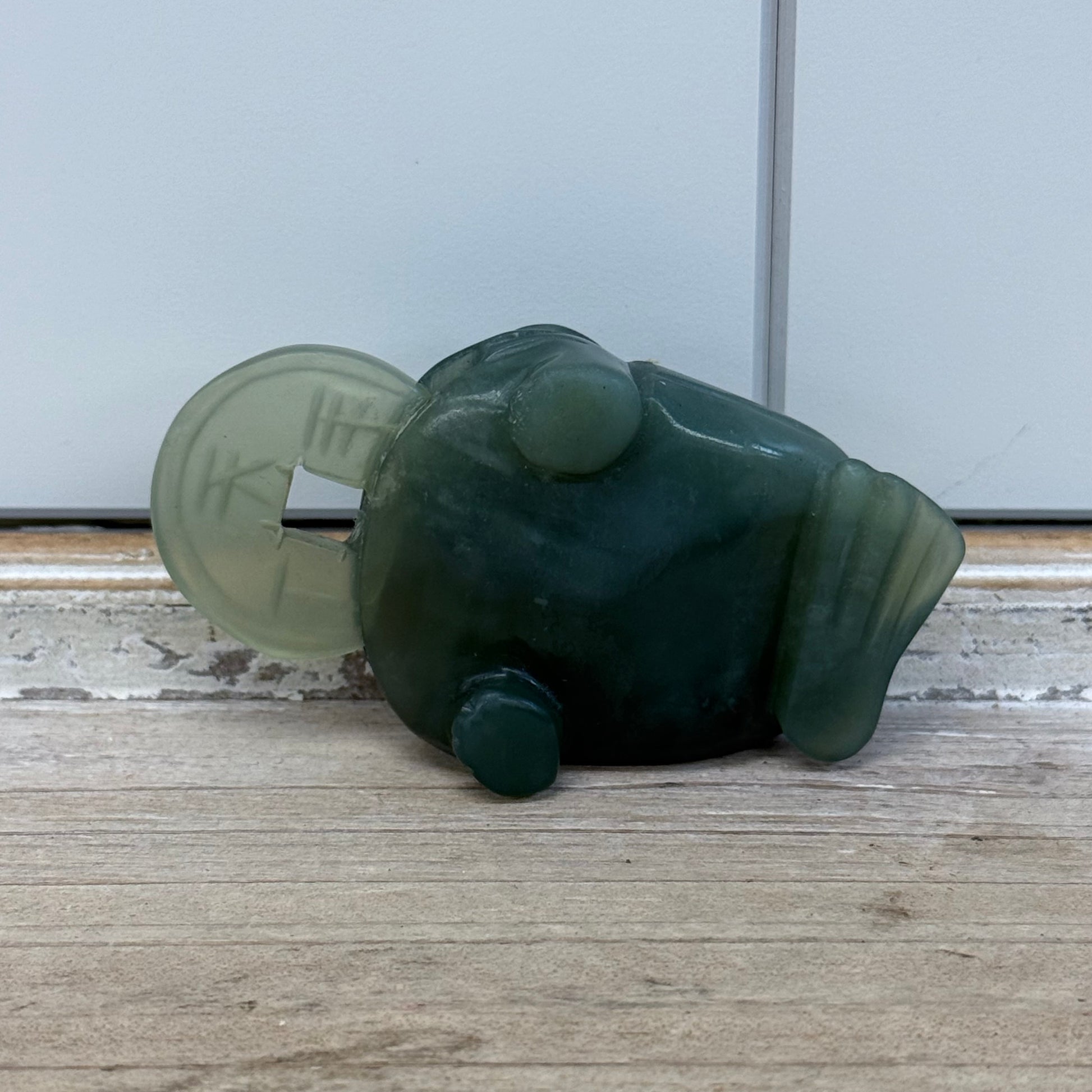 Keywords: Jade Jin Chan, money frog, Feng Shui charm, carved jade, vintage figurine, prosperity symbol, wealth charm, good fortune, 3x2x1 inches, collectible decor