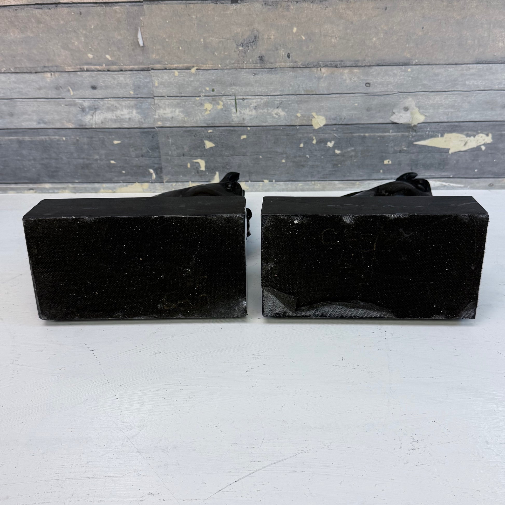 Add bold vintage style to your shelf with this Set of 2 Carved Marble and Brass Horse Head Bookends, featuring a striking combination of natural stone and gleaming brass. Each bookend stands approximately 8” x 4” x 9”, with a majestic horse head design meticulously hand-carved from solid marble and accented with brass detailing. Both pieces are in good vintage condition with minor wear and repaired cracks on one ear of each bookend—adding unique character and charm to these substantial, sculptural pieces. Perfect for equestrian enthusiasts, vintage décor lovers, or statement office styling.
