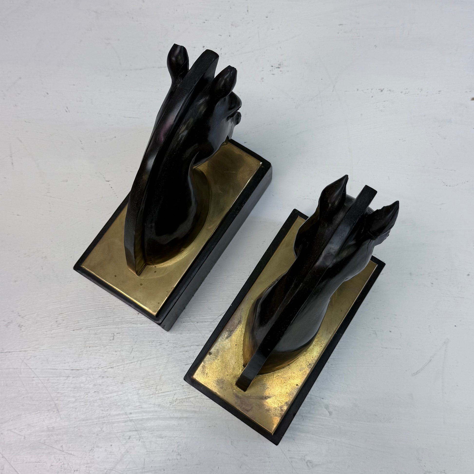 Keywords: horse head bookends, carved marble bookends, brass and marble decor, vintage bookends, equestrian decor, heavy bookends, decorative bookends, mid-century horse decor, unique marble sculpture, vintage shelf accent