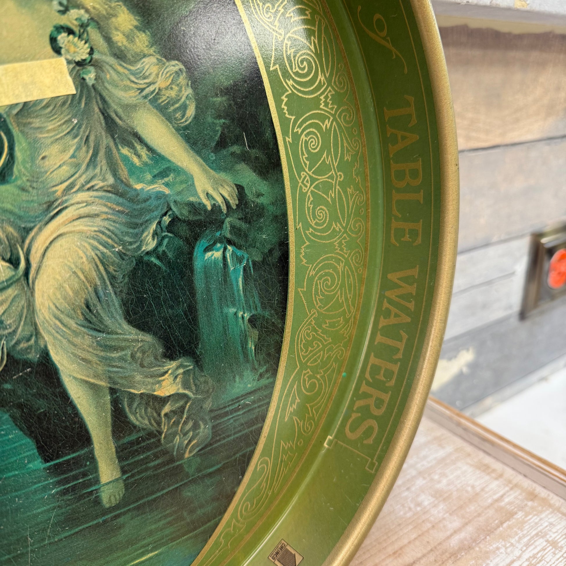 Elevate your vintage décor with this striking Clysmic Table Water Art Deco Style Metal Tray, manufactured by Cheinco Housewares in the USA circa 1930s. Featuring streamlined design characteristic of the Art Deco era, this 14”x2” tray was likely used in soda fountains or cafes to serve Clysmic mineral water—a popular brand of the time. Crafted from durable metal with lithographed graphics, it bears the original maker’s mark on the inner rim. Weighing 2 lbs and in good vintage condition with minor wear consistent with age and use, this tray is both a collectible display piece and a conversation starter.