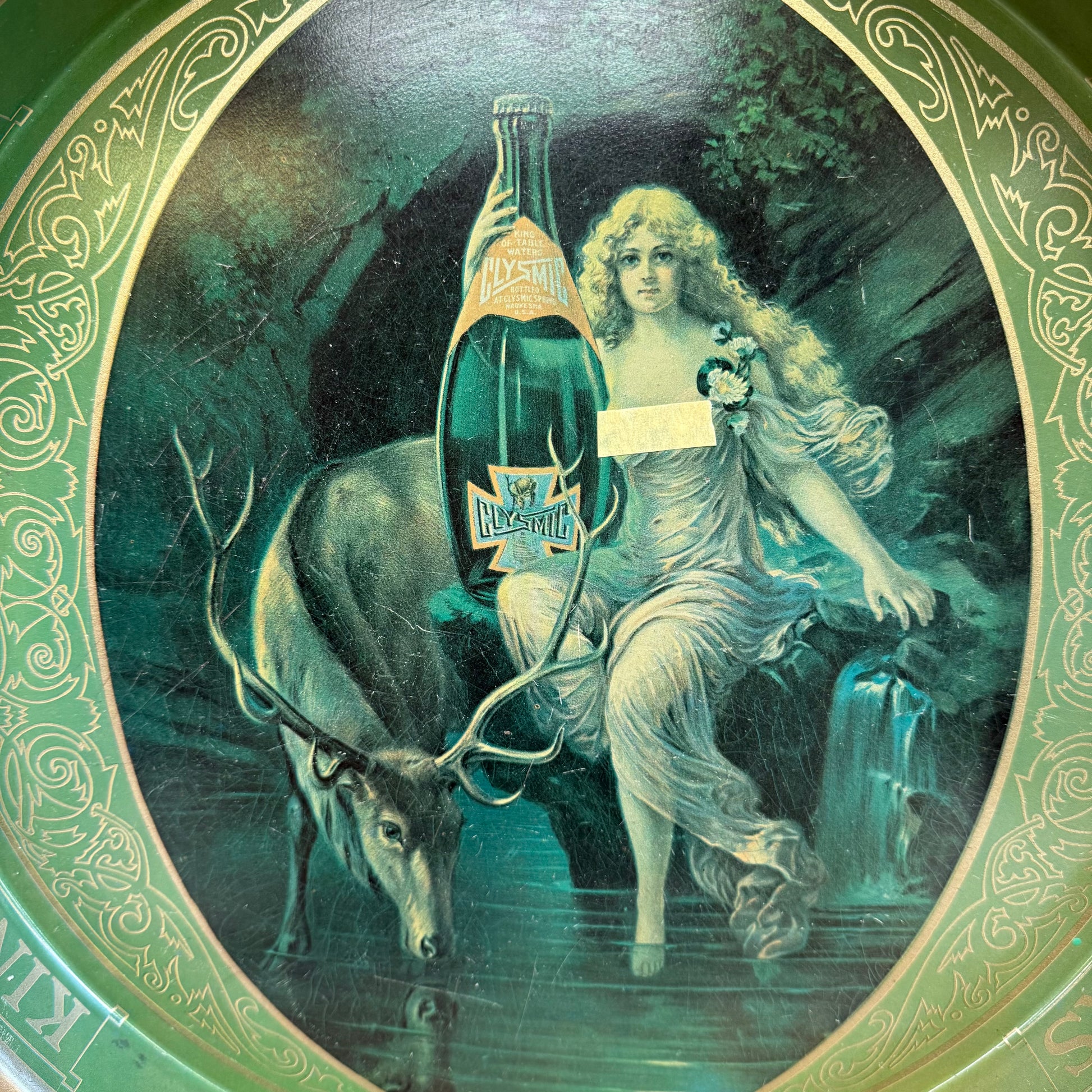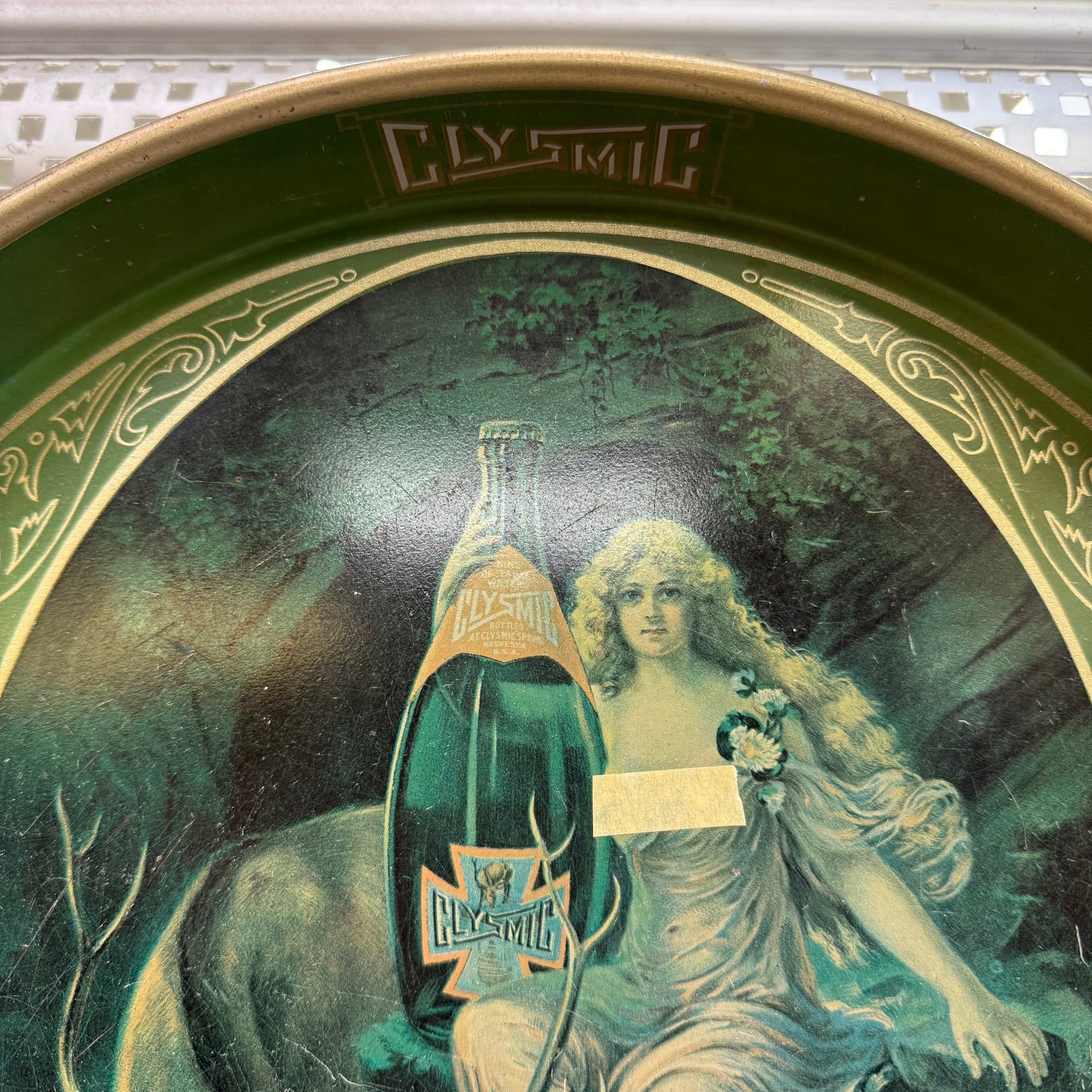 Keywords: Clysmic tray, Art Deco tray, Cheinco Housewares, vintage metal tray, 1930s advertising, soda fountain decor, American vintage, collectible barware, lithographed tray, antique serving tray