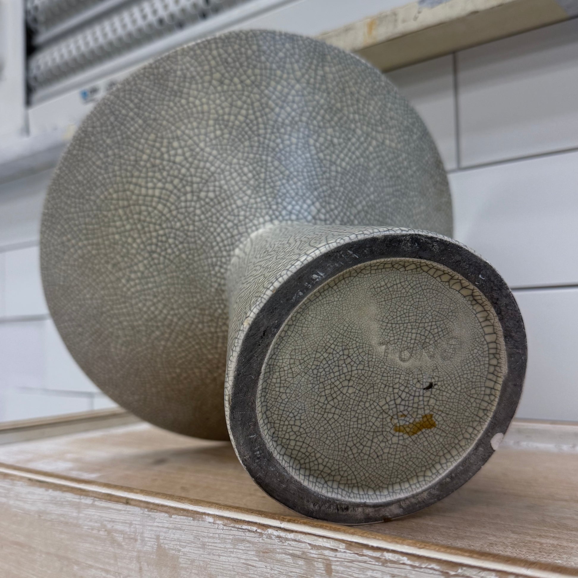 Pedestal Vase, Crackle Ceramic