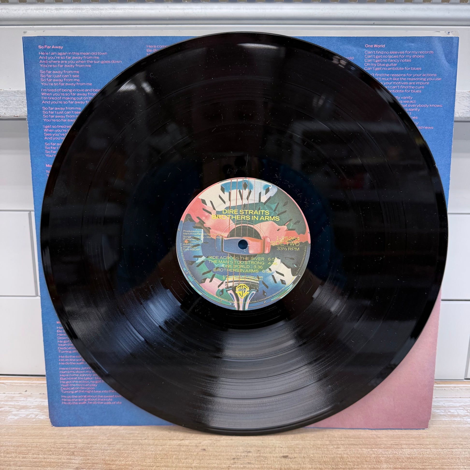 Keywords: Dire Straits vinyl, Brothers in Arms LP, 1985 Warner Bros Records, classic rock vinyl, Mark Knopfler guitar, 1980s rock album, vintage vinyl record, Money for Nothing LP, audiophile rock vinyl, collectible rock record