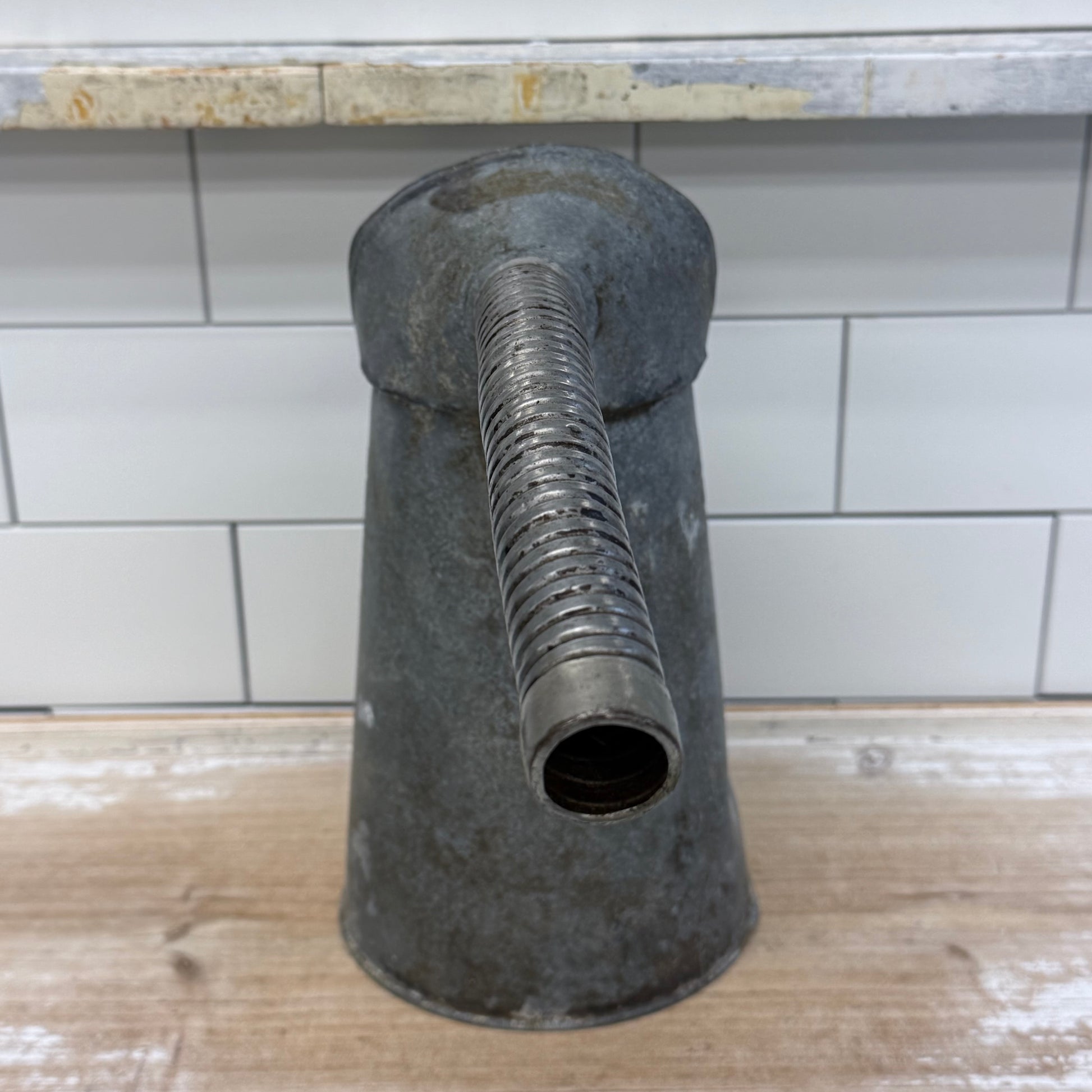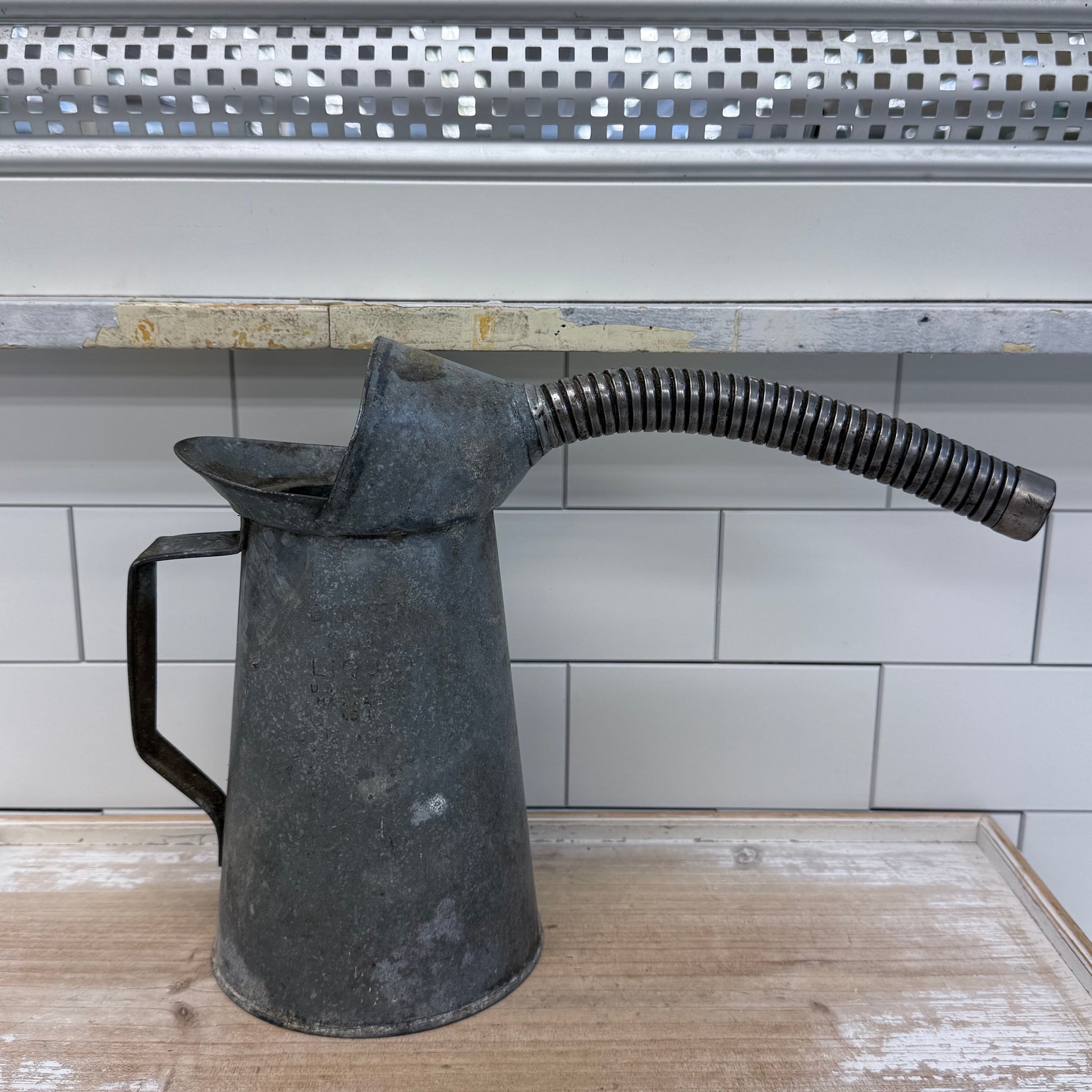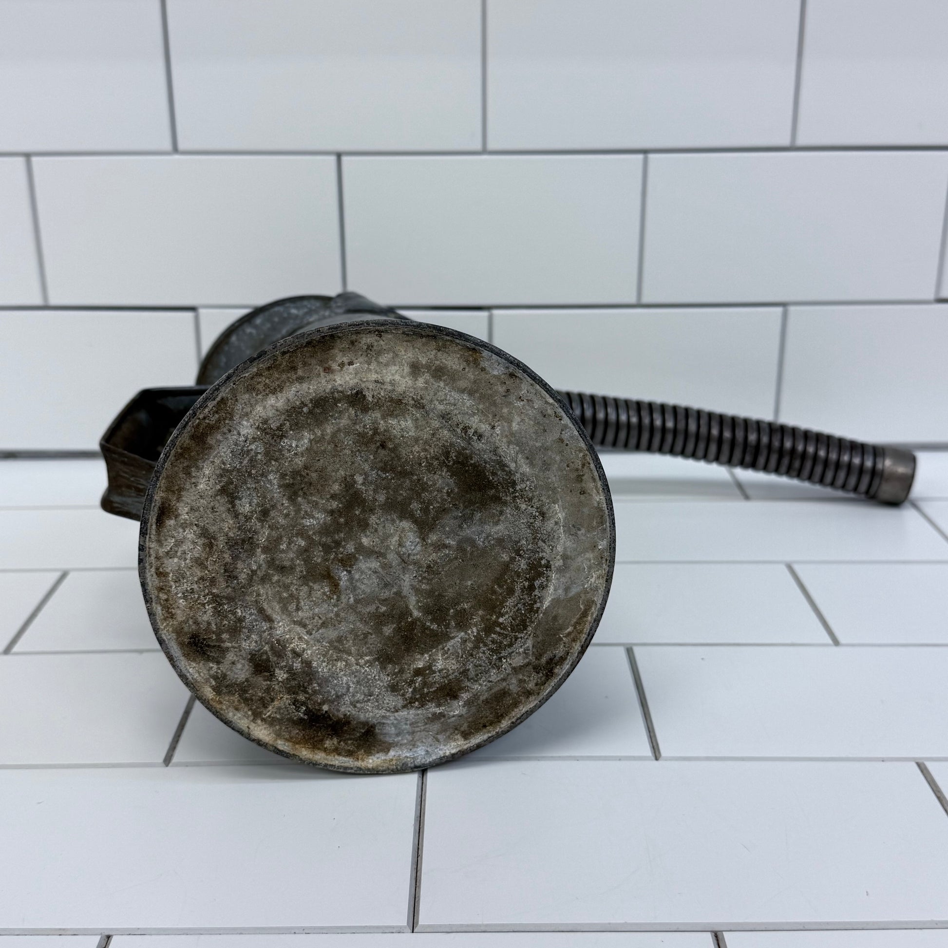 Keywords: Dover oil can, galvanized oil can, flexible spout, vintage tools, 2-quart pitcher, industrial décor, collectible oil can, maker’s mark, farmhouse accessory, retro workshop item