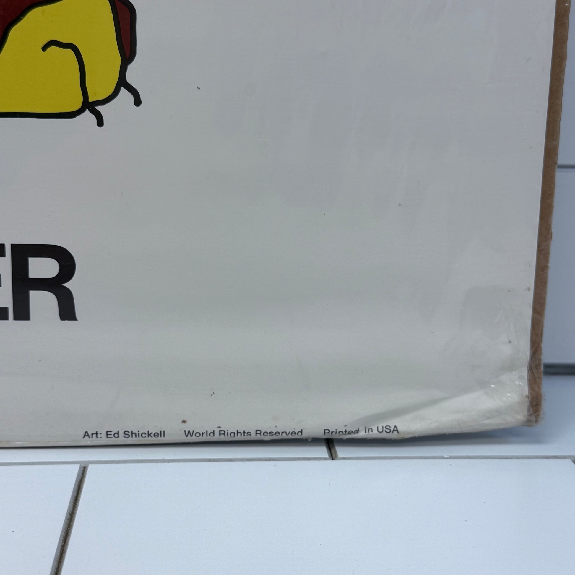 Bold, graphic, and unmistakably 1970s, this original 1972 Ed Shickell “Trespassers Will Be Eaten!” poster was published by Celestial Arts of Millbrae, California, capturing the playful edge of West Coast educational design at its peak. Featuring a brightly stylized saber tooth tiger (Smilodon) rendered in flat yellow and brown stripes beneath a hot pink warning banner, the composition blends classroom learning with tongue-in-cheek humor. Printed in the USA and measuring an impressive 35” x 23”, this oversized vintage poster makes a striking statement in a retro office, kids’ room, studio, or eclectic gallery wall. Offered in good vintage condition with minor wear consistent with age and use, it remains a vibrant example of early 1970s graphic illustration and novelty educational décor.