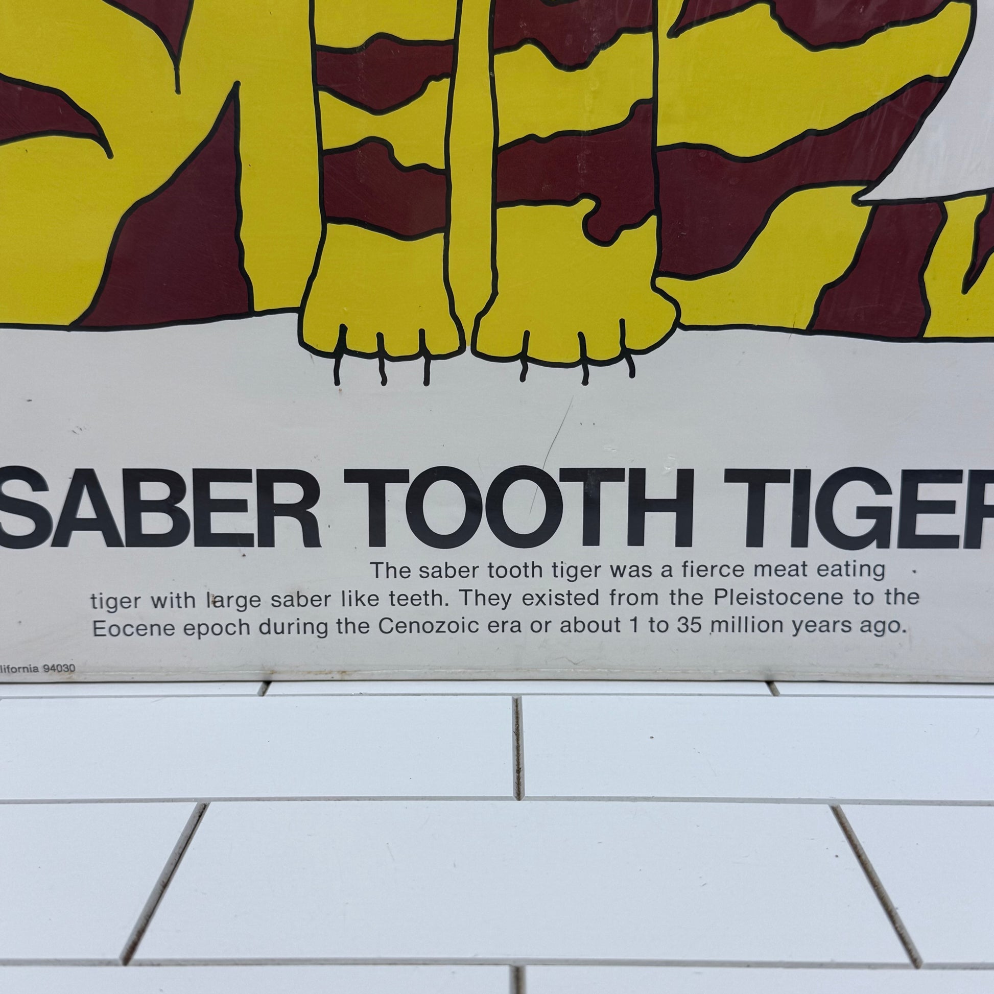 1972 poster, Ed Shickell art, Celestial Arts poster, saber tooth tiger print, vintage classroom decor, retro warning sign, 1970s wall art, Smilodon illustration, pop graphic poster, West Coast design