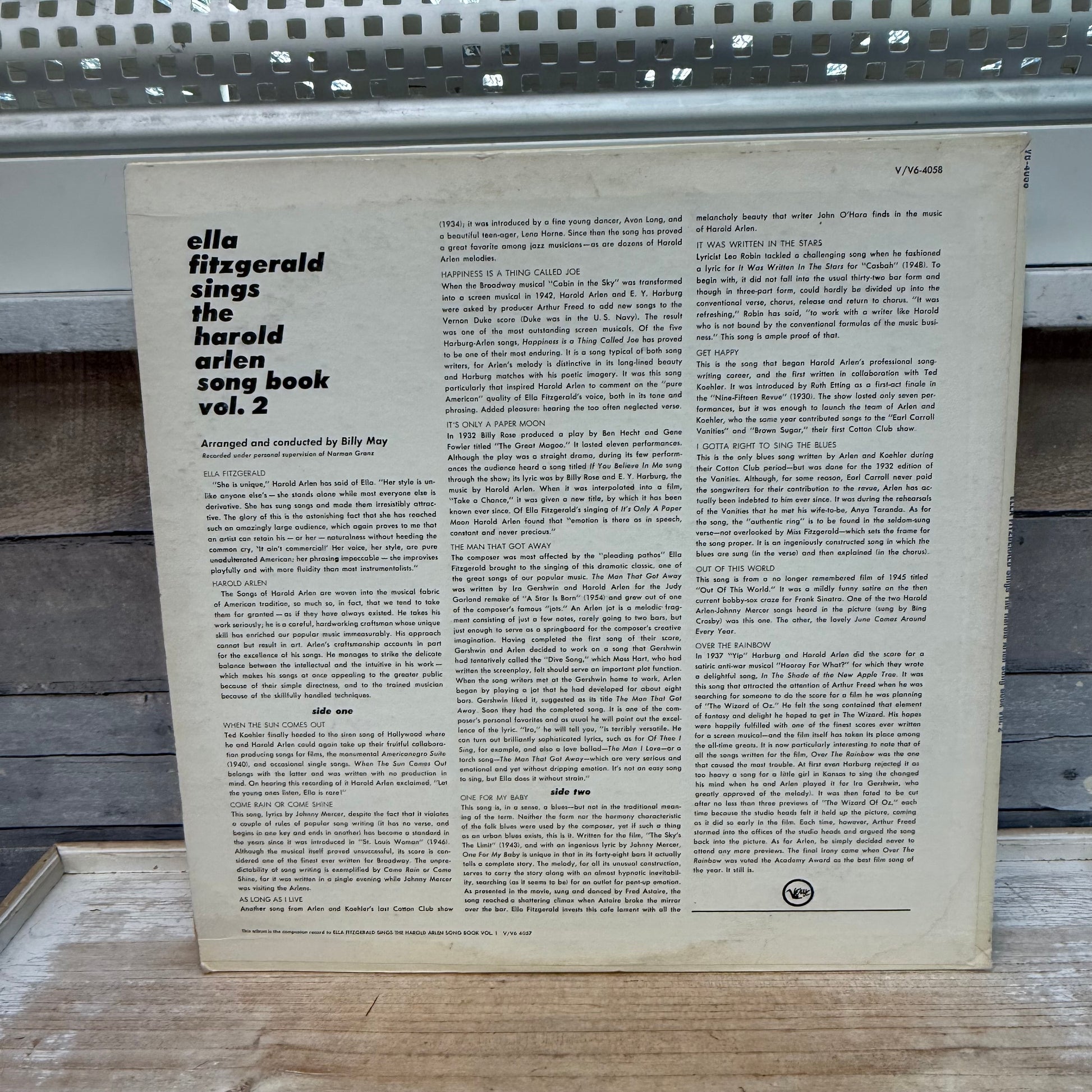 keywords: Ella Fitzgerald, Harold Arlen, Songbook series, Verve Records, V6-4058, 1961 vinyl, jazz vocals, classic jazz, vintage LP, collectible album