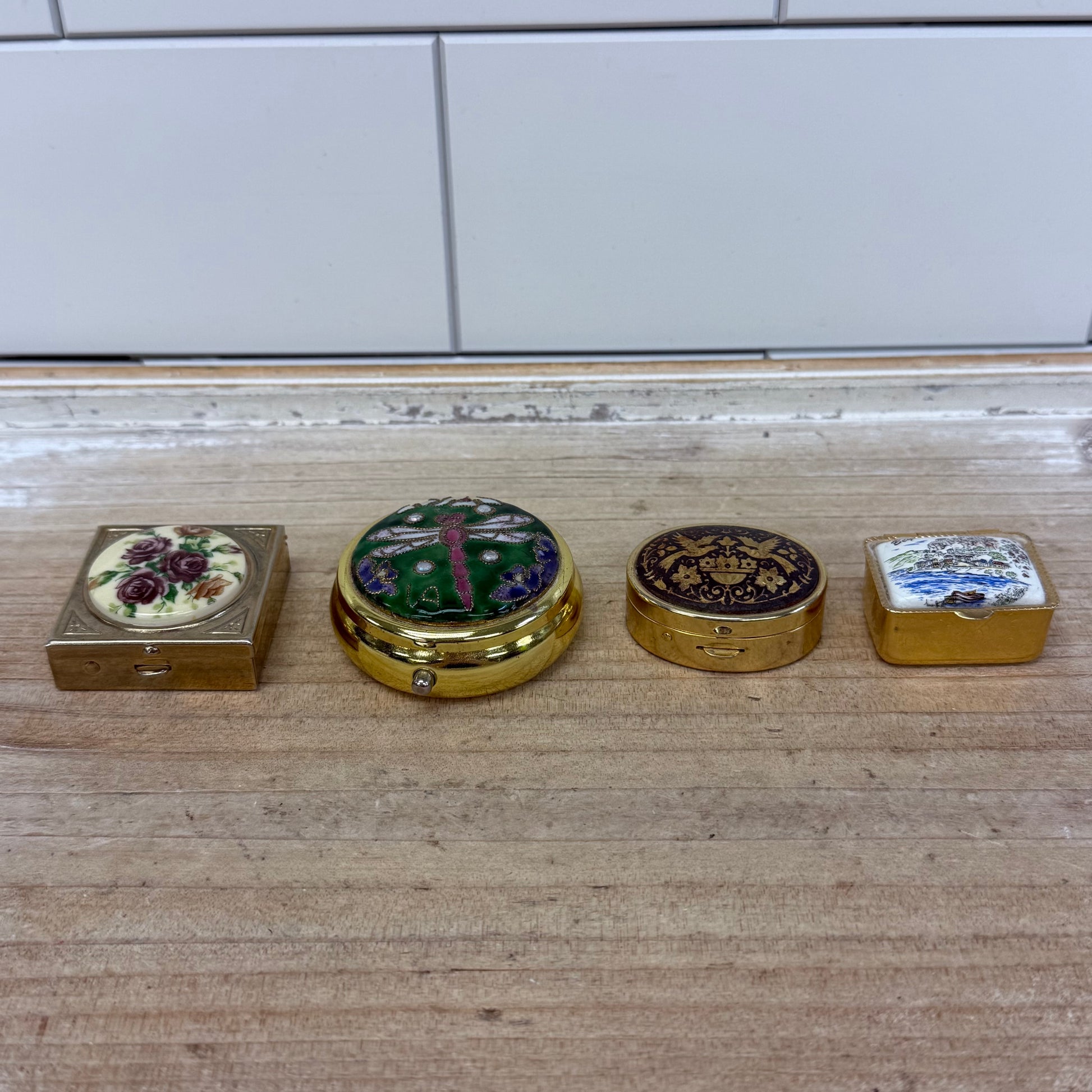 Delight in the charm and craftsmanship of this Enameled Metal Trinket Box Selection, where each piece tells its own story through intricate detail and vintage appeal. These beautifully crafted boxes feature vibrant enamel finishes, delicate metalwork, and timeless designs perfect for holding small treasures, jewelry, or keepsakes. Whether you choose one as a unique accent or collect them all for a coordinated display, each trinket box offers a touch of elegance and nostalgia. All are in good vintage condition with minor wear consistent with age and use—lovely additions to any vanity, dresser, or curio collection.