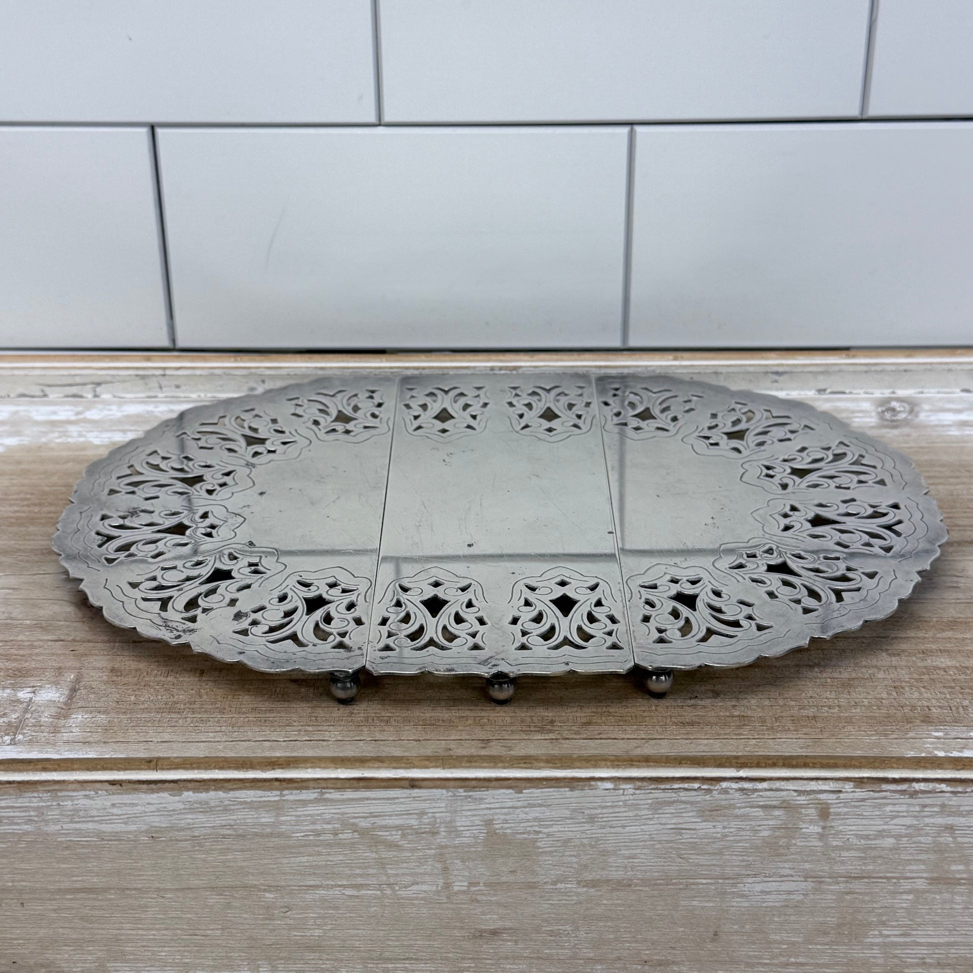Trivet Hot Plate, Expandable Pierced Silver Plated