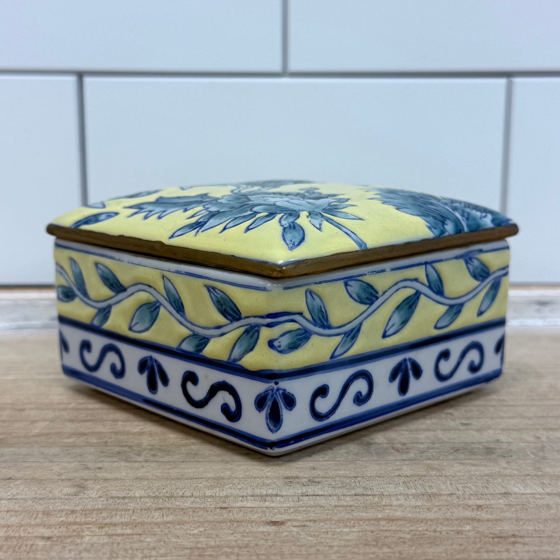 Yellow Floral Trinket Box 4”x4”x2.5”