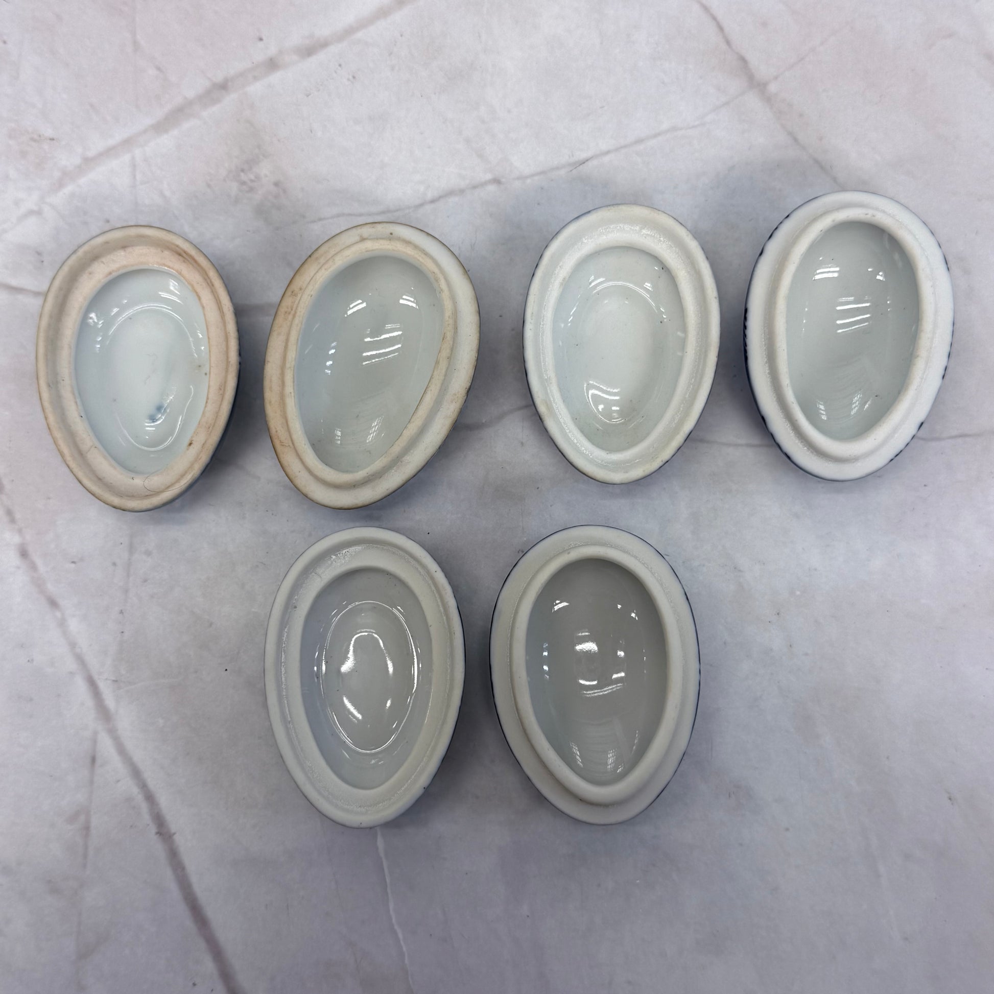 Fitz and Floyd trinket boxes, decorative ceramic eggs, blue and white chinoiserie decor, vintage trinket box lot, egg shaped keepsake boxes, yellow floral ceramic box, 1980s decorative ceramics, hand painted ceramic decor, collectible display boxes, vintage home accents