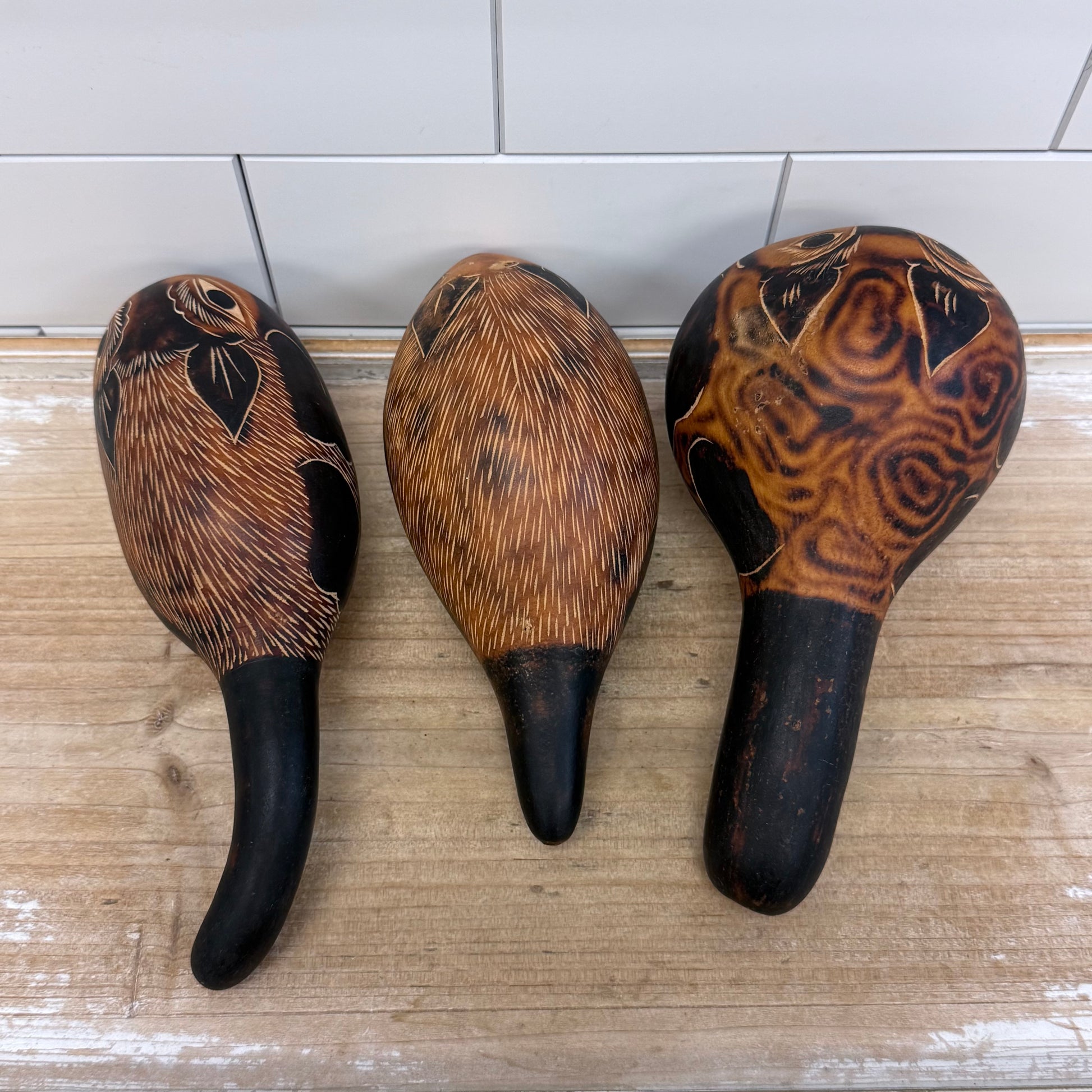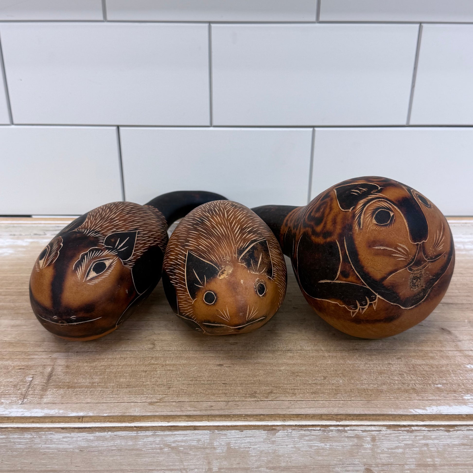 Peruvian Carved Gourd Rattles Animal Folk Art Set 1970s