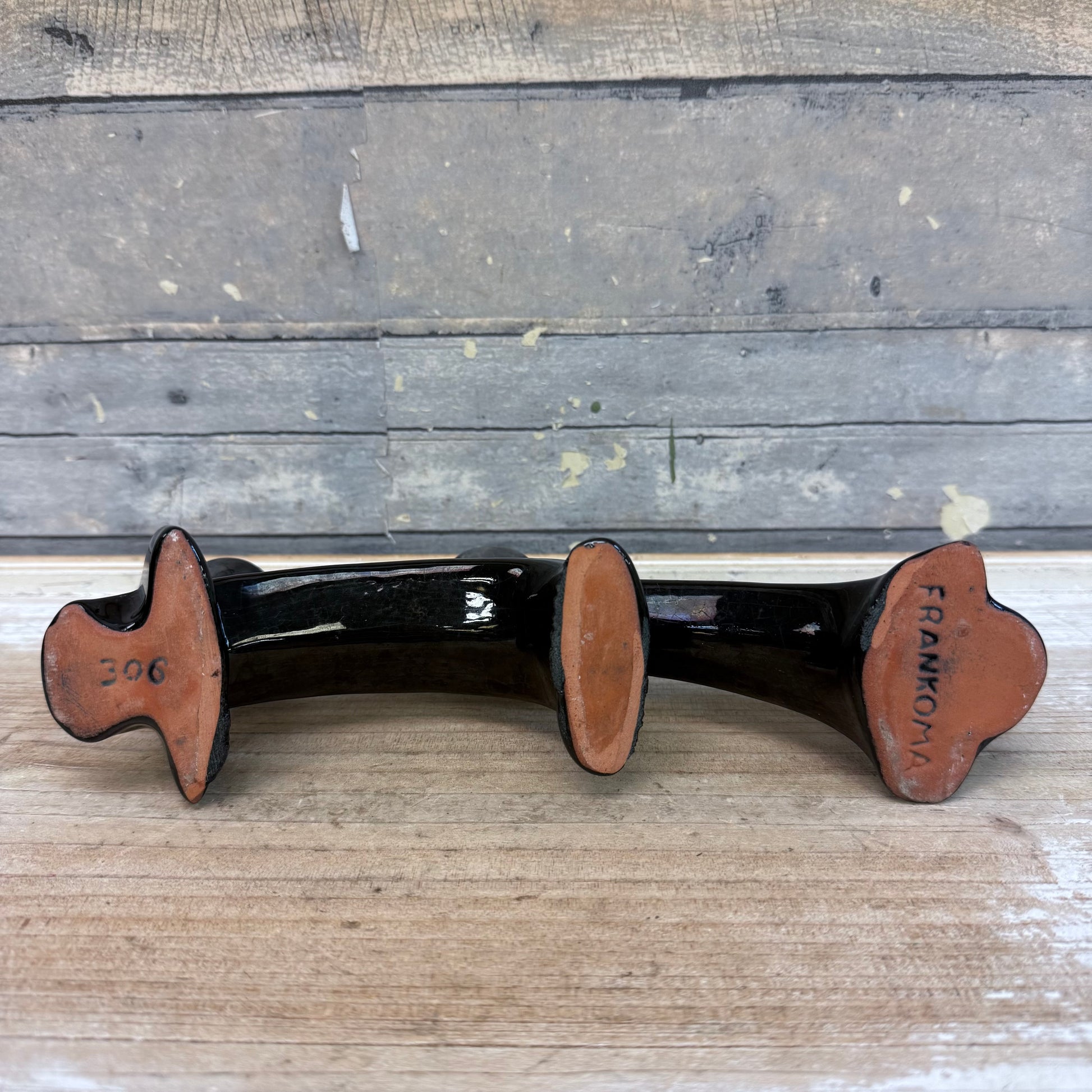 keywords: Frankoma pottery, black terracotta candlestick, vintage Frankoma, collectible pottery, mid-century American ceramics, painted terracotta, numbered Frankoma piece, rustic home décor, handcrafted candlestick, Frankoma #306