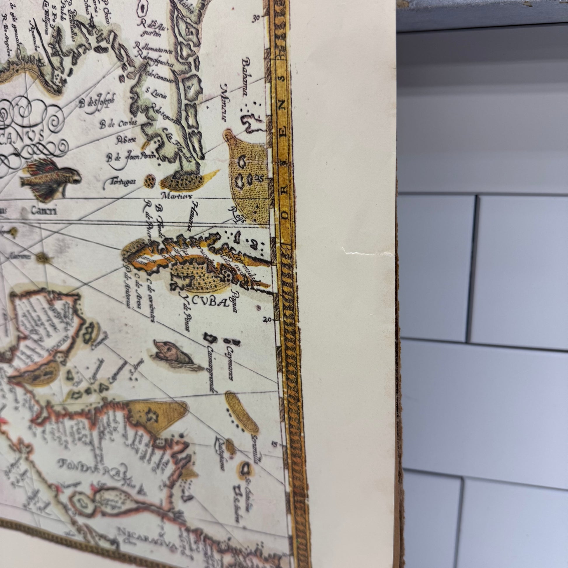 Celebrate the artistry of cartography with The New World Map by Gabriel Tatton, a striking vintage art print reproduced by American Heritage. This richly detailed piece captures the wonder of early exploration with intricate borders, mythical sea creatures, and old-world craftsmanship that reflects the spirit of discovery. Printed on quality paper and sized at 24”x18”, it’s a captivating addition to any study, library, or gallery wall—bringing history, artistry, and nostalgia together in one timeless design.
