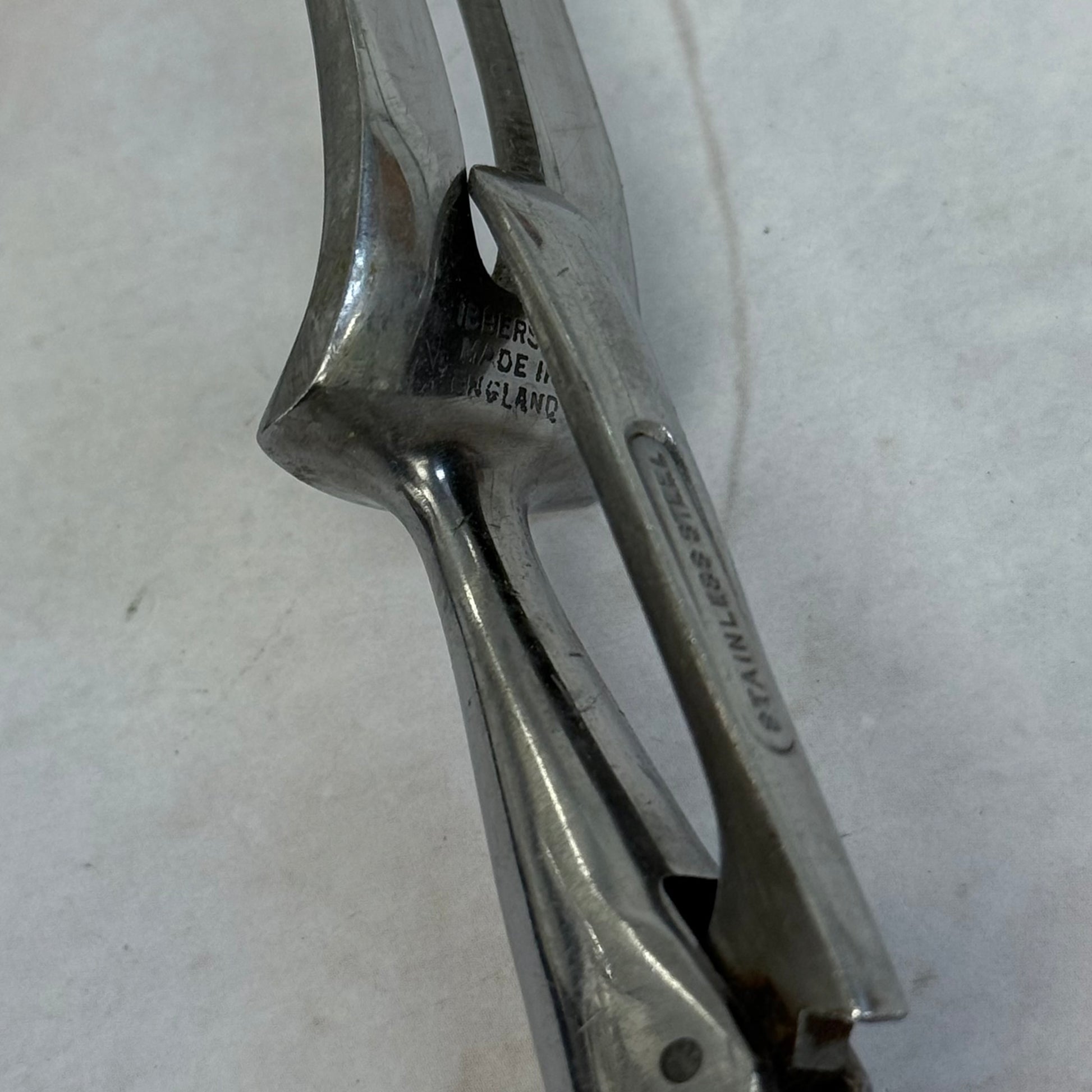 Elevate your dining experience with this George Ibberson & Co. Antler Handled Carving Knife & Fork Set, a stunning example of vintage craftsmanship. The knife measures 15”x1.5” and the fork 11”x1”, each featuring stainless steel blades and tines, complemented by sterling silver collars and end plates that connect beautifully to the natural antler handles. Made in Sheffield, England, exclusively for John Wanamaker, both pieces bear the George Ibberson & Co. maker’s mark on the knife blade and stamped on the sterling segments. In good vintage condition with minor wear consistent with age and use, this set combines functional elegance with collectible appeal for enthusiasts of fine cutlery and heritage tableware.