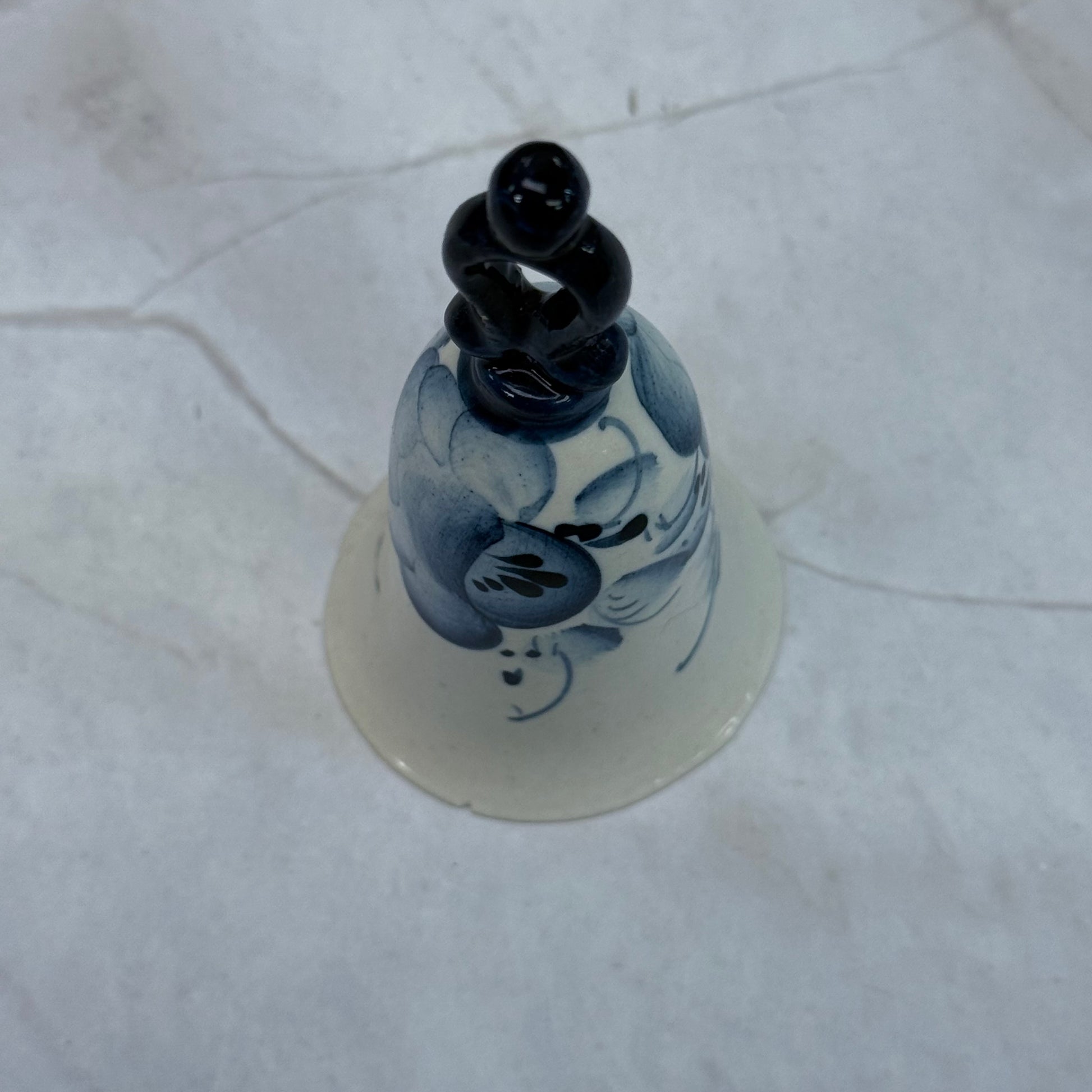 Keywords: Gzhel porcelain bell, hand painted porcelain, blue and white ceramics, Russian folk art, vintage decorative bell, collectible porcelain, artisanal home accent, folk style craft, porcelain bell decor, traditional ceramic piece