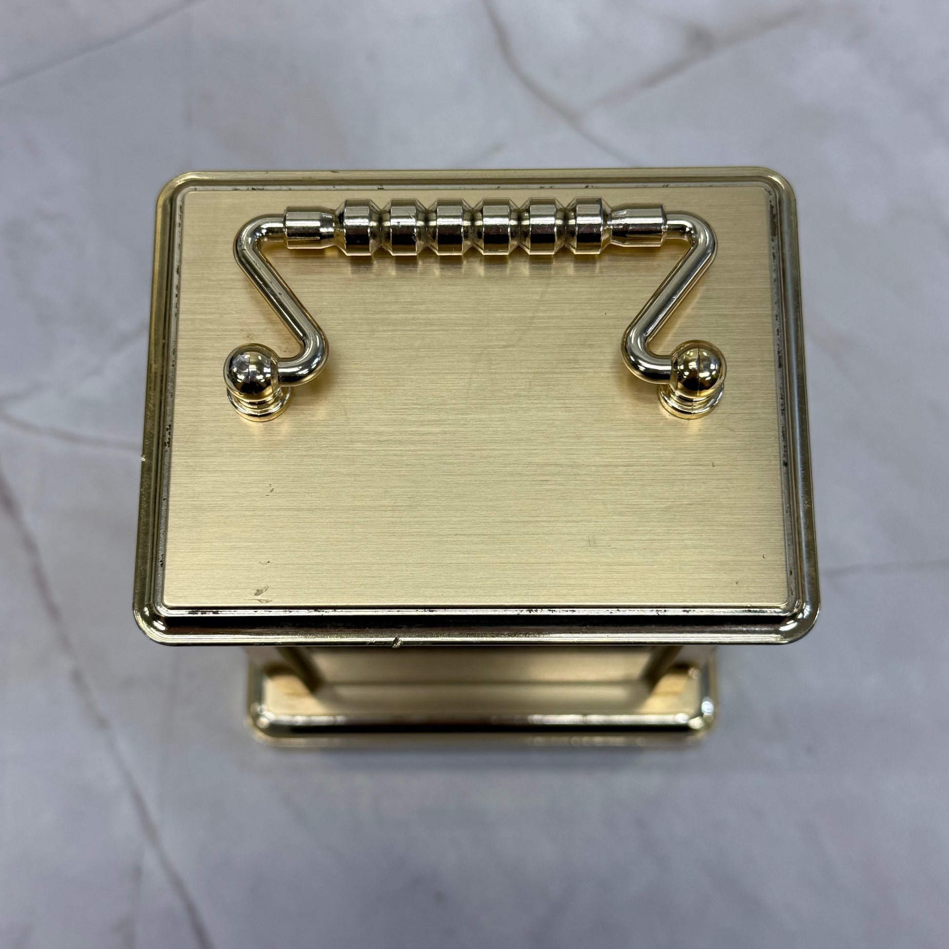 Timeless charm meets vintage craftsmanship in this Hermle Fremont Quartz Table Clock, a refined accent piece with enduring appeal. Made in West Germany and marked on the clock face, this elegant 6-inch brass-finished clock features a classic black and gold color scheme, adorned with delicate floral embellishments for a touch of old-world romance. Tested and in working condition, it’s as functional as it is decorative. Minor wear consistent with age and use adds character without compromising its vintage beauty—perfect for mantel, desk, or shelf display.