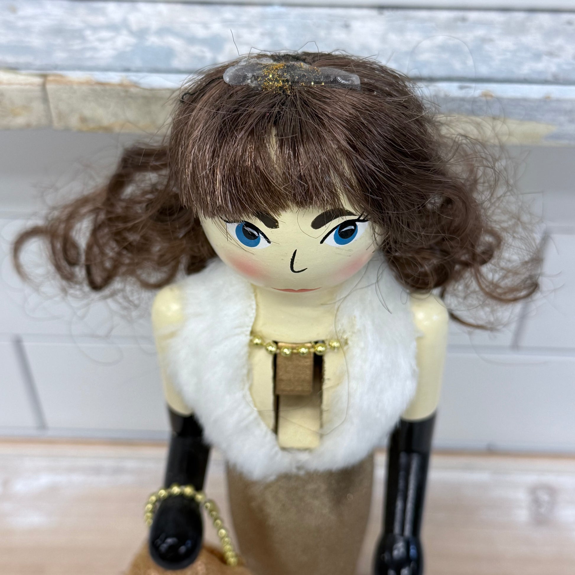 Keywords: wooden nutcracker, holiday figurine, vintage Christmas decor, collectible nutcracker, festive decoration, classic and stylish, seasonal display, retro holiday, Christmas mantel, whimsical figurine