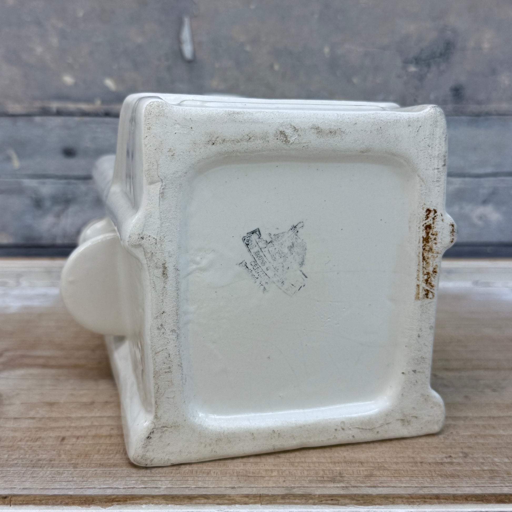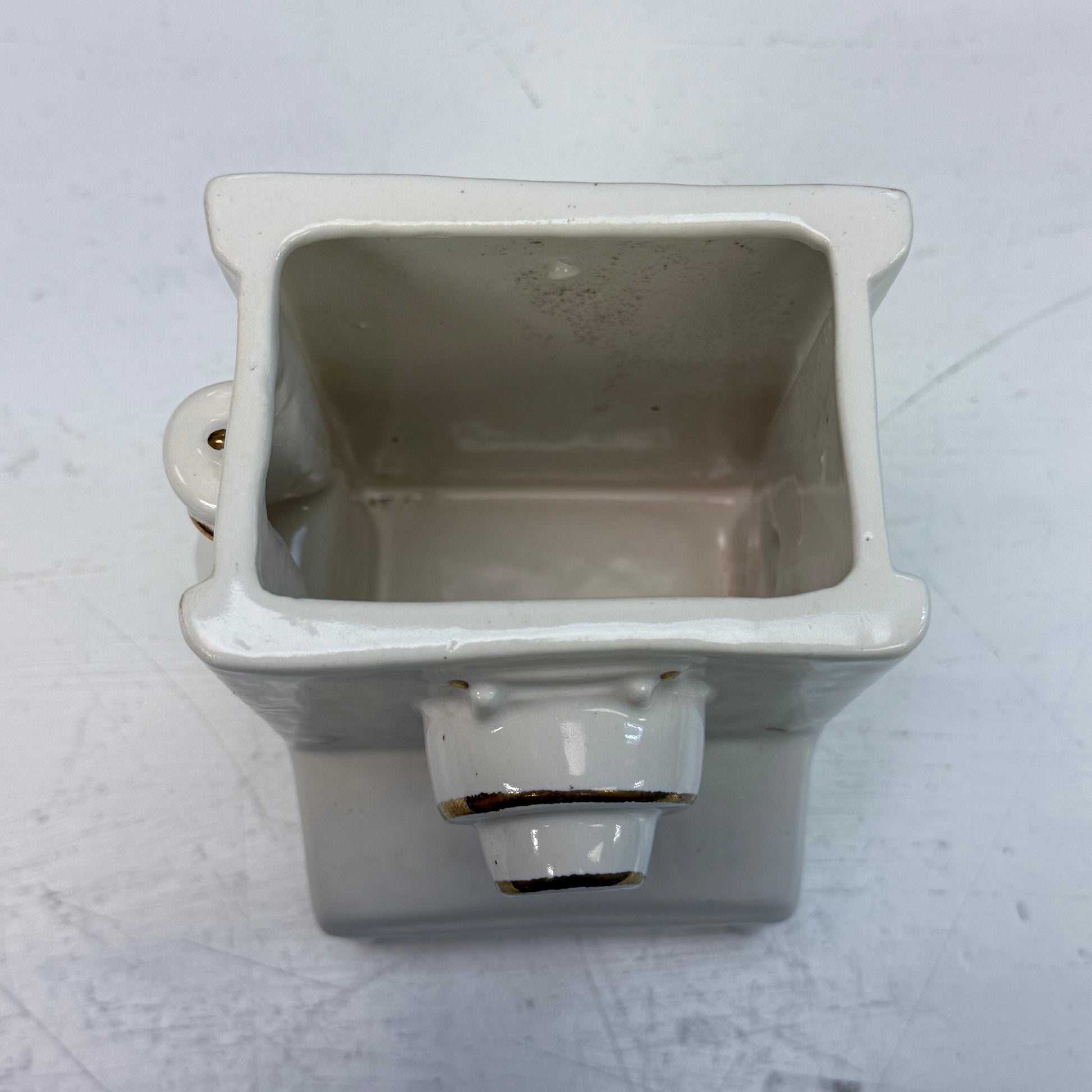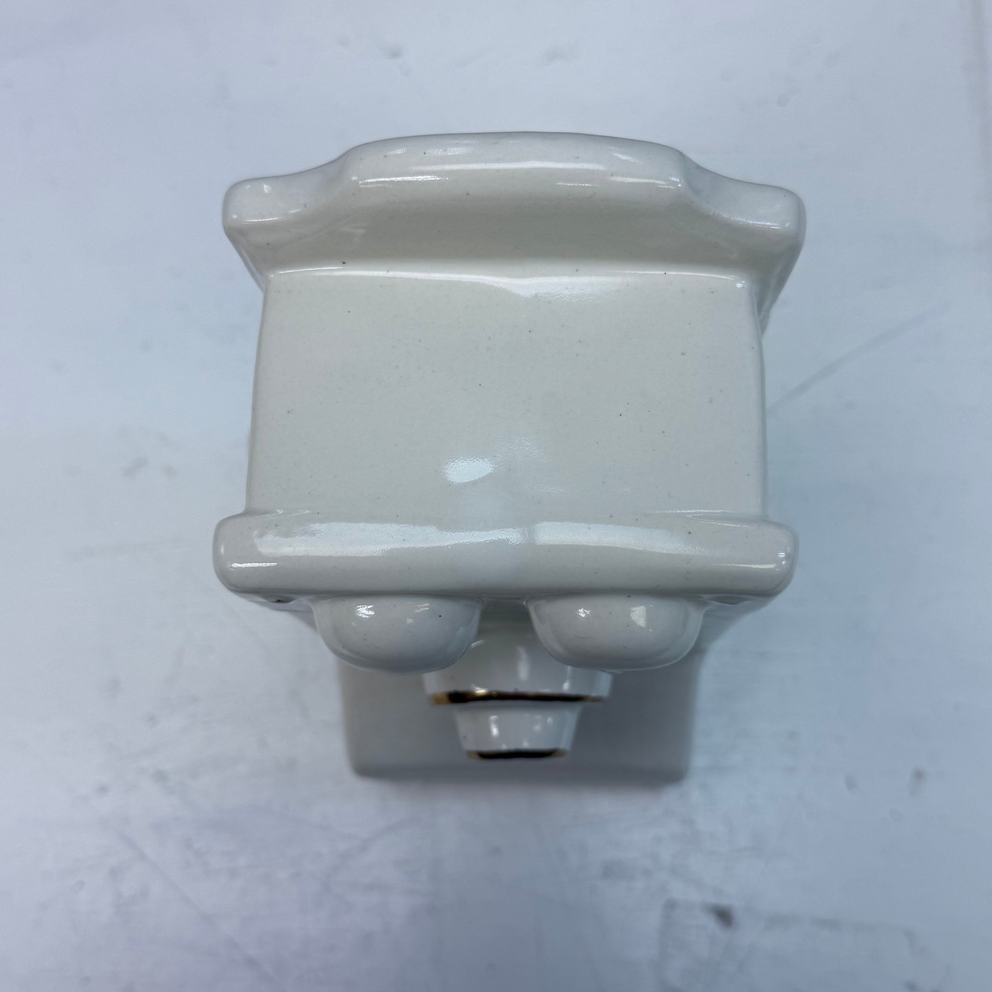 This House of Webster ceramic wall telephone cookie jar is a charming vintage collectible that doubles as nostalgic kitchen décor. Designed to resemble an old-fashioned wall telephone, it’s finished with fine detailing and a glossy glaze, making it both functional and decorative. The underside carries the maker’s mark, confirming its authenticity. In good vintage condition with only minor wear consistent with age and use, this piece measures 5”x5”x9” and is perfect for collectors of novelty cookie jars, vintage ceramics, or retro-inspired kitchenware.
