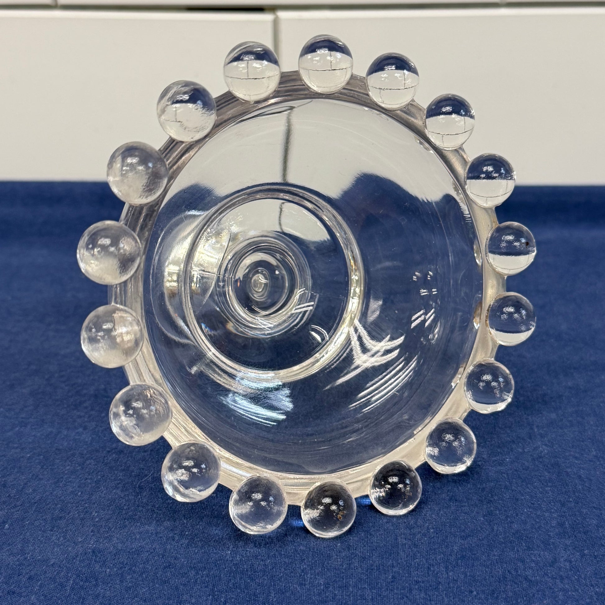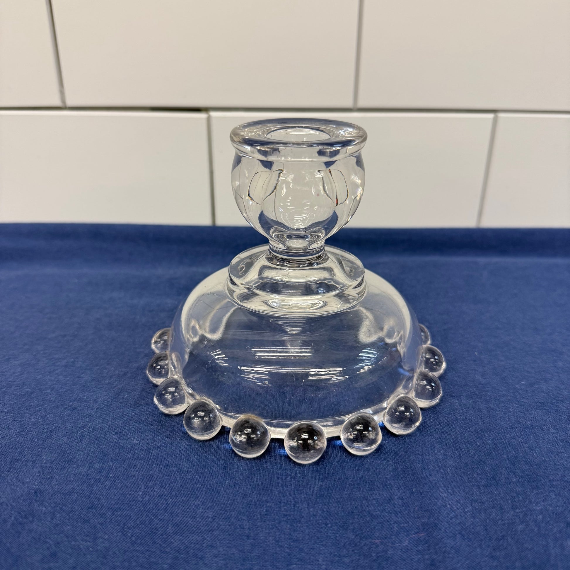 Keywords: Imperial Candlewick, vintage glass, candlestick holder, beaded edge, clear glass, American glassware, collectible decor, 5x4 inches, antique style, table centerpiece