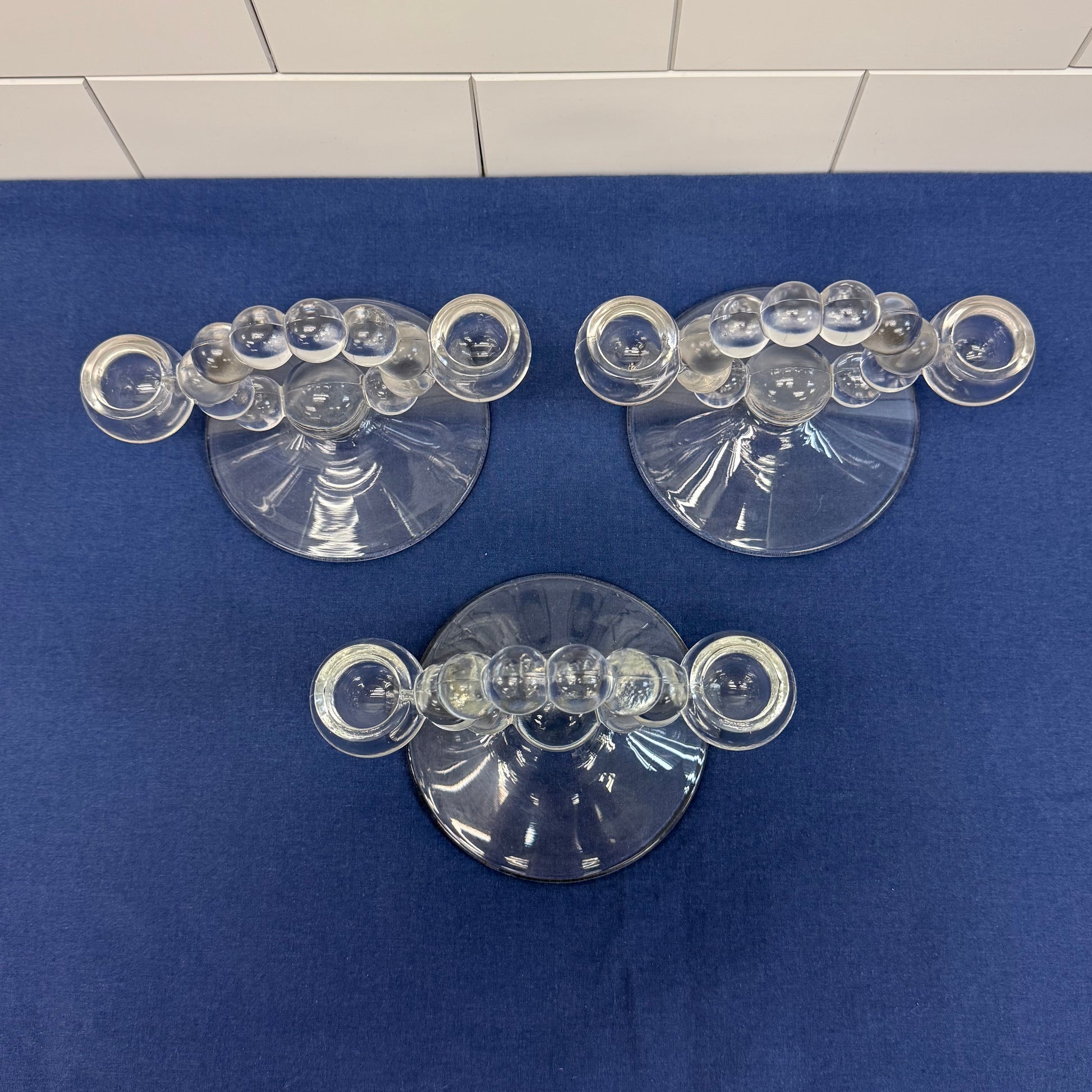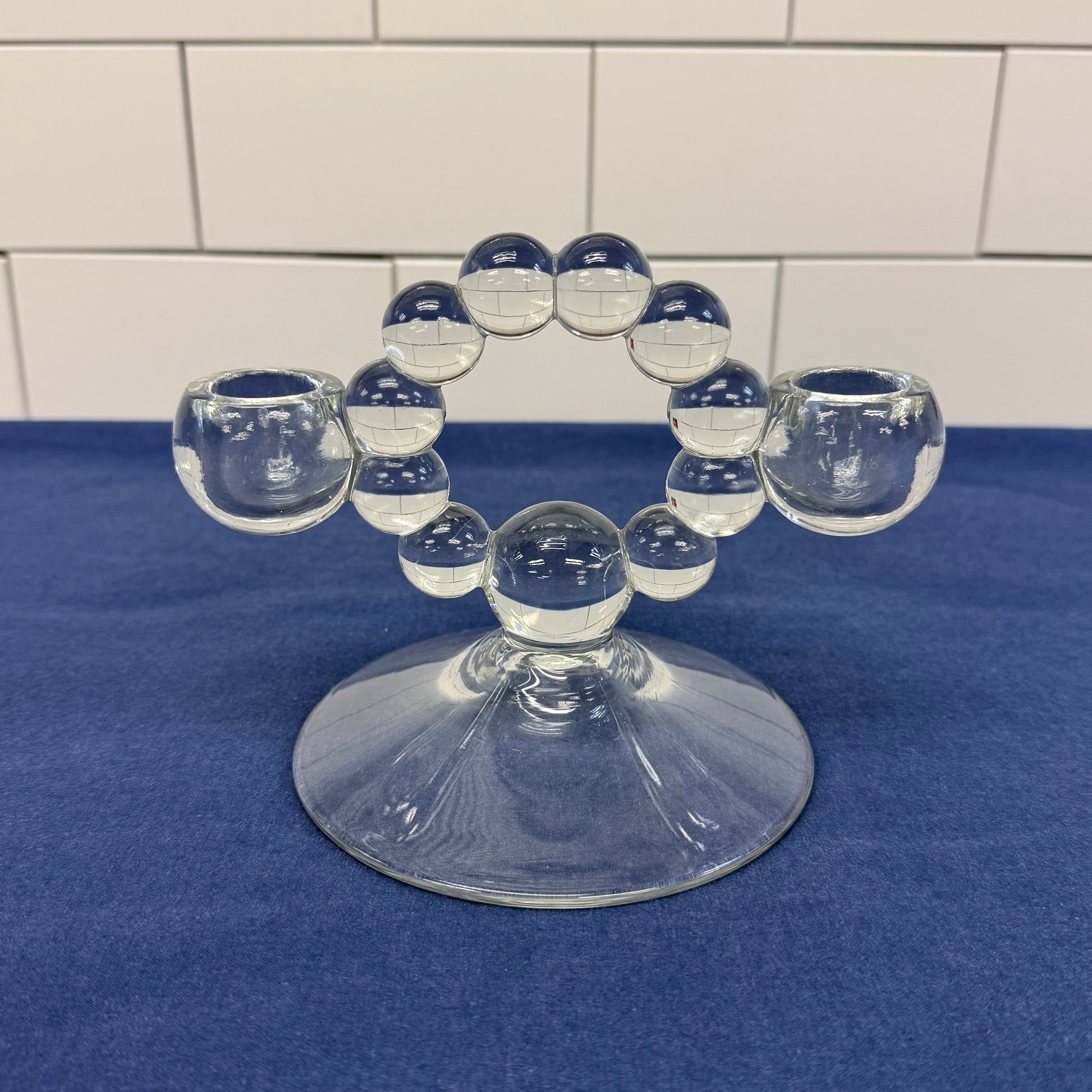 Keywords: Imperial Candlewick, double candlestick, vintage glassware, beaded edge, clear glass, American glass, collectible decor, 7x5x5 inches, elegant lighting, antique candle holder