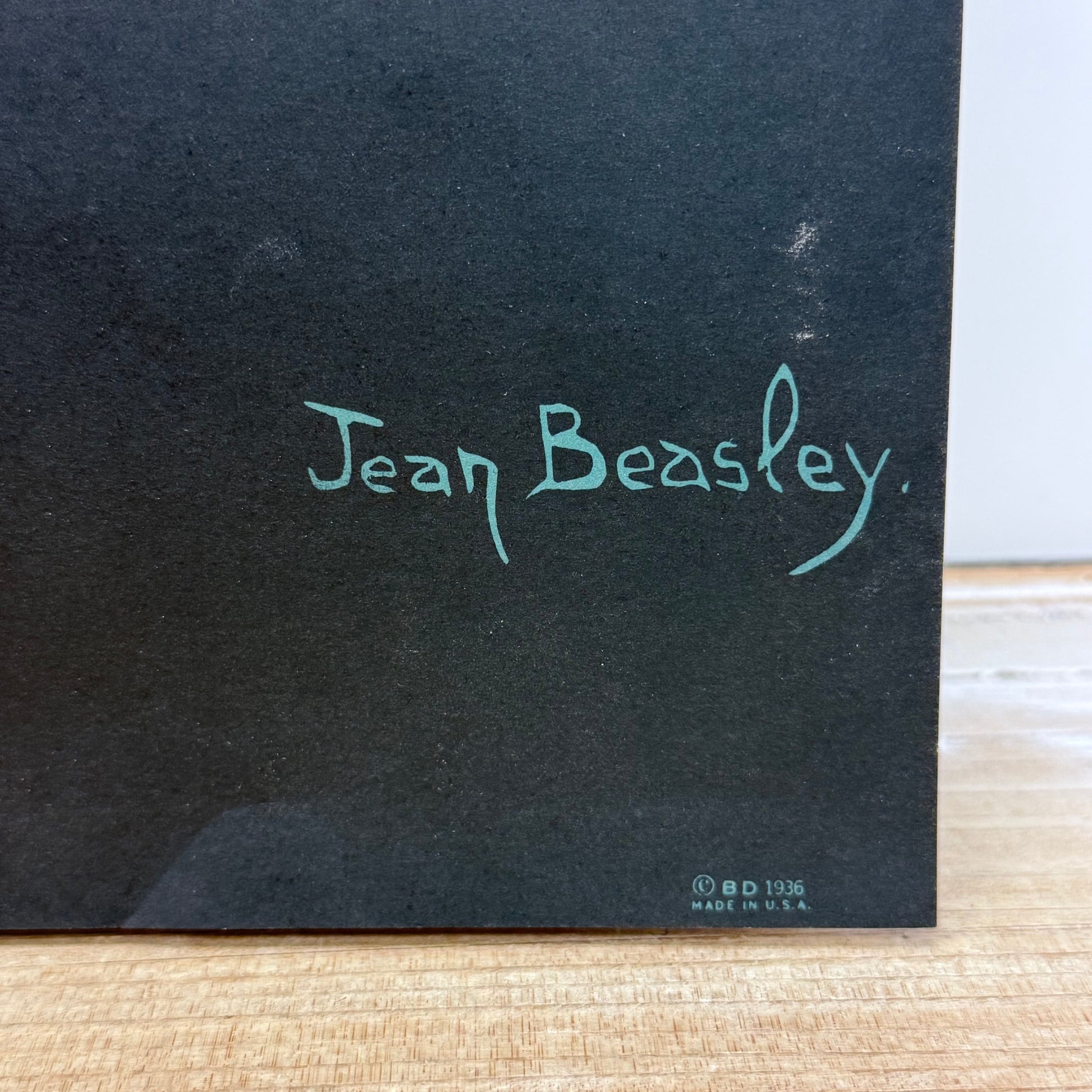 Softly romantic and evocative of 1930s floral illustration, this Jean Beasley “Yellow Roses” lithograph, published in 1936, captures the timeless beauty of blooming garden roses in warm, painterly tones. Printed in the United States and numbered #4185, the composition reflects the gentle realism and decorative sensibility popular in American interiors during the pre-war era. The delicate shading and layered color typical of period lithography give the blossoms depth and warmth, making it a charming addition to cottage, traditional, or vintage-inspired spaces. Offered in good vintage condition with minor wear consistent with age and use, this 1936 BD-published print measures approximately 16” x 12” and retains its classic early 20th-century character.