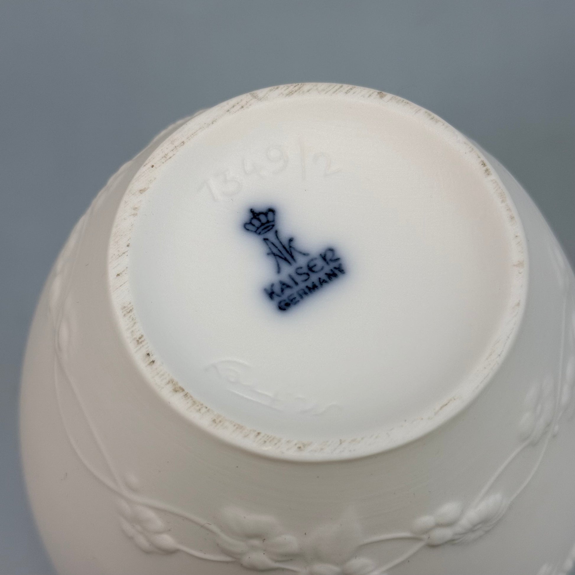 Kaiser porcelain, floral relief vase, bisque porcelain vase, M. Frey signed, West German porcelain, vintage ceramic vase, collectible vase, white porcelain decor, model 1349/2, textured floral vaseL