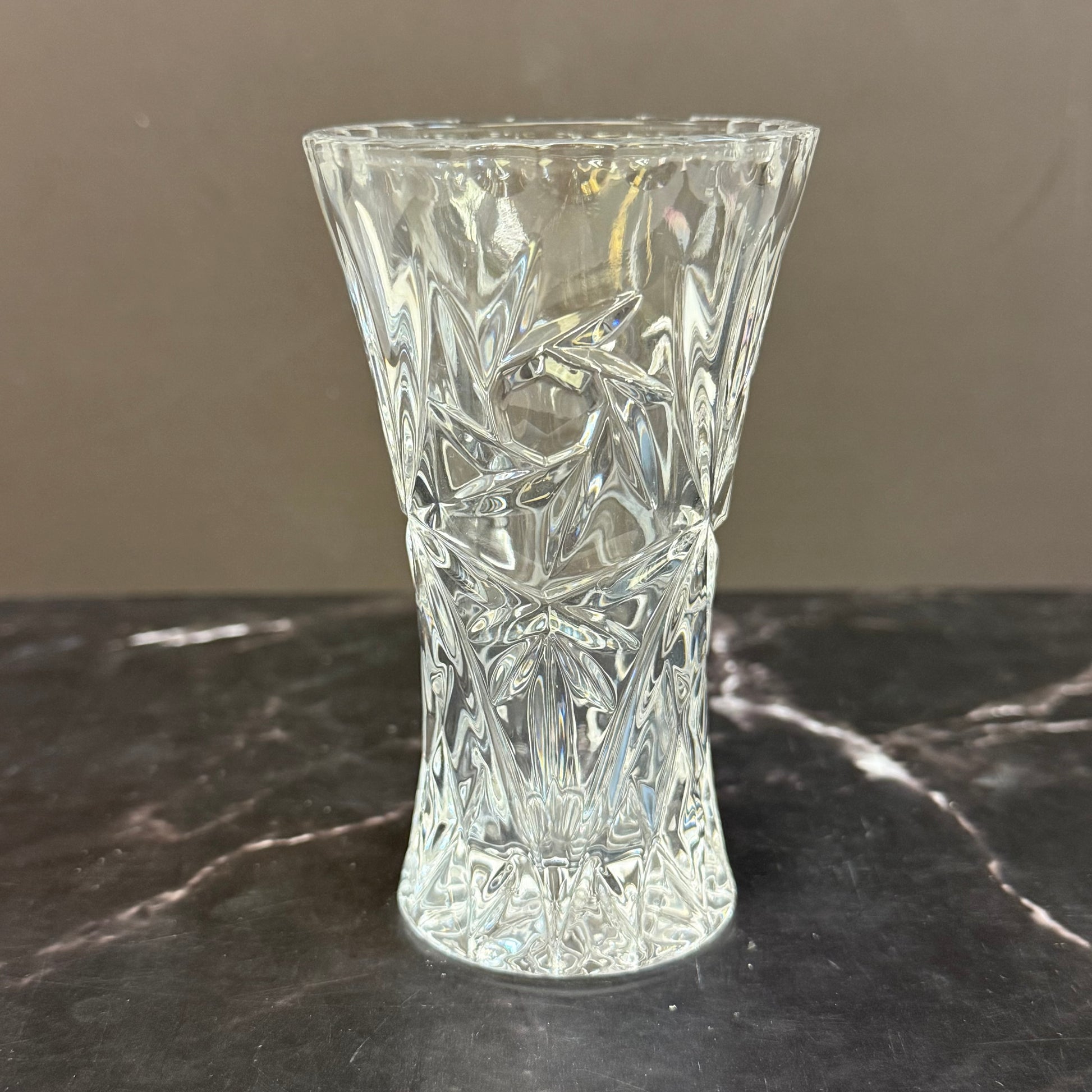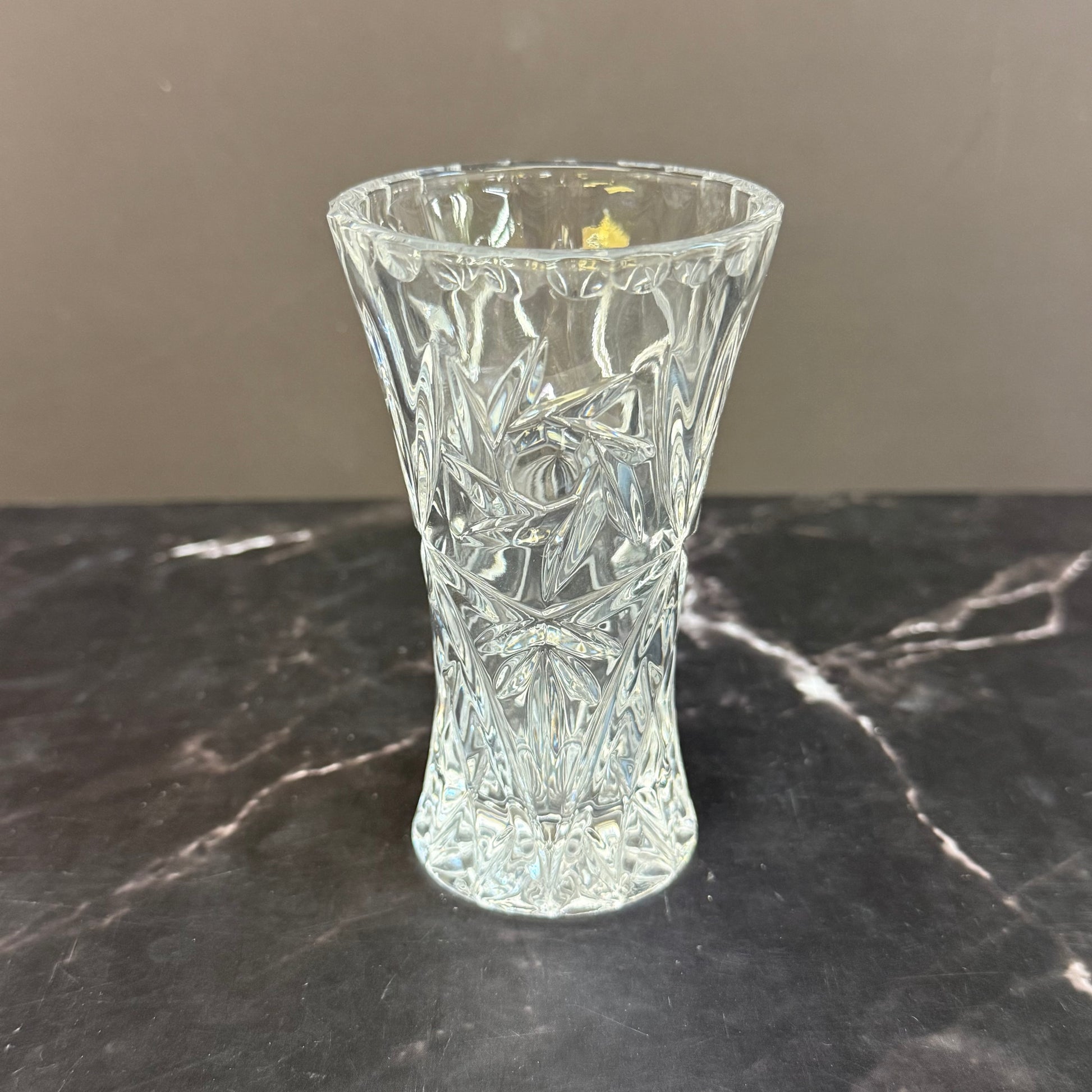 Elevate your décor with this elegant set of 2 Lenox Star Cut Crystal Vases, crafted in the Czech Republic and showcasing timeless craftsmanship. The larger vase retains its original maker’s mark sticker, while the smaller complements beautifully without one, both featuring brilliant star-cut detailing that reflects light with dazzling clarity. In great vintage condition, these crystal vases are perfect for displaying fresh blooms or standing alone as sparkling statement pieces. Their versatile sizes—larger at 3”x6” and smaller at 3”x4”—make them ideal for mixing and matching in any space, from classic to contemporary.