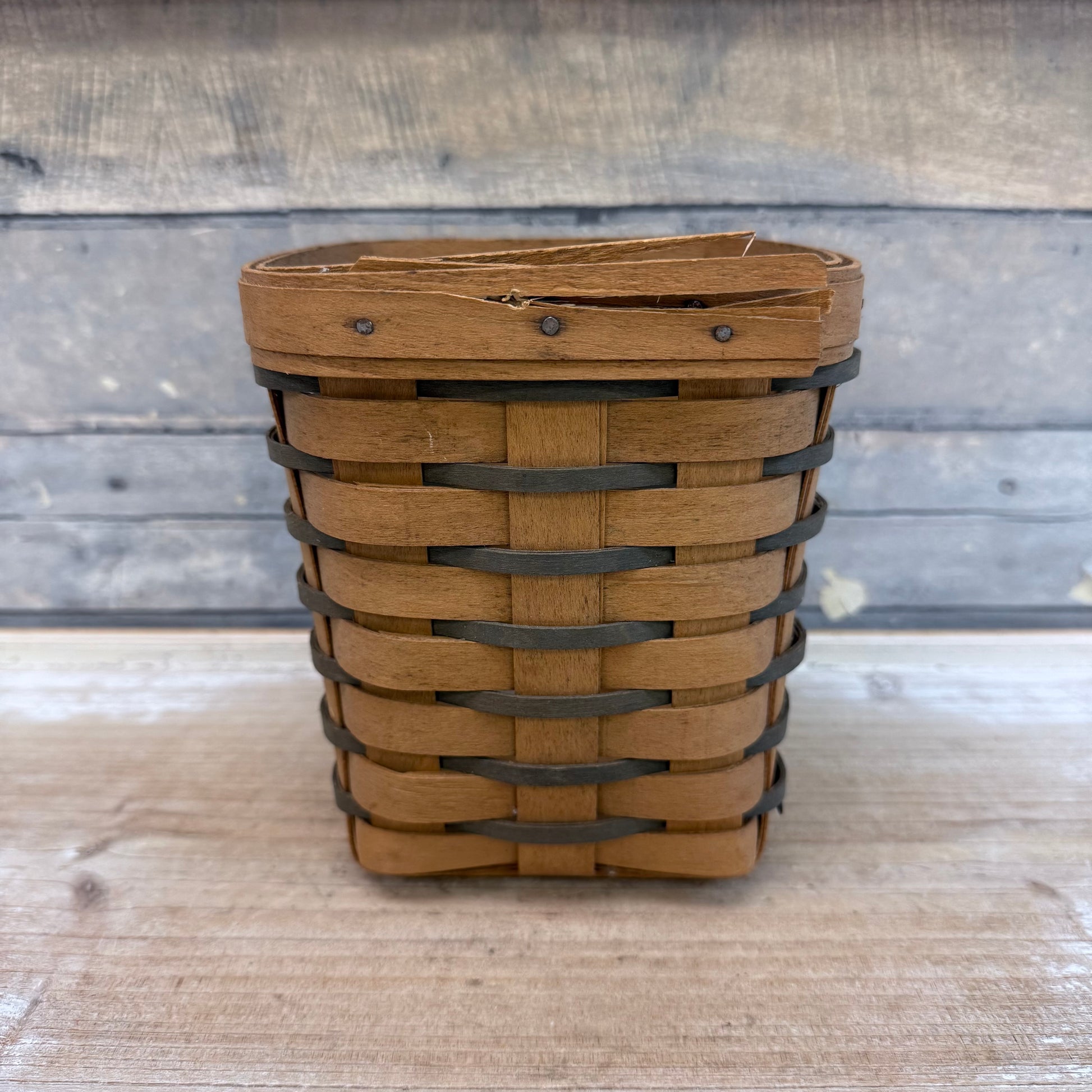 Add rustic charm to your collection with this 1996 Longaberger Square Basket, personally signed and dated by the maker. Measuring 6”x6”, this handcrafted piece showcases traditional basket weaving with a timeless design. While in fair vintage condition with moderate wear consistent with age and use, it carries the authenticity of a live signature and maker’s mark on the underside—perfect for Longaberger enthusiasts and collectors of American folk art.