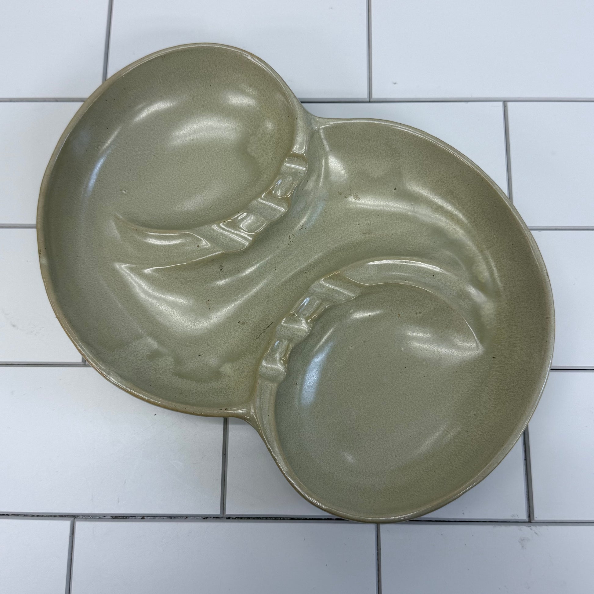 Keywords: McCoy, pottery, divided dish, vintage, atomic, mid-century, ceramic, collectible, serving, retro