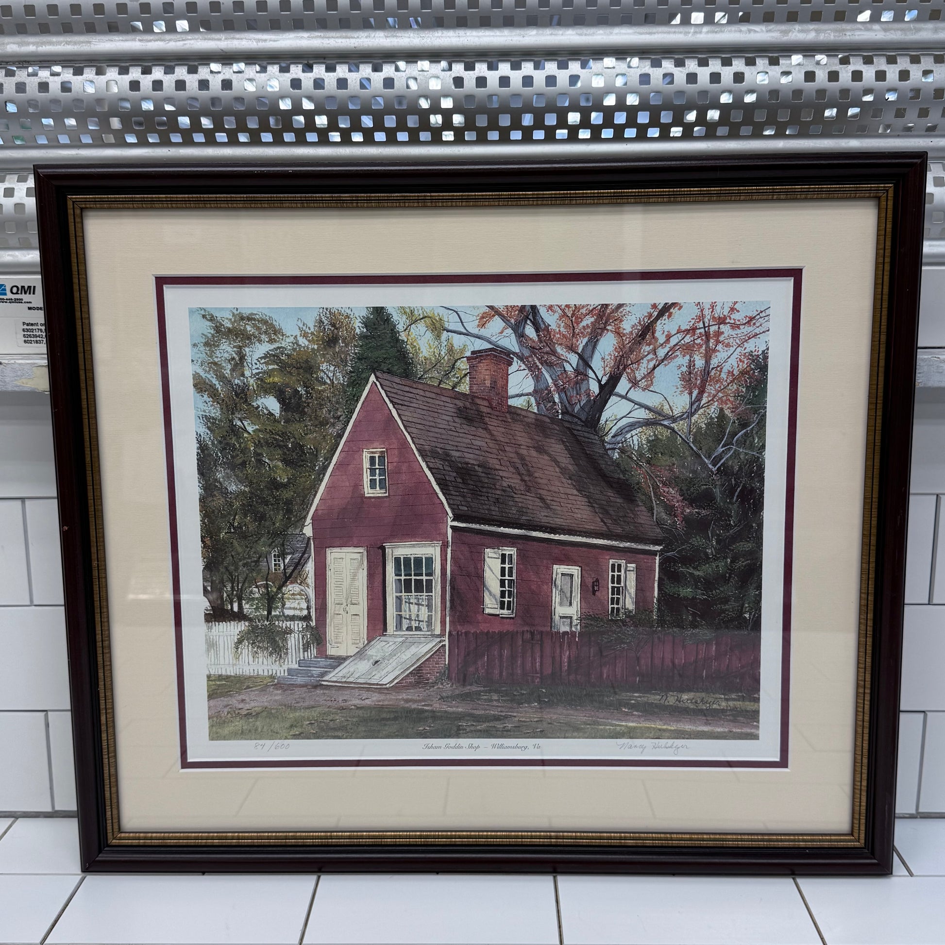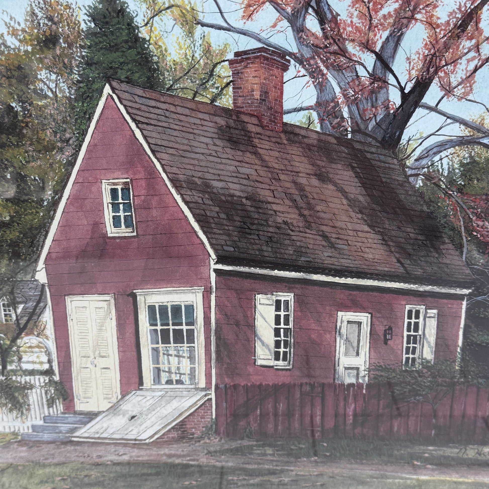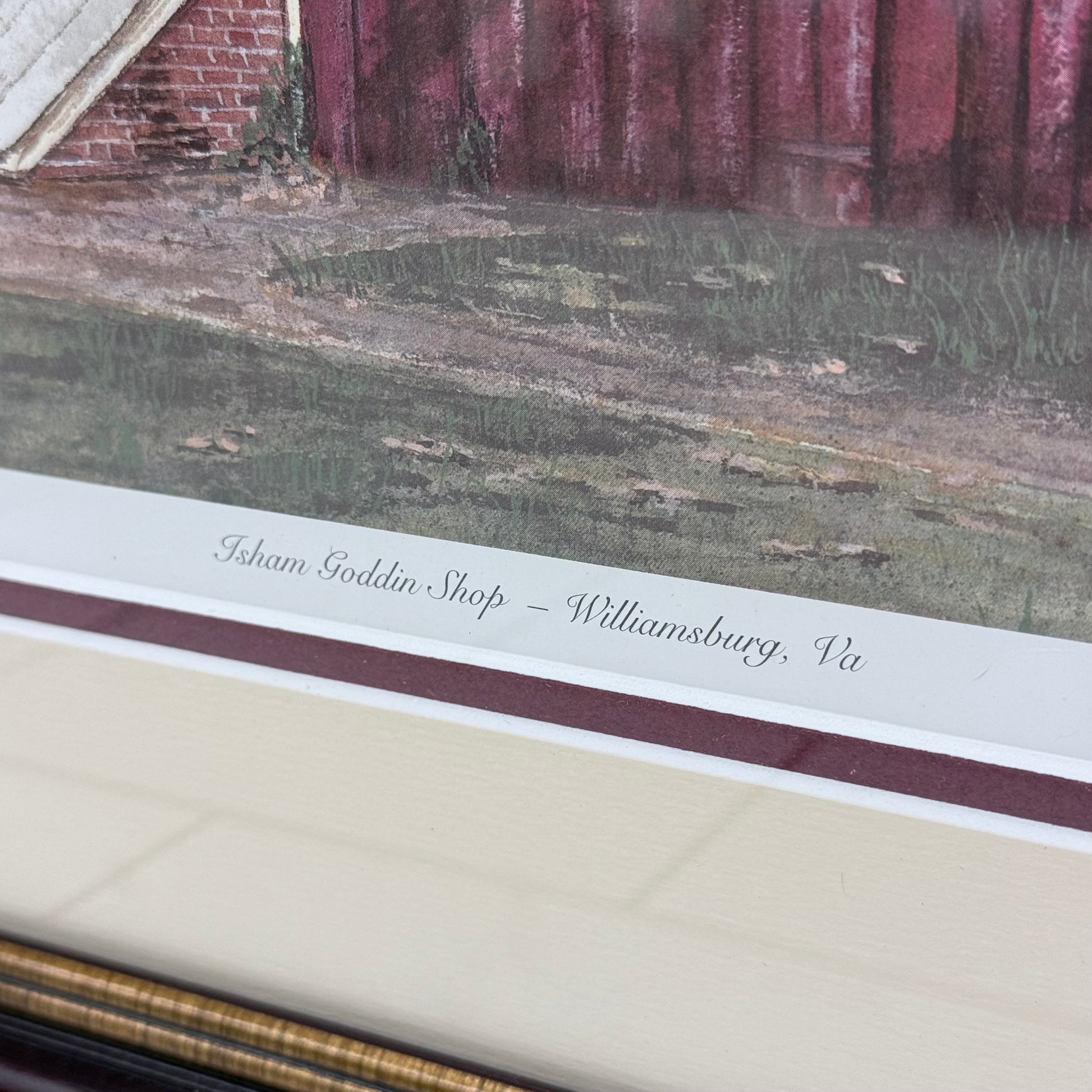 Celebrate the historic charm of Colonial Williamsburg with this limited edition Nancy Hulshizer “Isham Goddin Shop – Williamsburg, Va” art print, produced circa 1985–1995 during the height of late 20th-century regional Americana publishing. This signed and numbered print (84/600) captures the iconic 18th-century storefront along Duke of Gloucester Street with warm autumn tones, architectural detail, and classic illustrative precision. The edition size of 600 and hand-signed pencil signature reflect the popular gallery print format of the 1980s–early 1990s, making it a desirable piece for collectors of Virginia historical art, Colonial Williamsburg décor, and Americana prints. Professionally framed and ready to display, this vintage Nancy Hulshizer artwork blends decorative elegance with regional heritage appeal. Offered in good vintage condition with minor wear consistent with age and use, it makes a refined addition to traditional, colonial, or heritage-inspired interiors.