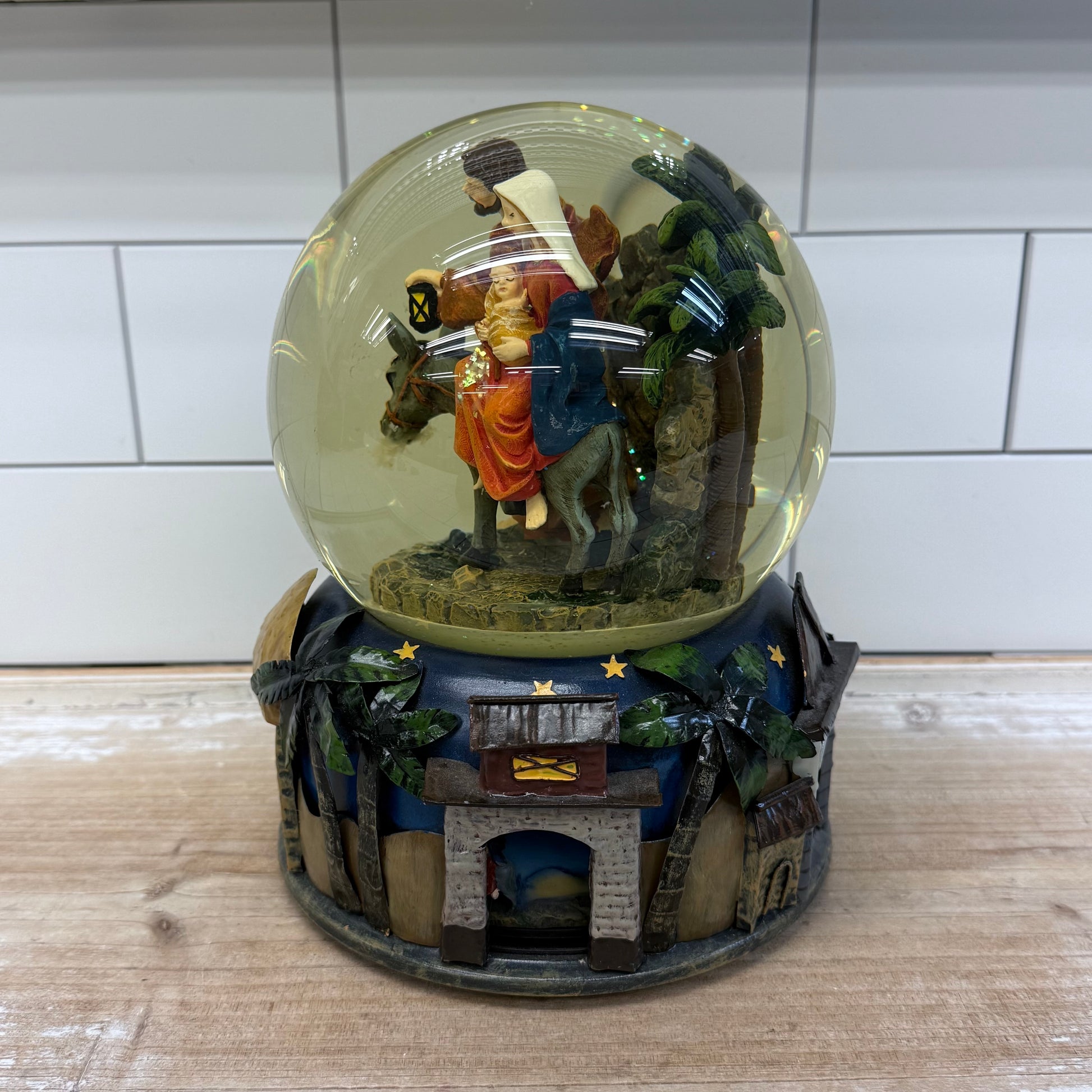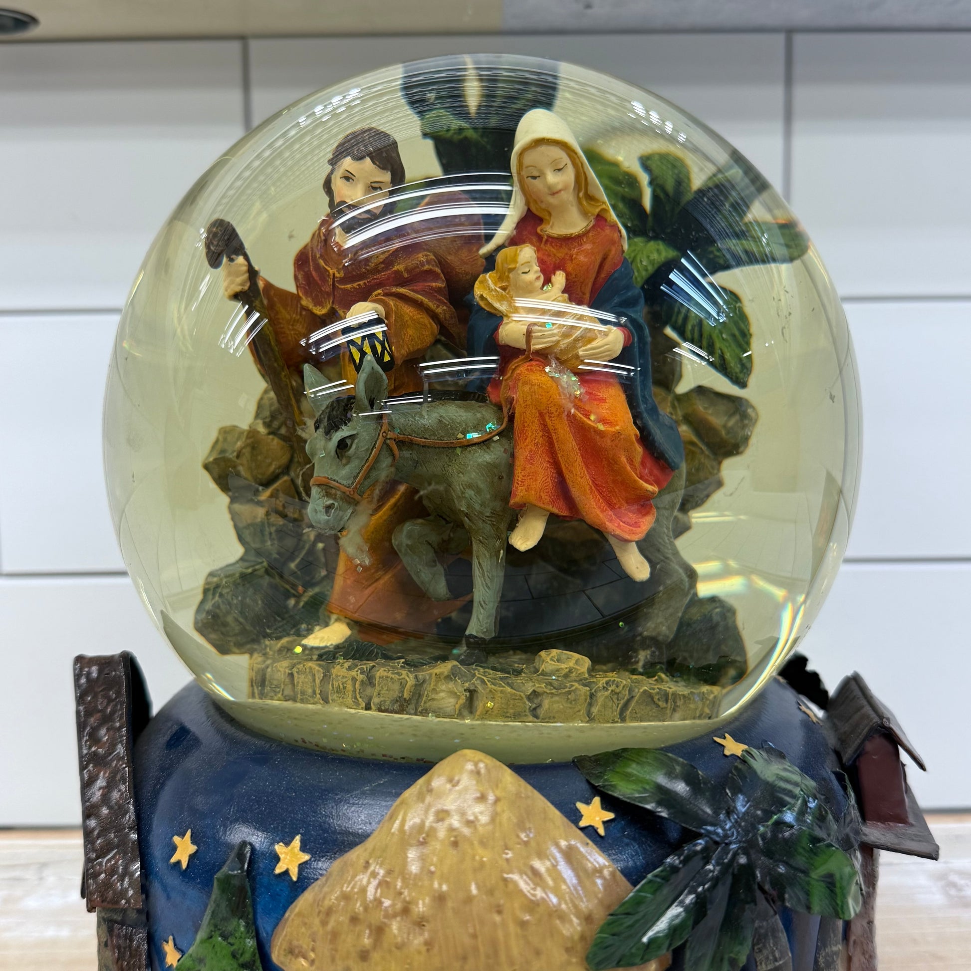 Keywords: nativity water globe, rotating musical globe, Sankyo movement, Silent Night, vintage Christmas décor, holiday collectible, rotating scene, tabletop Christmas decoration, festive music globe, vintage holiday collectible