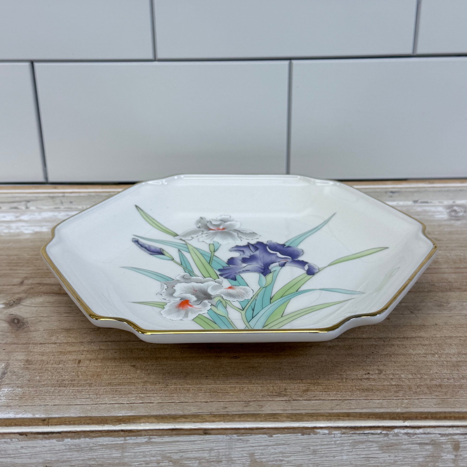 Otagiri, ceramic plate, iris bouquet, gilded, vintage, made in Japan, decorative plate, floral, collectible, elegant decor
