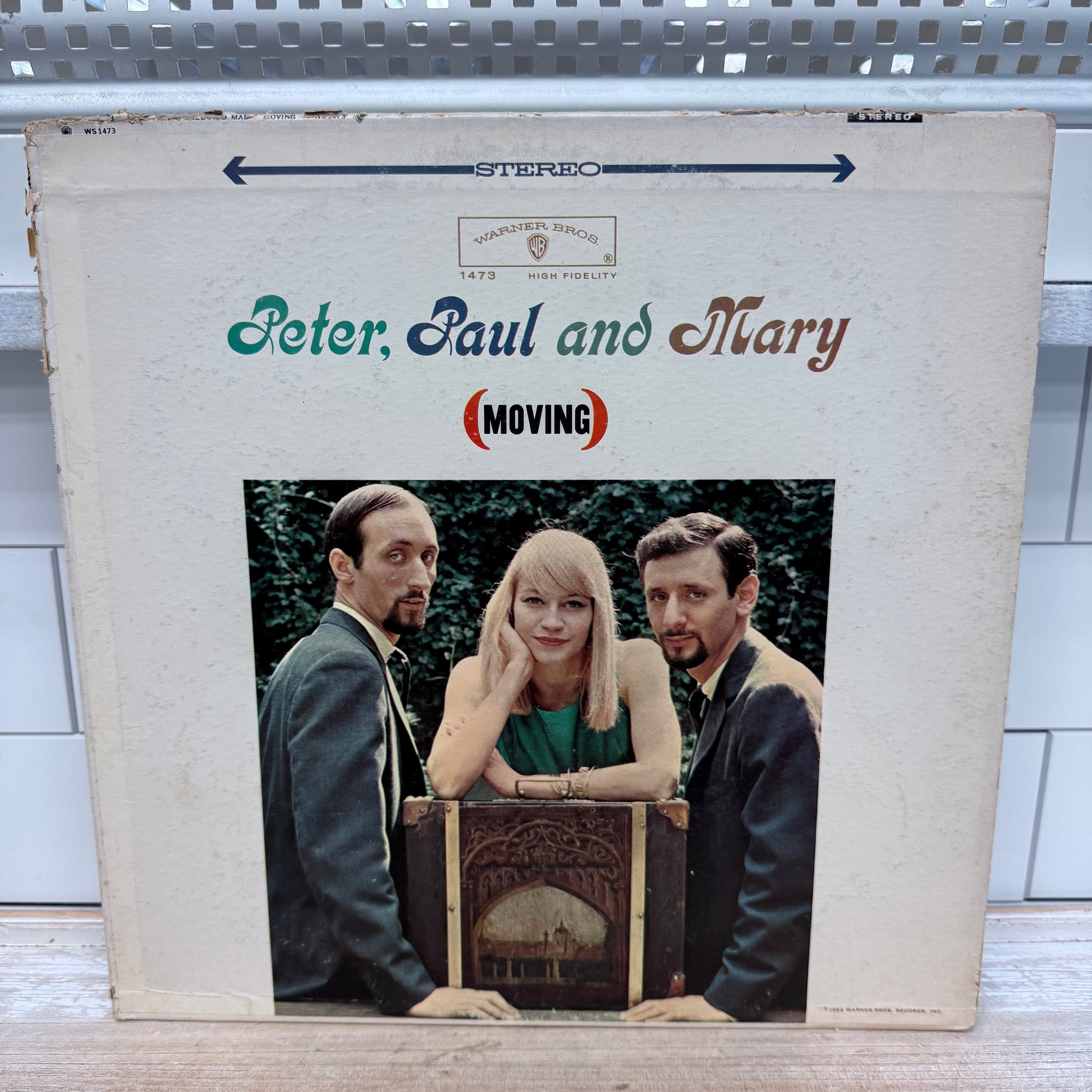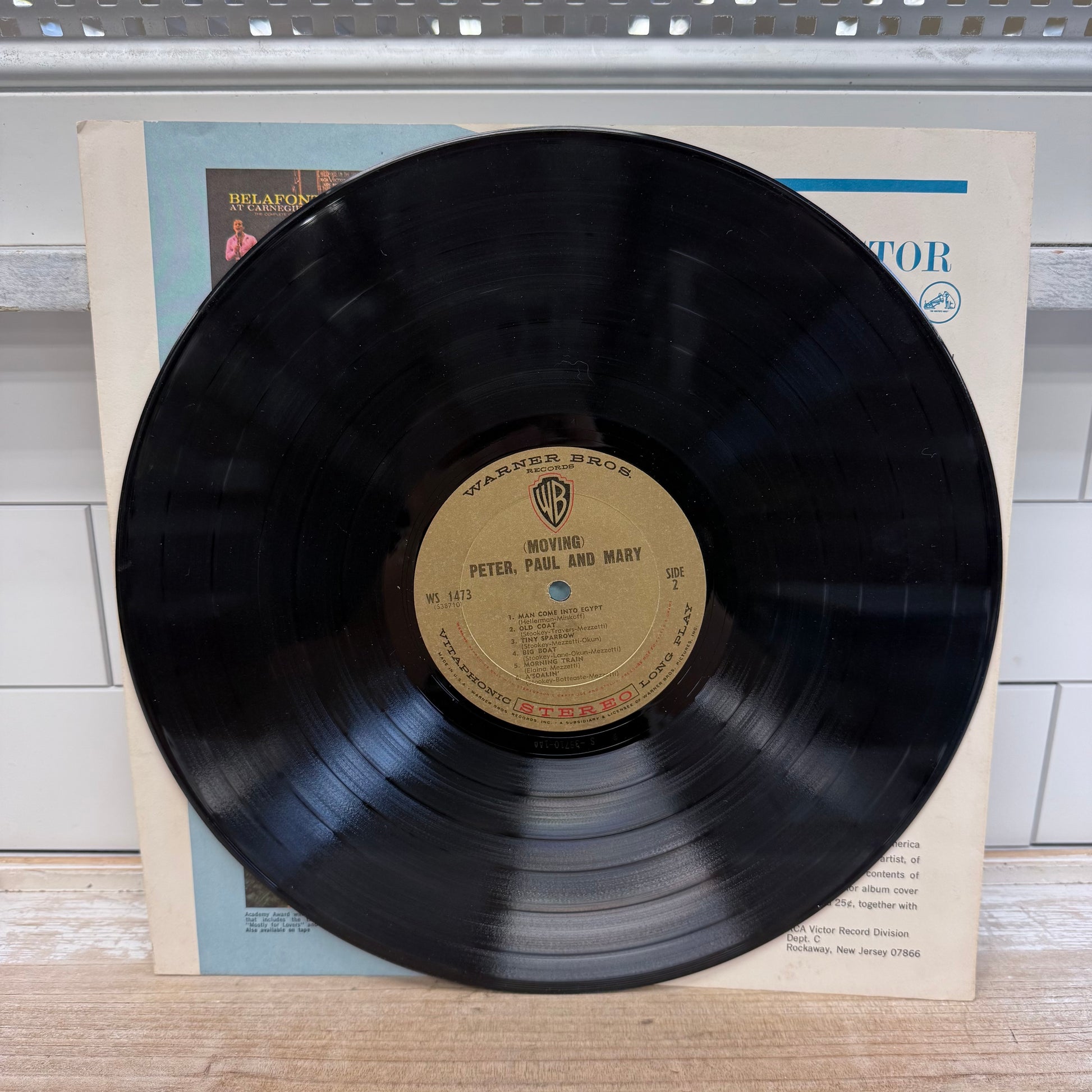 Peter, Paul and Mary, Moving, 1962 vinyl, Warner Bros. Records, folk music, classic LP, vintage record, collectible vinyl, American folk revival, harmonious trio