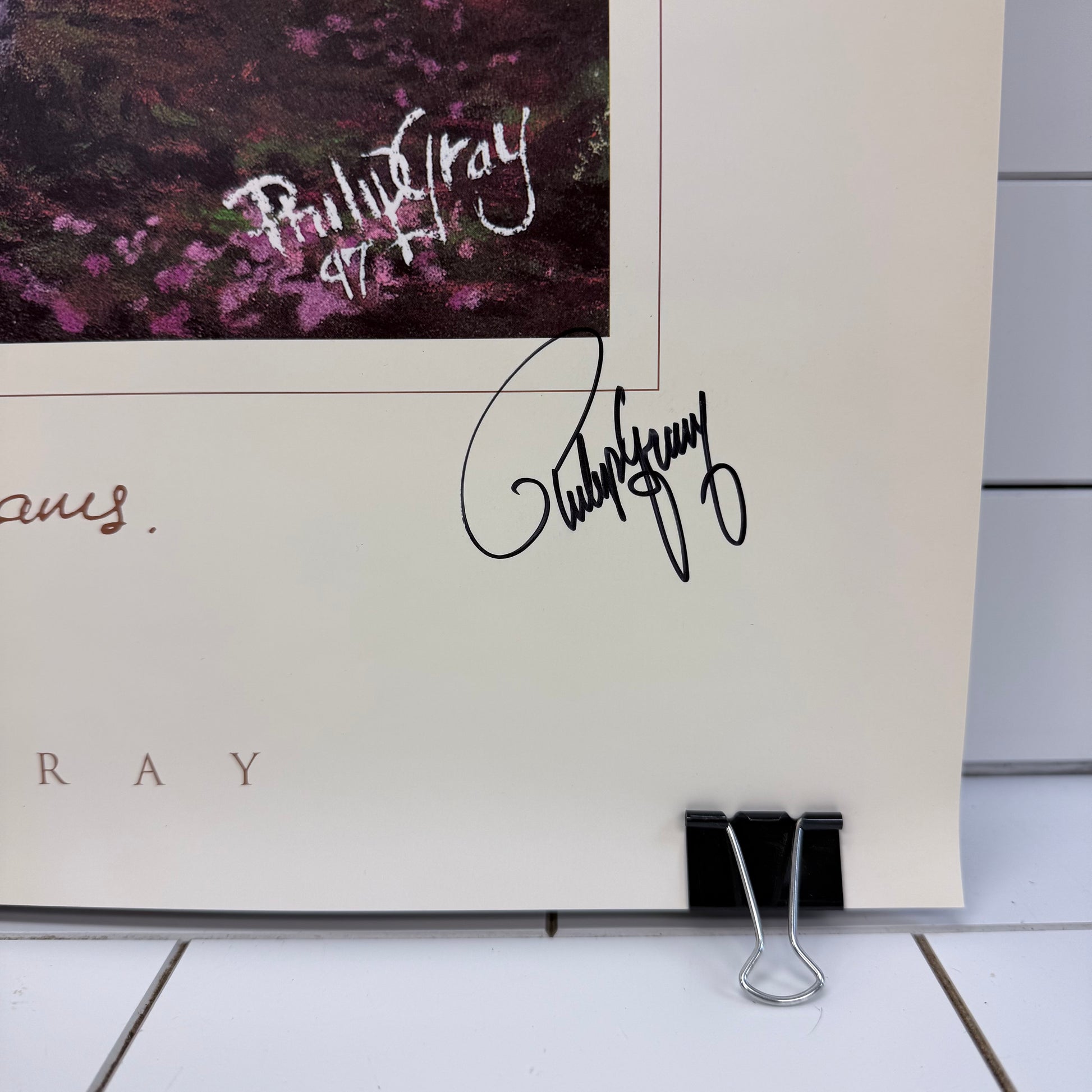 Philip Gray “A Land of Dreams” signed art print showcases the atmospheric, dreamlike coastal style that has made the Irish artist internationally recognized, featuring sweeping landscapes rendered in soft, luminous tones that evoke movement and tranquility. This large-format print includes a live artist signature, adding authenticity and collectible appeal for fans of contemporary maritime and landscape art. Known for his dramatic seascapes and adventurous inspiration, Philip Gray’s work brings a sense of escape and serenity to any space, making this piece ideal for coastal décor, modern interiors, or art collectors seeking signed works. Offered in good vintage condition with minor wear consistent with age and use, and accompanied by its original Philip Gray branded storage tube for protection and display readiness.