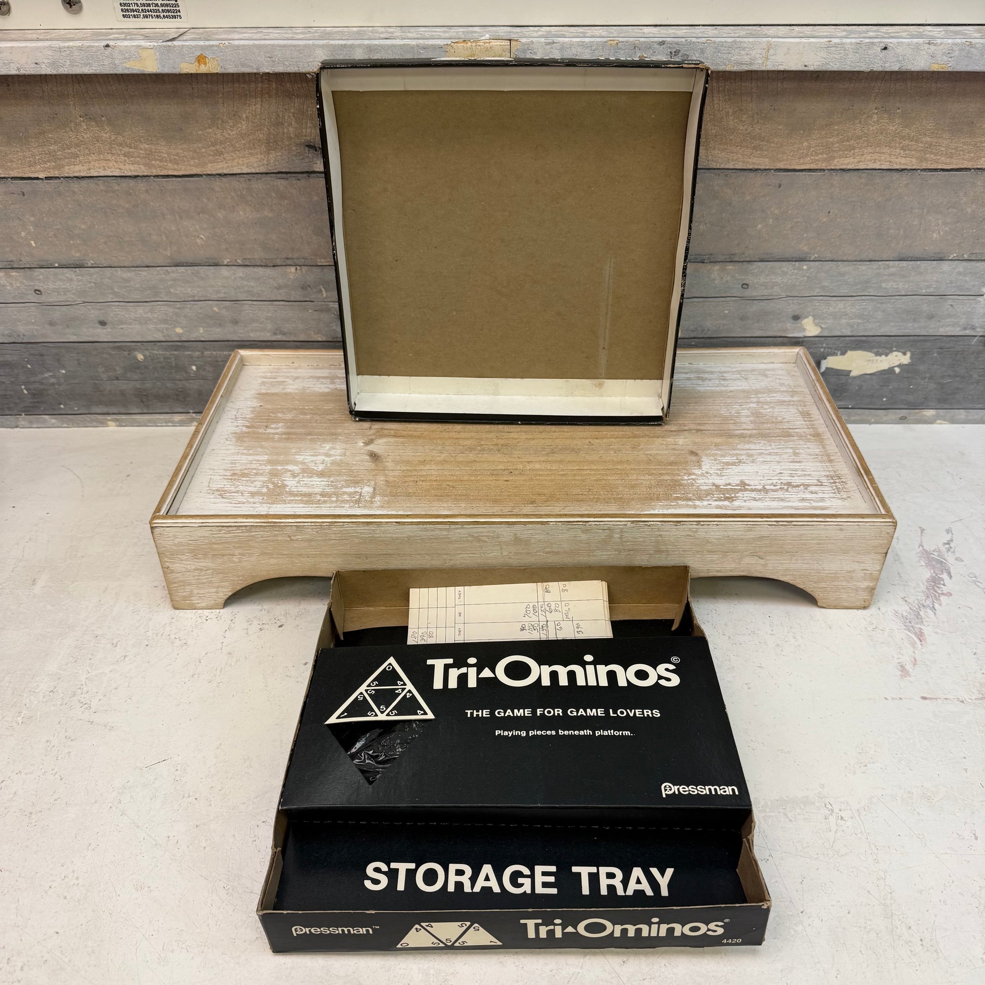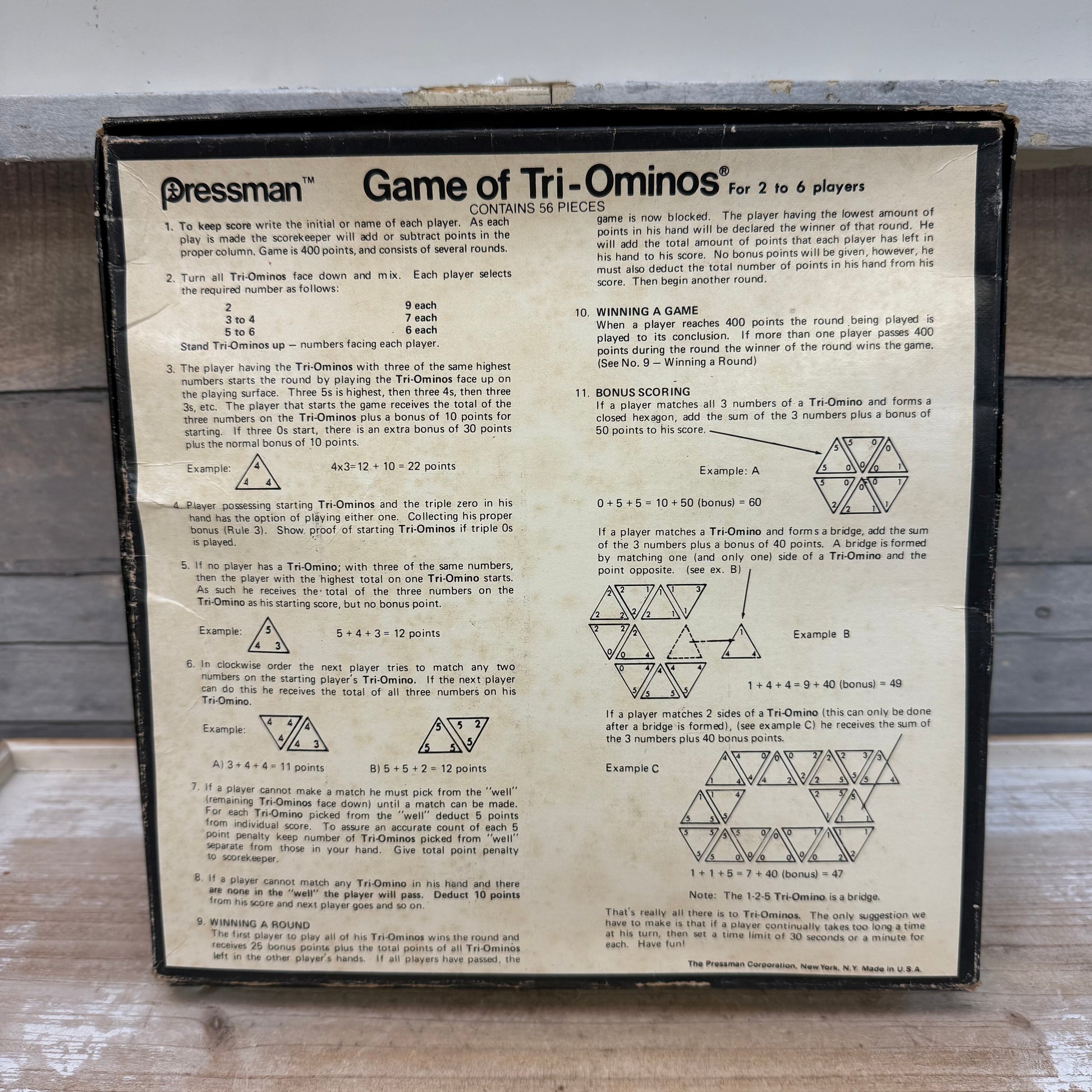 keywords: Pressman Tri-Ominos, 1960s puzzle game, vintage tabletop game, retro family game, collectible board game, Tri-Ominos complete set, numbered 4420, classic strategy game, vintage Pressman game, mid-century game collectible
