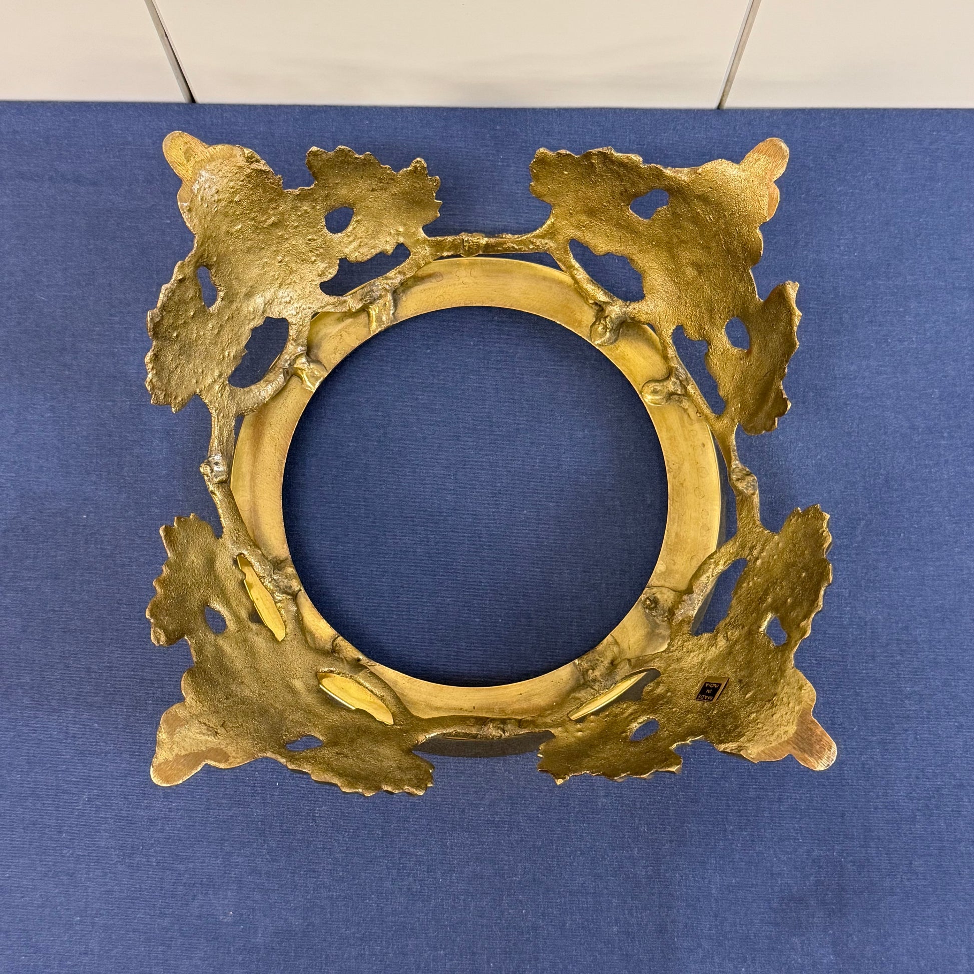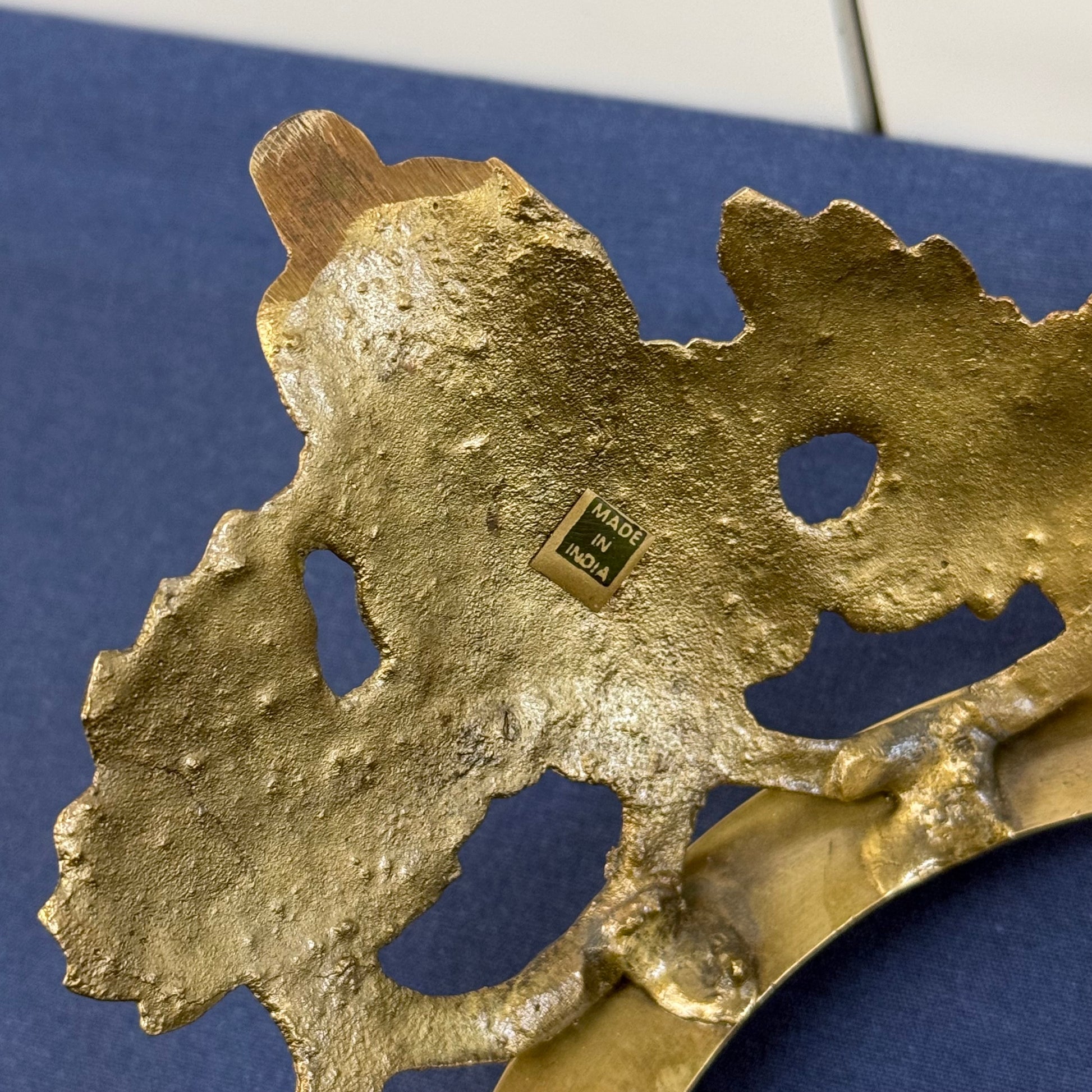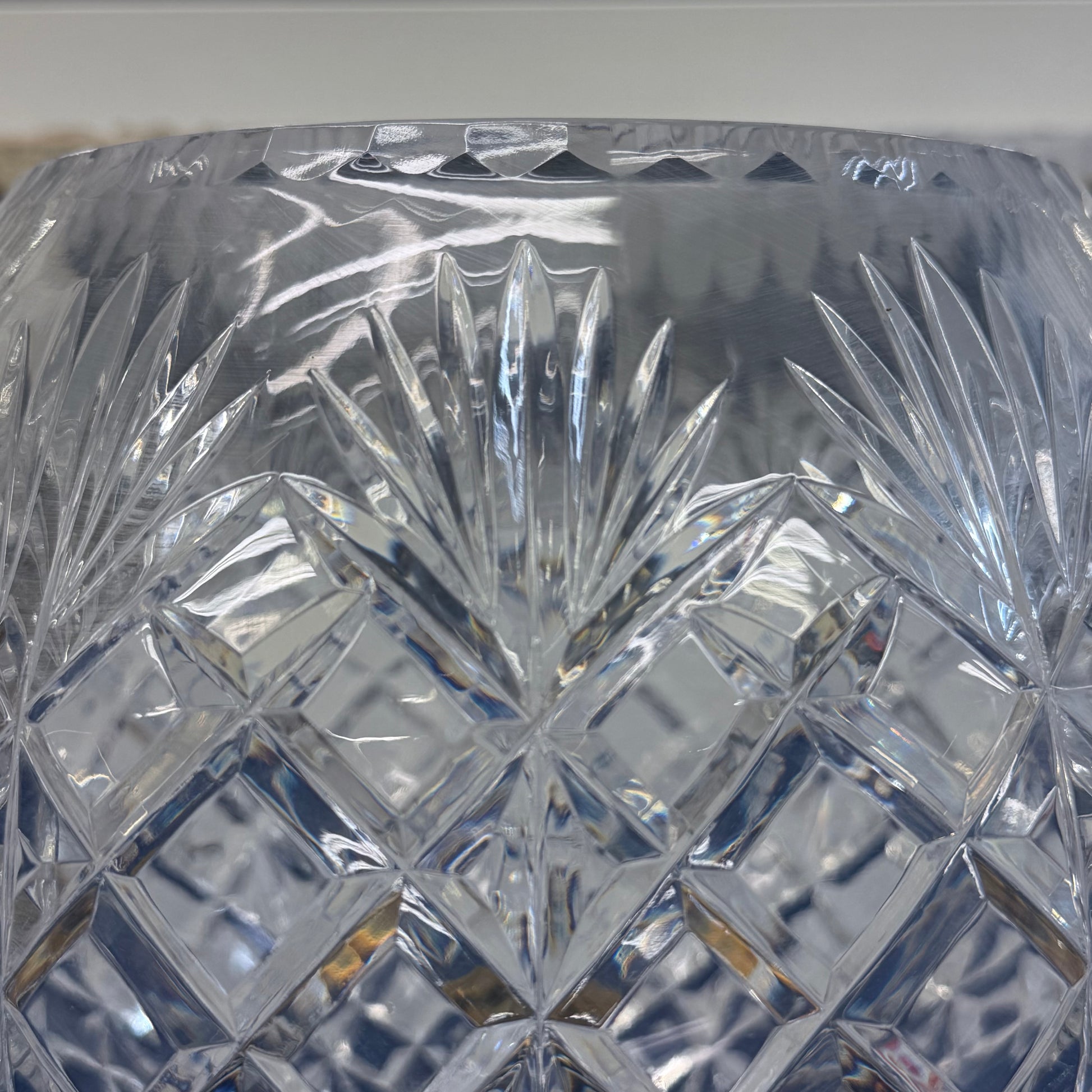 Elevate your table or mantel with this elegant Hollywood Regency cut crystal rose bowl set on an ornate brass grapevine stand, a timeless decorative accent blending classic luxury with mid-20th century glamour. The finely cut crystal bowl features intricate diamond and fan patterns that catch and refract light beautifully, while the detailed brass base showcases sculpted grape clusters and vine motifs, a hallmark of Hollywood Regency and traditional European-inspired design. Perfect as a centerpiece, floral display, or standalone statement piece, this combination of brilliant crystal and warm gilt-tone metal adds sophistication to both formal and eclectic interiors. Good vintage condition, minor wear consistent with age and use