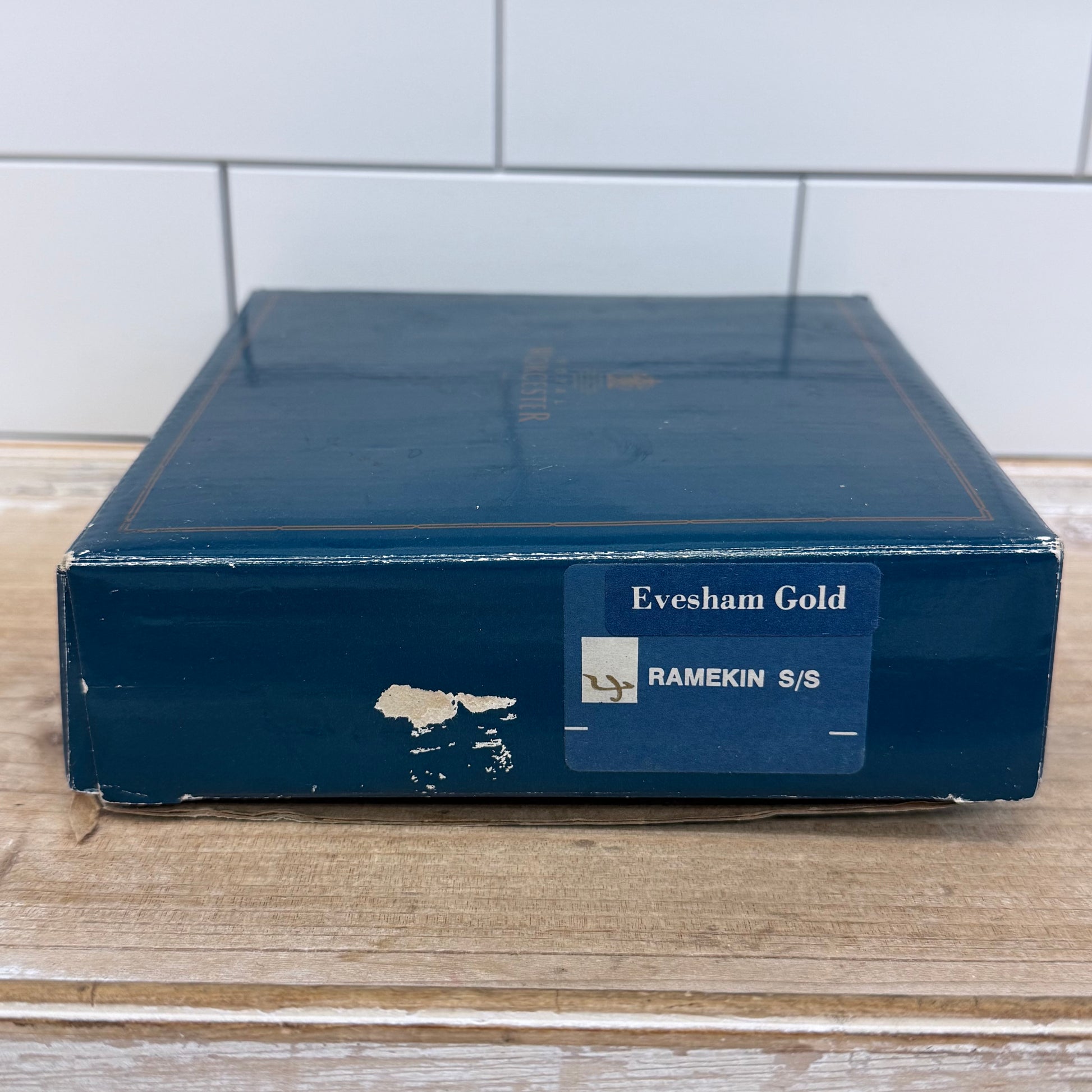 A classic example of English tableware design, this set of four Royal Worcester Evesham Gold ramekins showcases the beloved fruit-and-foliage motif that has made the pattern a staple of fine kitchens since its introduction in 1961. Produced in England, these porcelain ramekins feature delicately ribbed sides, a warm ivory ground, and richly detailed autumnal fruits with elegant gold trim, blending traditional craftsmanship with everyday functionality. Ideal for soufflés, custards, dips, or individual servings, they offer both durability and timeless style. Presented in the original Royal Worcester box, this set is perfect for collectors of British ceramics or those seeking refined vintage kitchenware. Offered in good vintage condition with minor wear consistent with age and use.