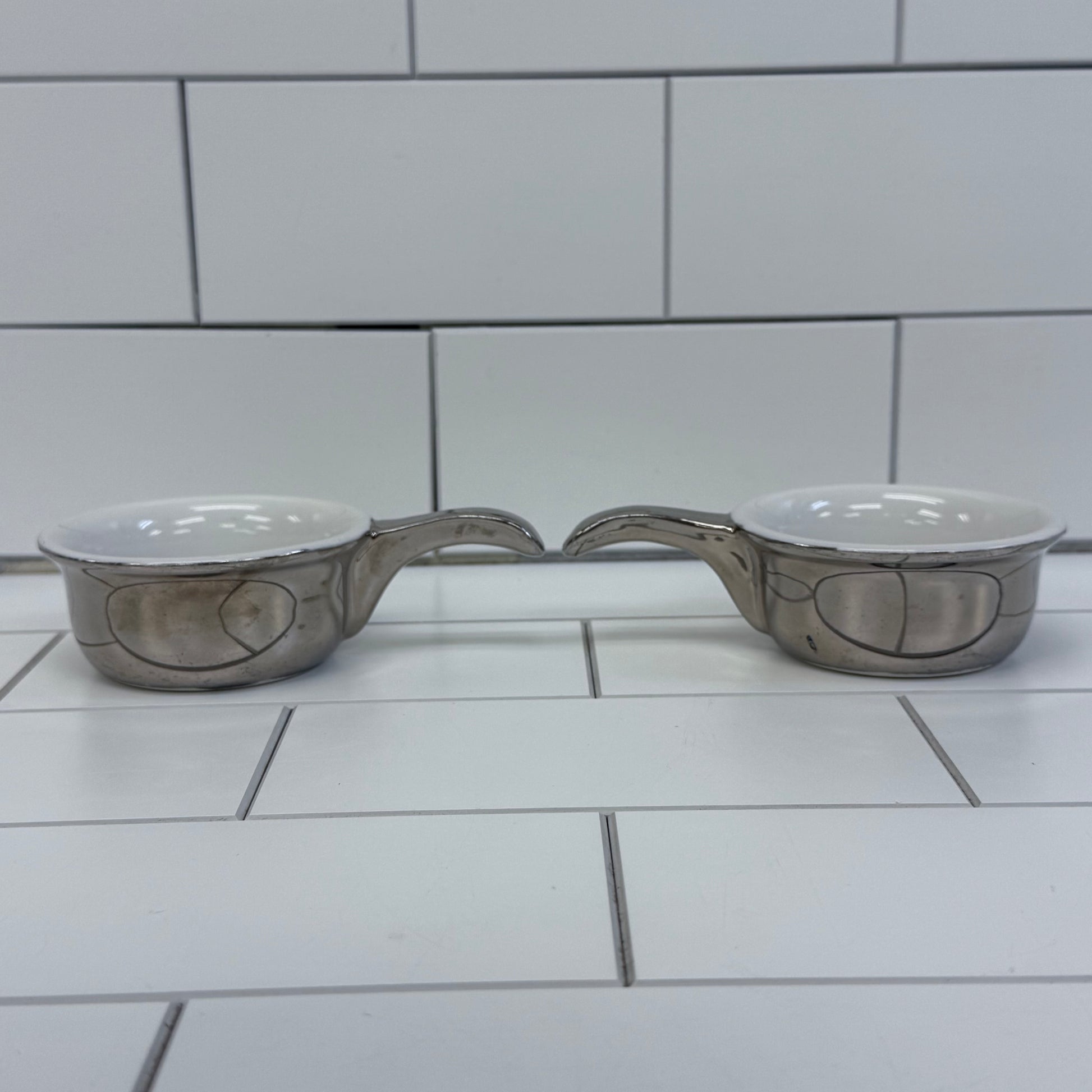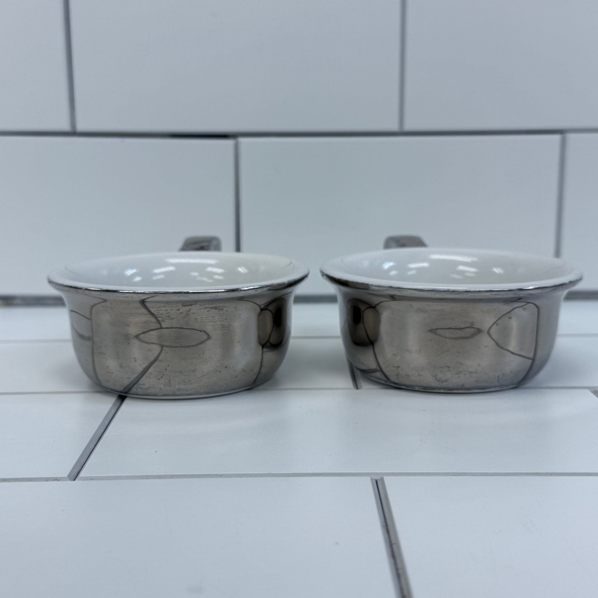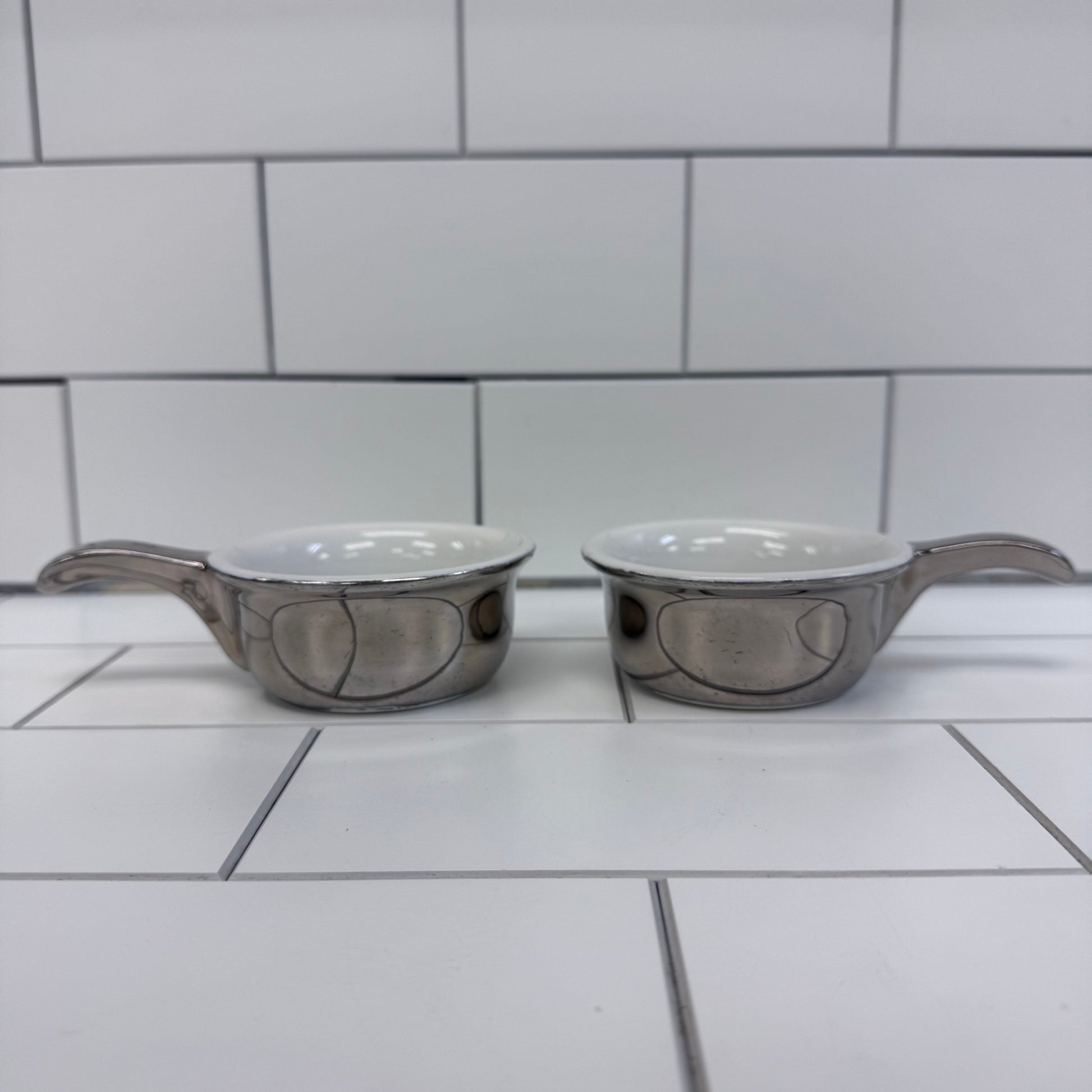 Royal Worcester Cocottes True Silver Lustre, Porcelain Set of 2