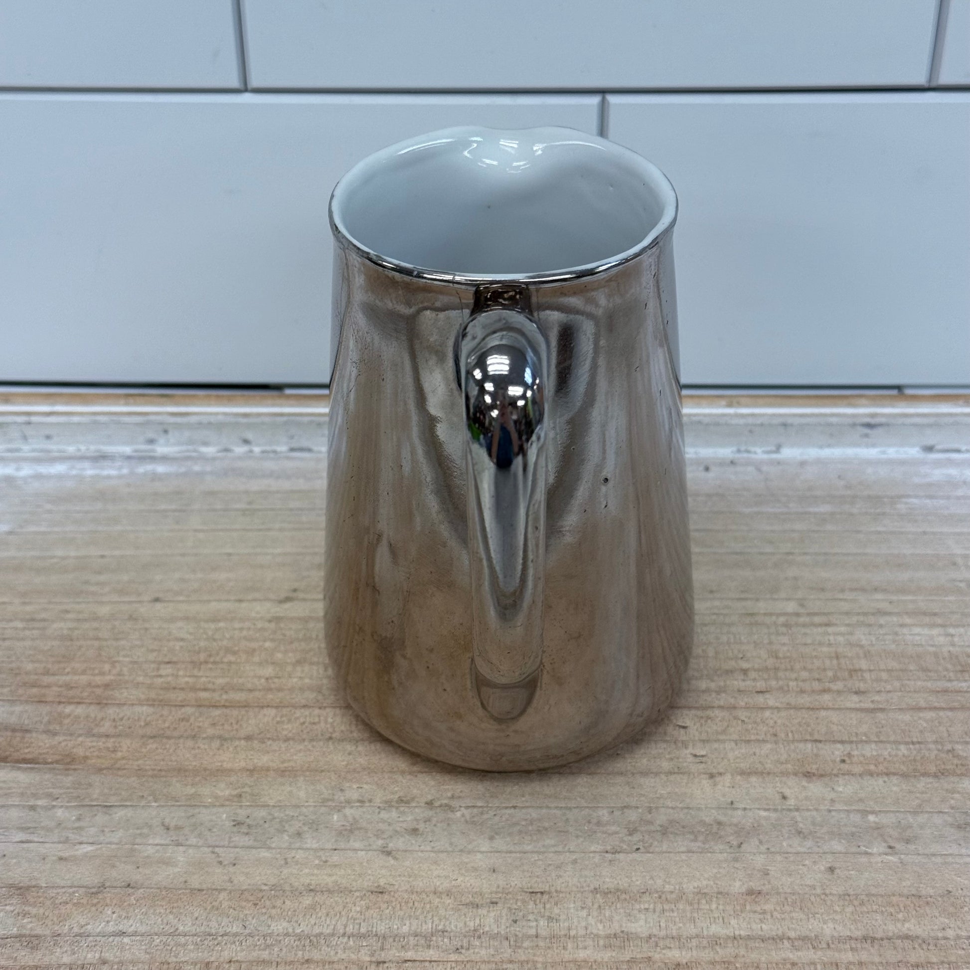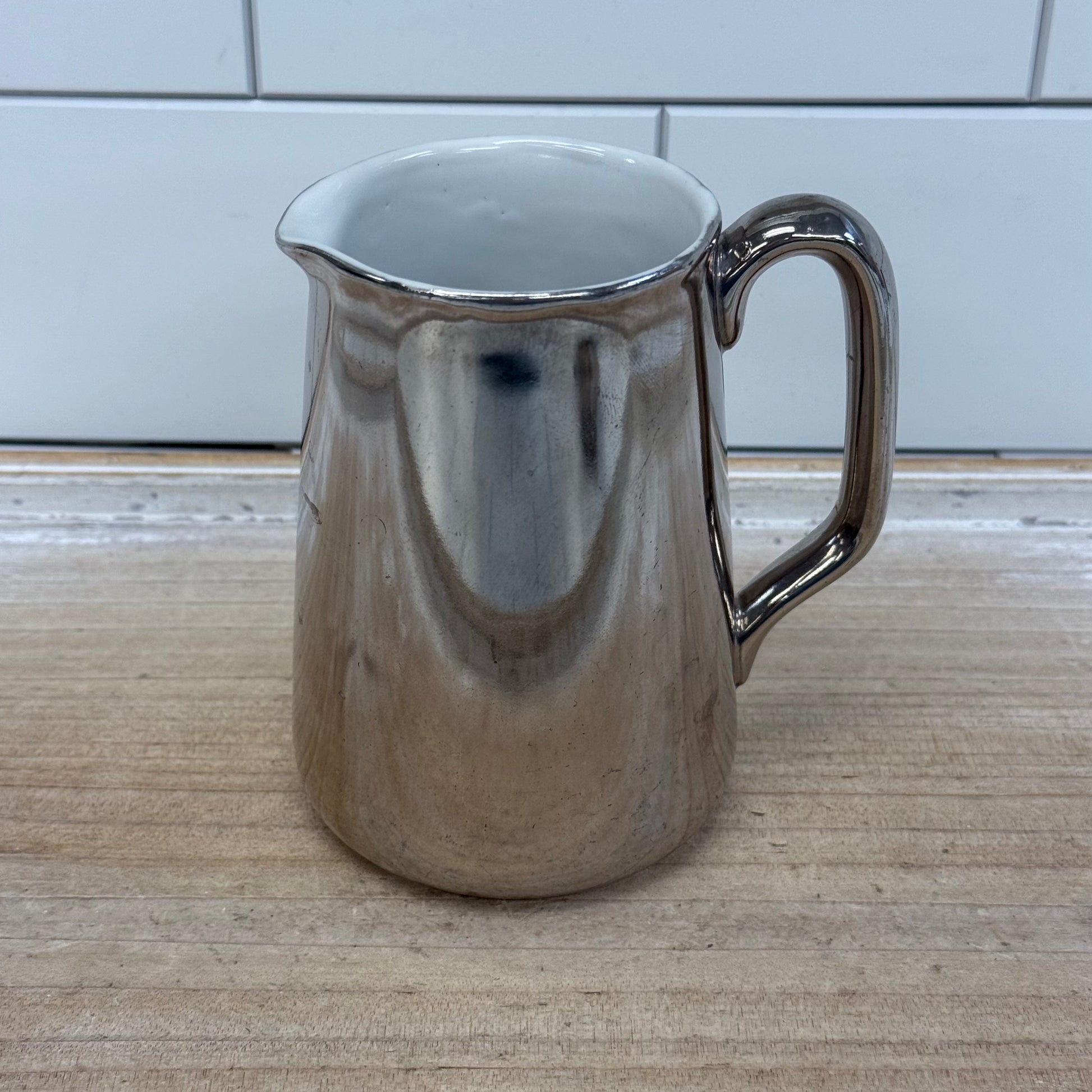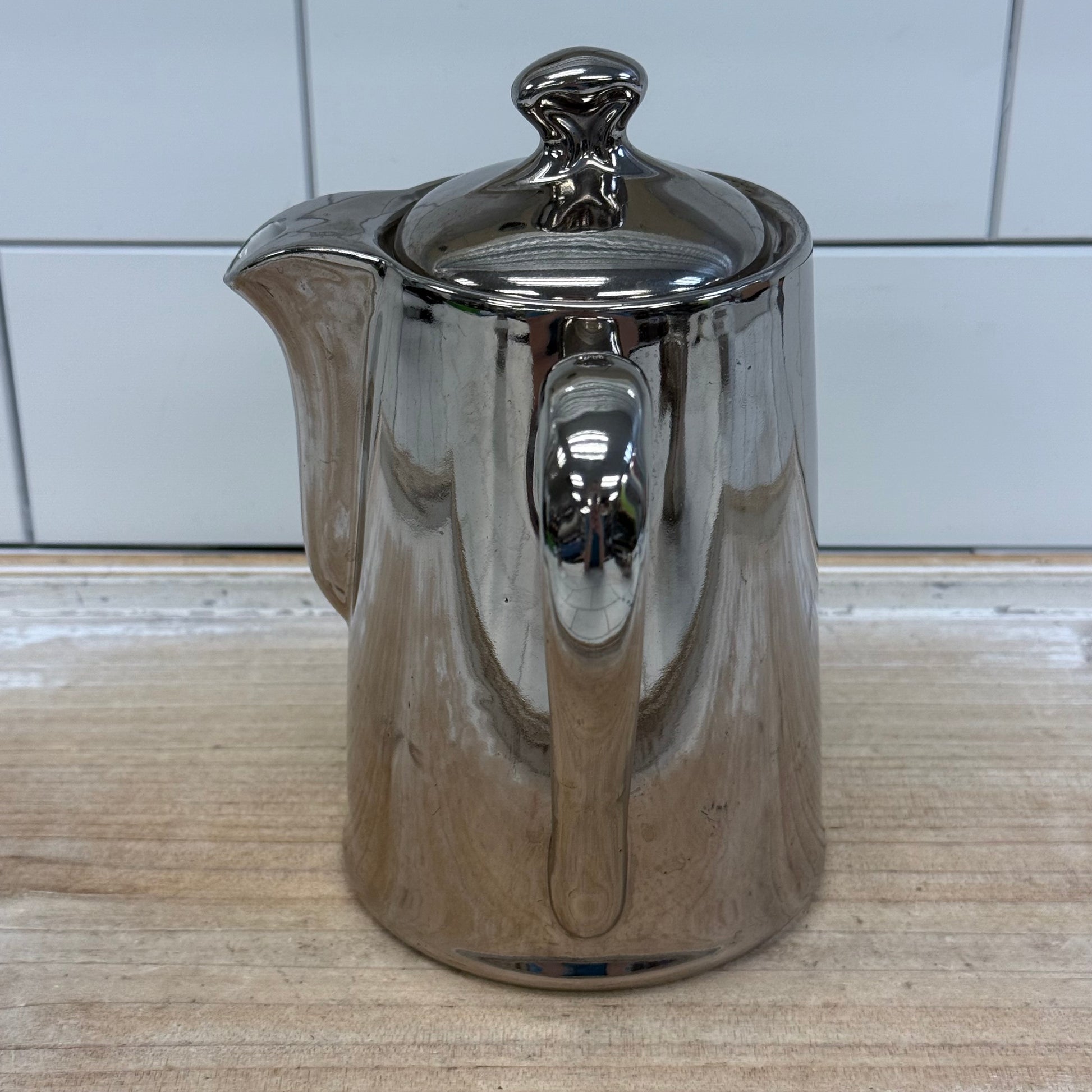 Serve in timeless elegance with this Royal Worcester True Porcelain Silver Lustre Tea Service, Set of 3. The set includes a coffee pot (6”x4”x7”), a teapot (8”x5”x4”), and a pitcher (4”x3”x5”), each adorned with a refined silver-lustre finish that highlights the exquisite craftsmanship of Royal Worcester. In good vintage condition with only minor wear consistent with age, every piece bears the authentic maker’s mark on the underside, making this set both a functional tea service and a beautiful collectible for lovers of fine porcelain.
