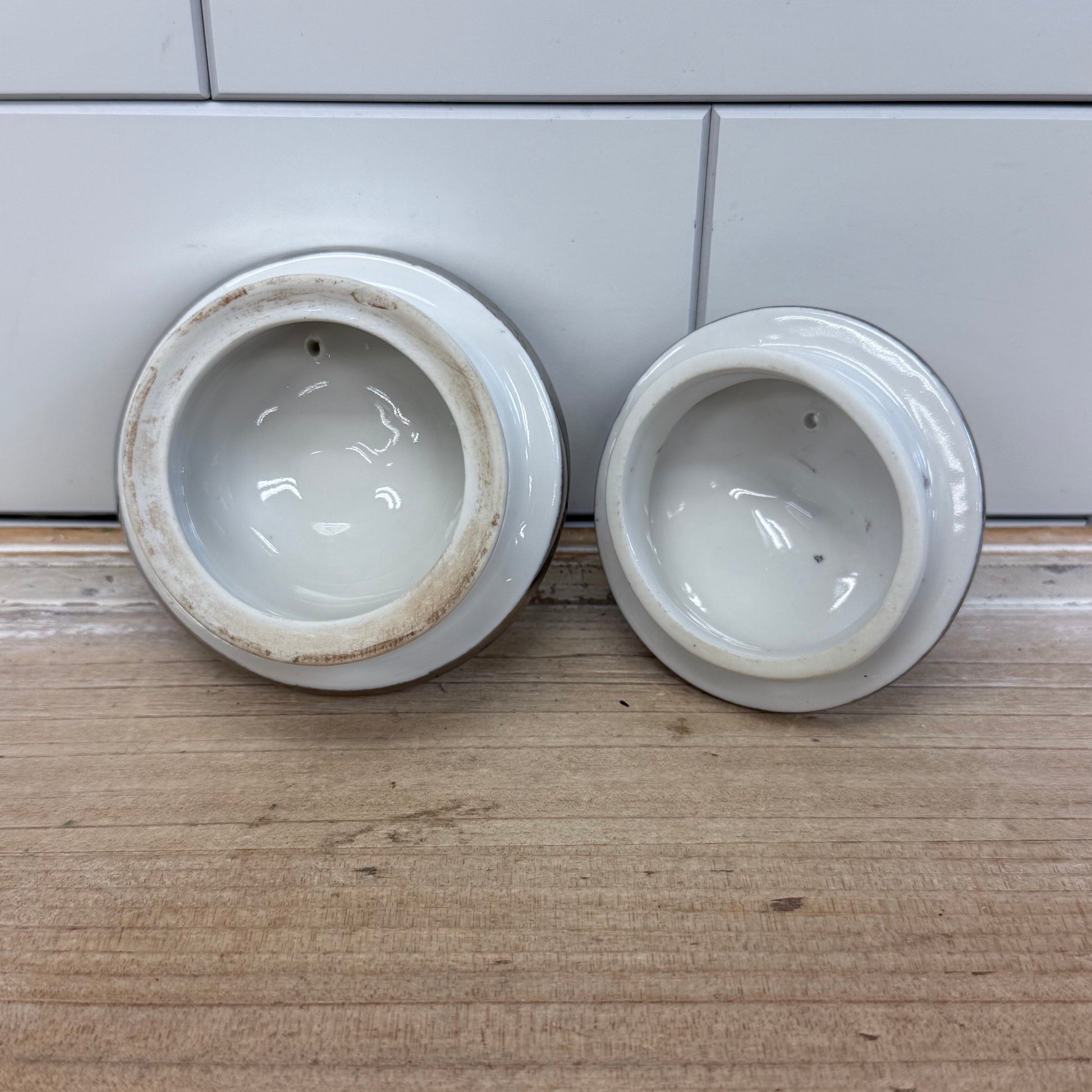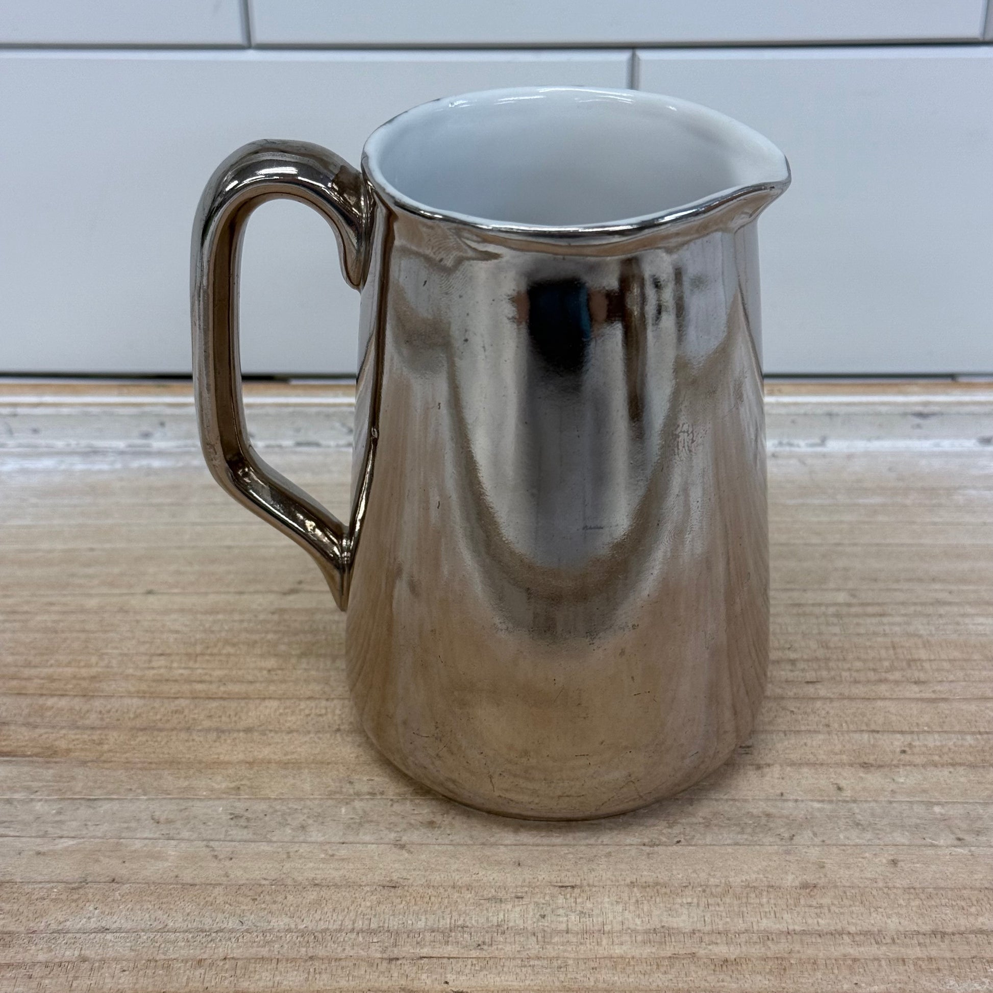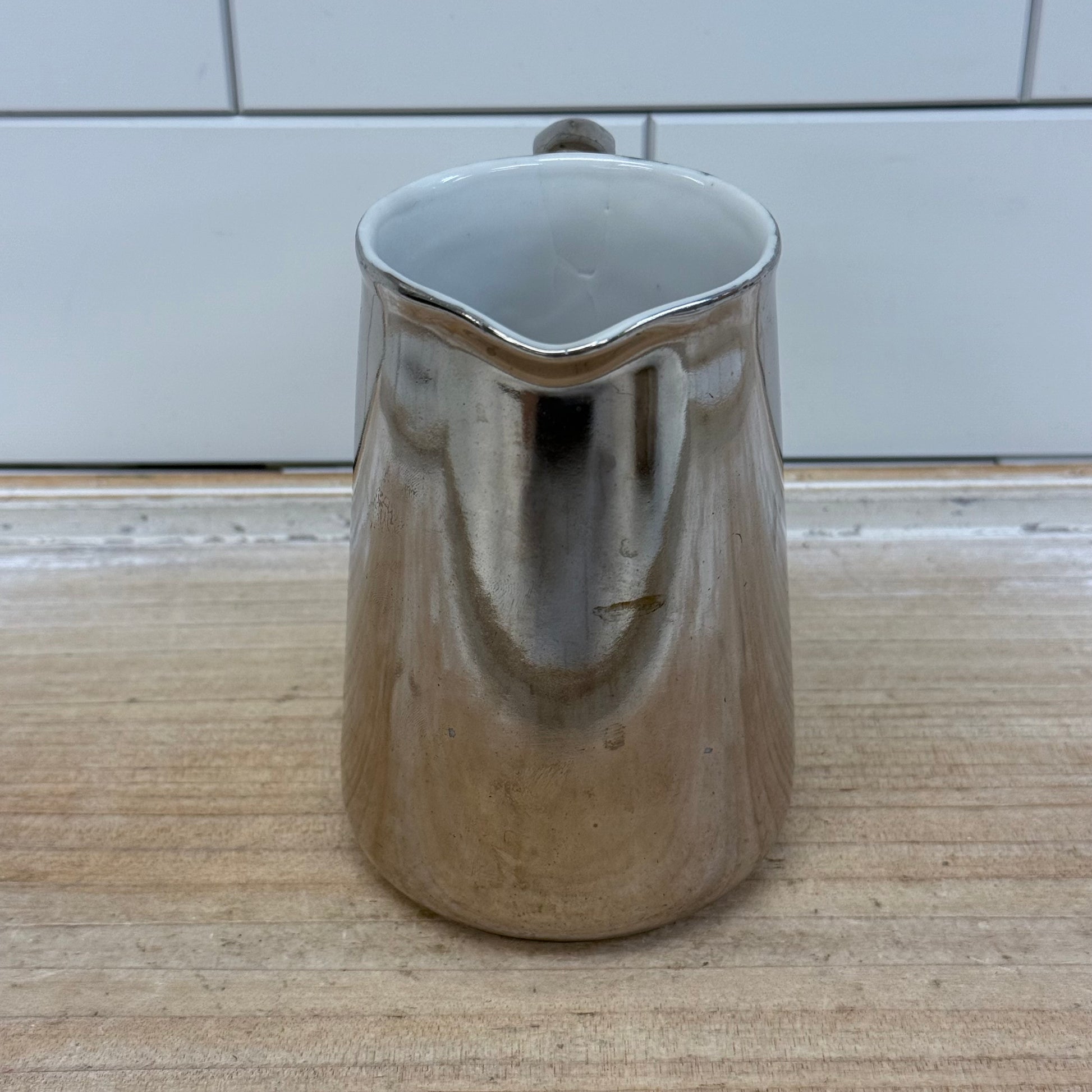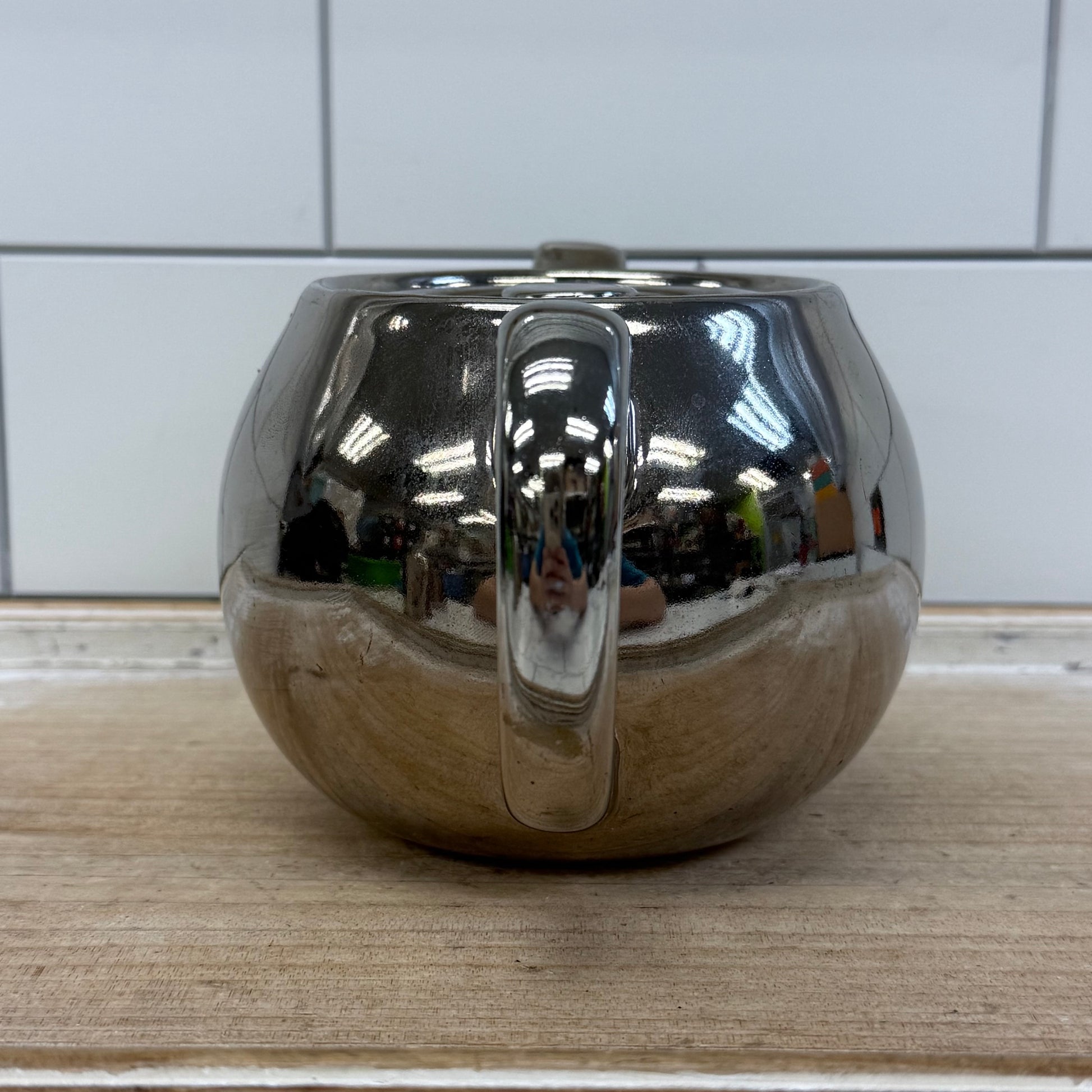 Serve in timeless elegance with this Royal Worcester True Porcelain Silver Lustre Tea Service, Set of 3. The set includes a coffee pot (6”x4”x7”), a teapot (8”x5”x4”), and a pitcher (4”x3”x5”), each adorned with a refined silver-lustre finish that highlights the exquisite craftsmanship of Royal Worcester. In good vintage condition with only minor wear consistent with age, every piece bears the authentic maker’s mark on the underside, making this set both a functional tea service and a beautiful collectible for lovers of fine porcelain.