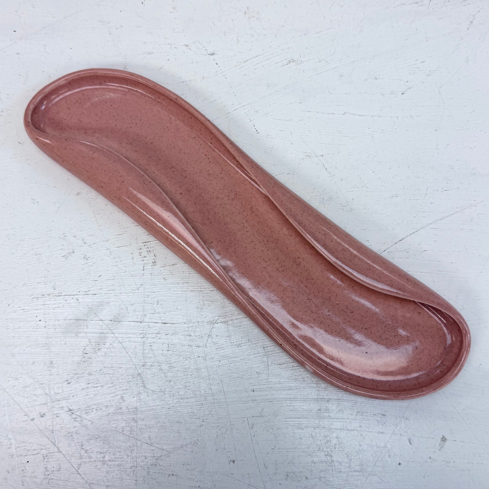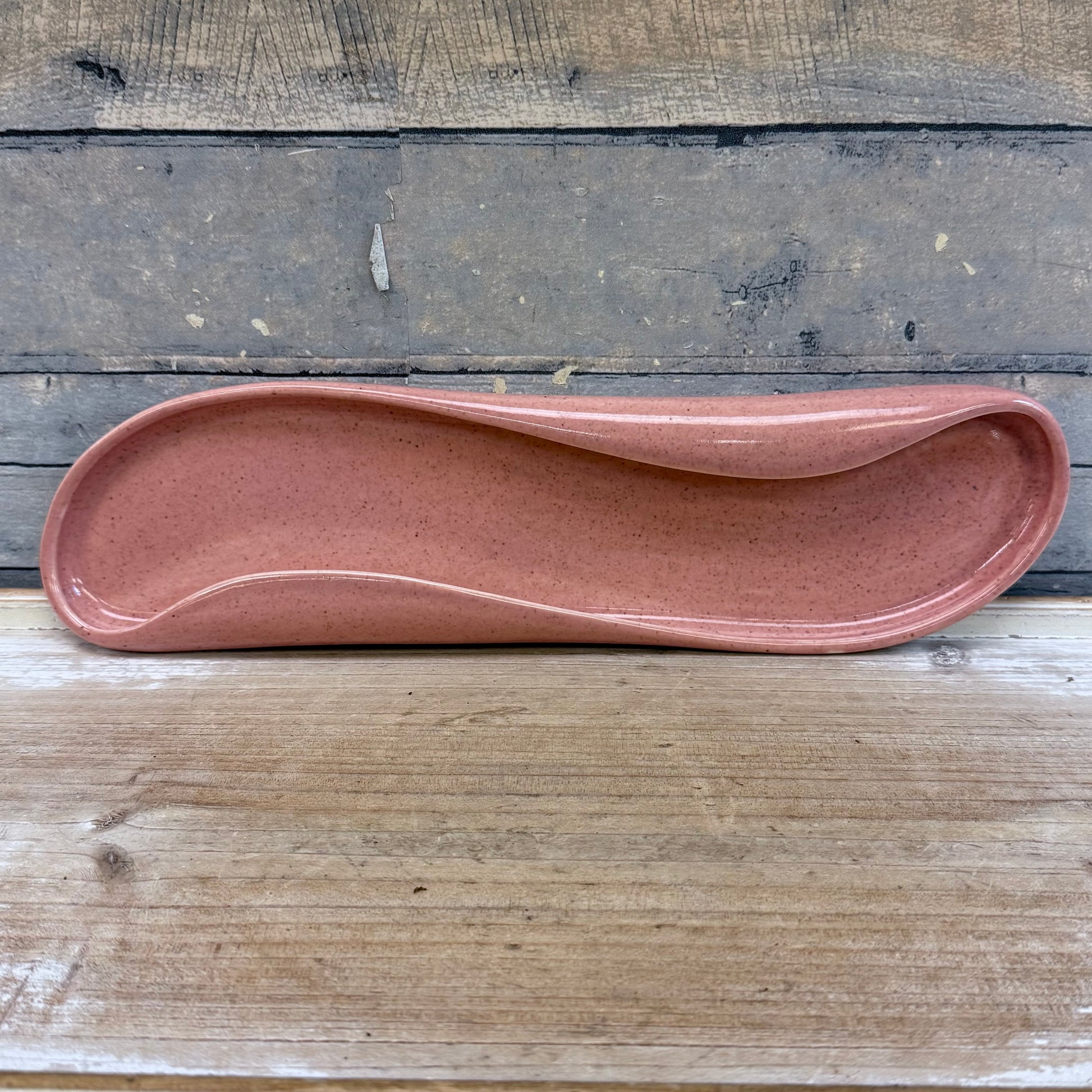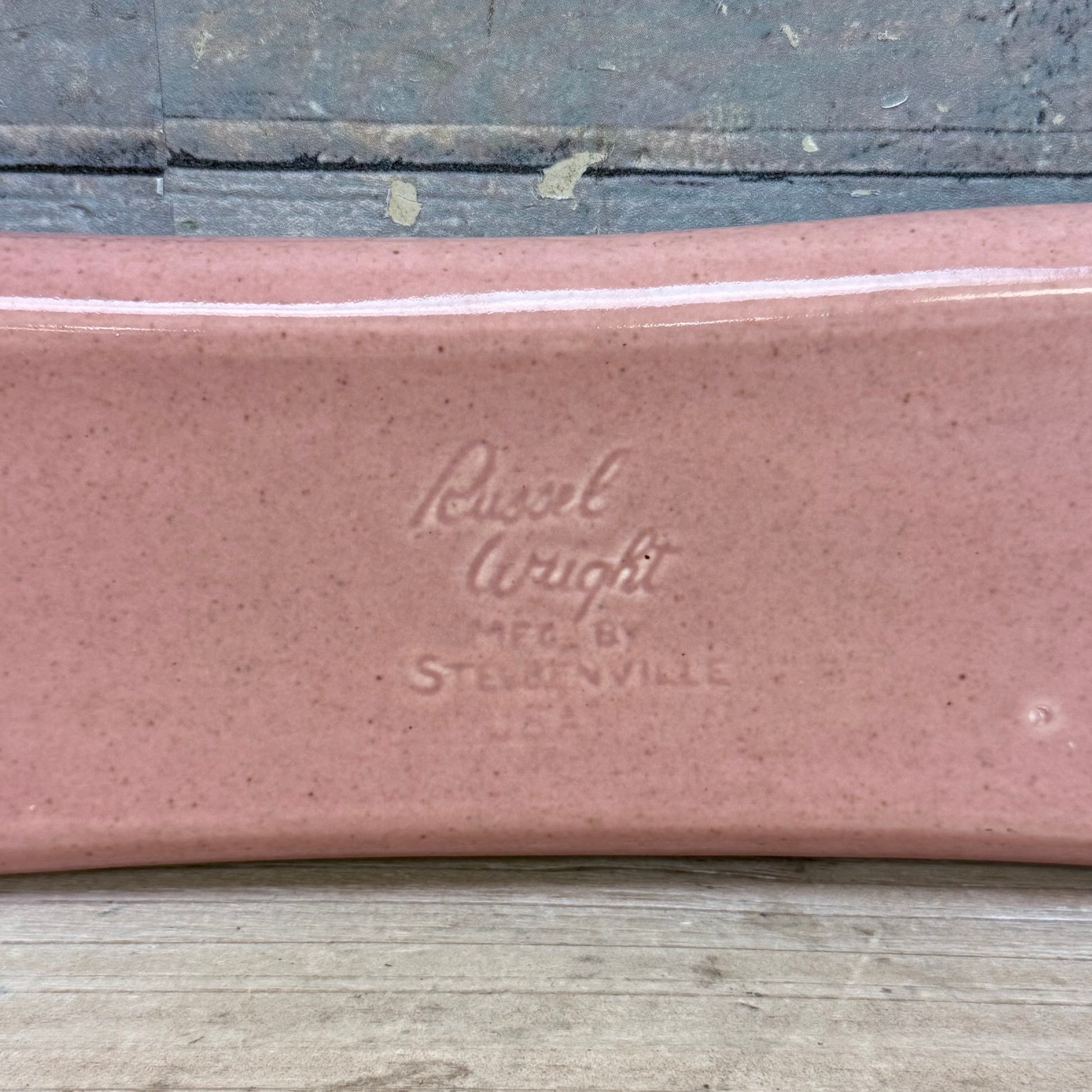keywords: Russel Wright, Steubenville ceramics, coral celery dish, mid-century modern, vintage ceramic dish, collectible kitchenware, American pottery, retro serving dish, Russel Wright collectible, coral ceramic plate